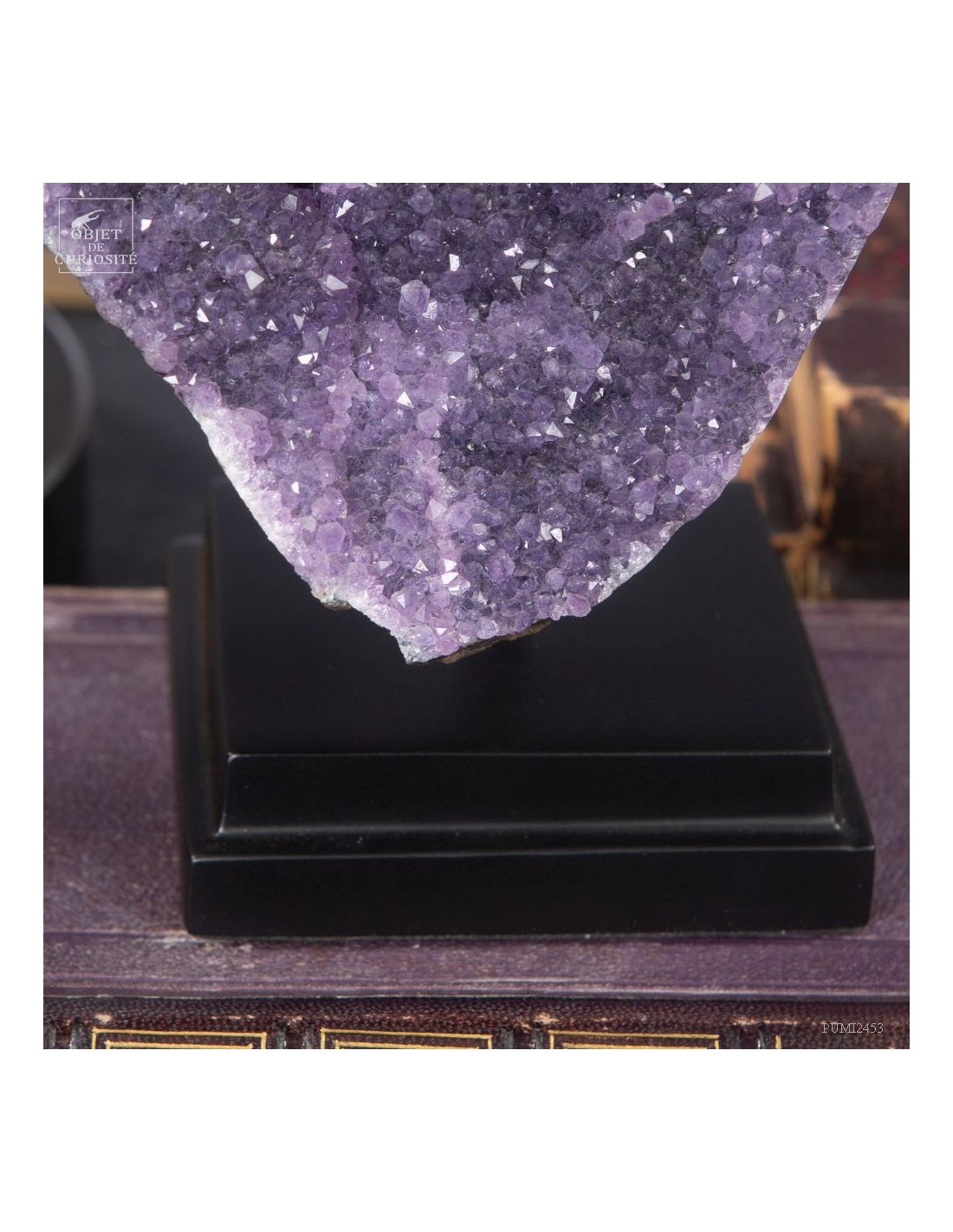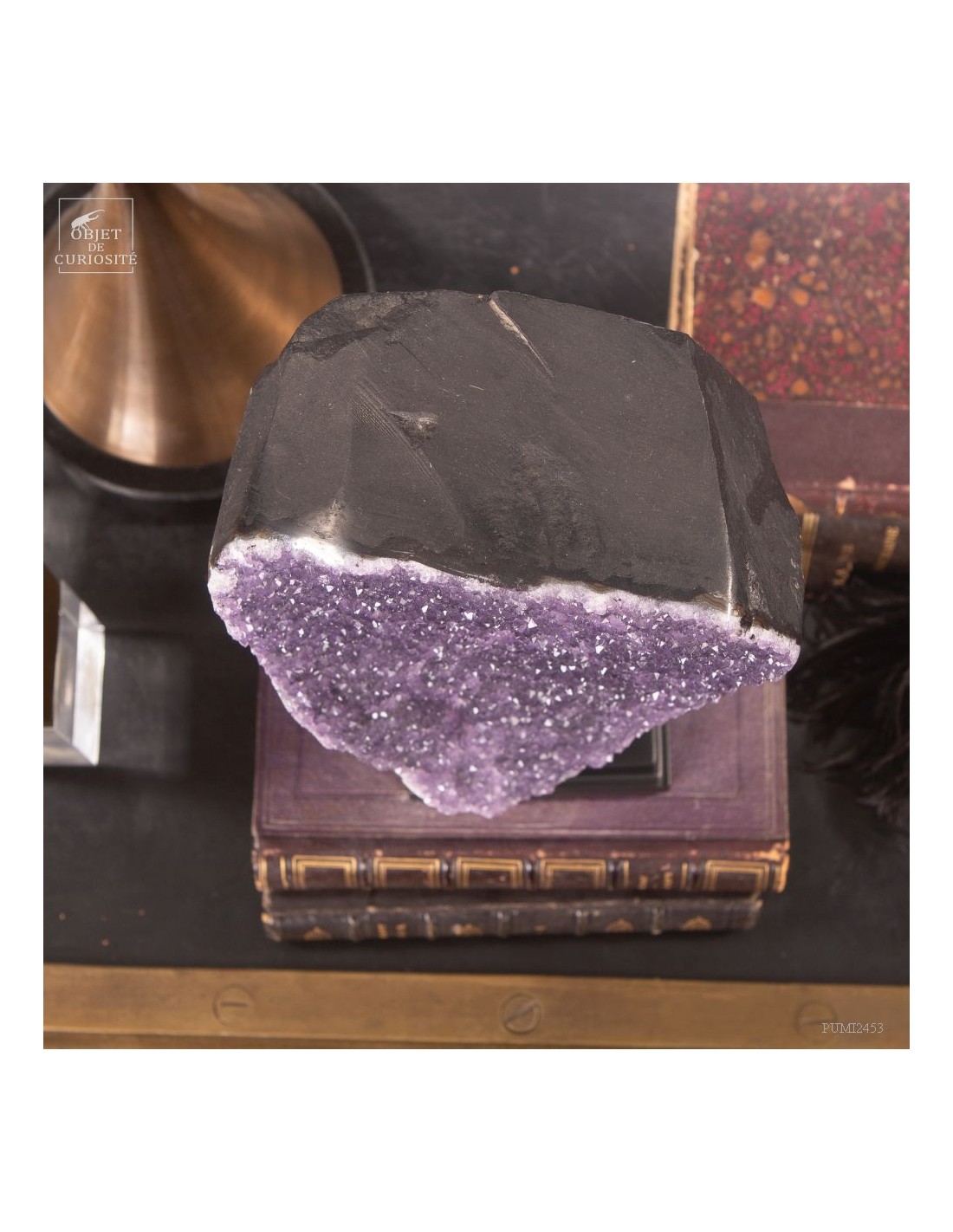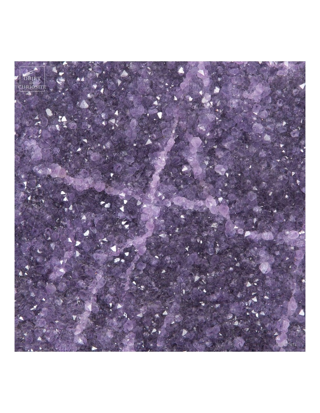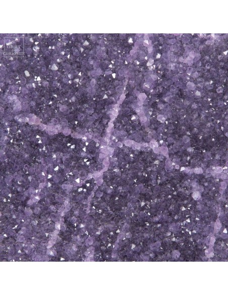 As it cooled, this water began to leave deposits on the cavity walls, turning them into beautiful purple crystal geodes in a few million years. In this case the crystals are small, but incredibly numerous. This lthick 3.5Kg piece comes from the area of Minas Gerais in Brazil, where it is a rare form (these small crystals looks like the amethysts of Uruguay).