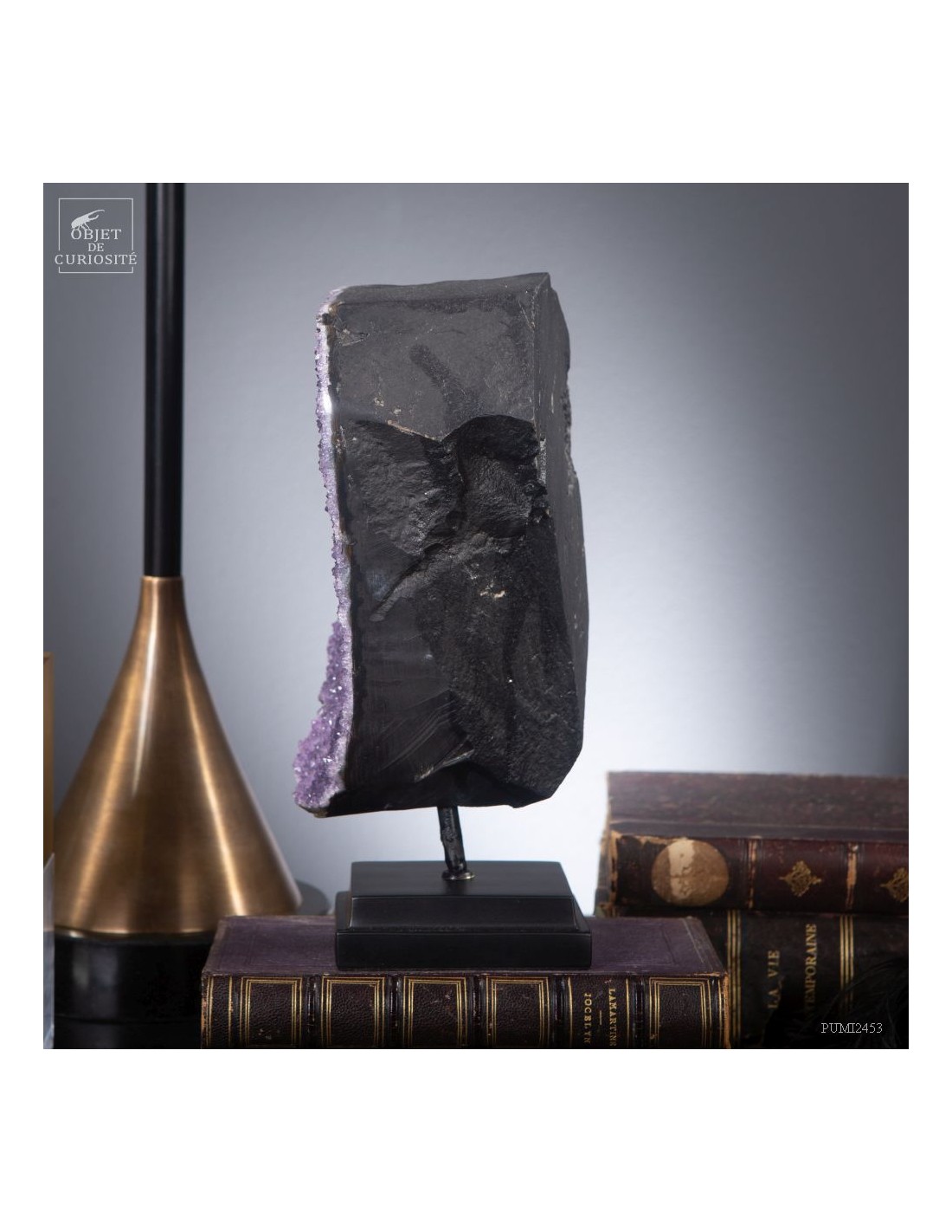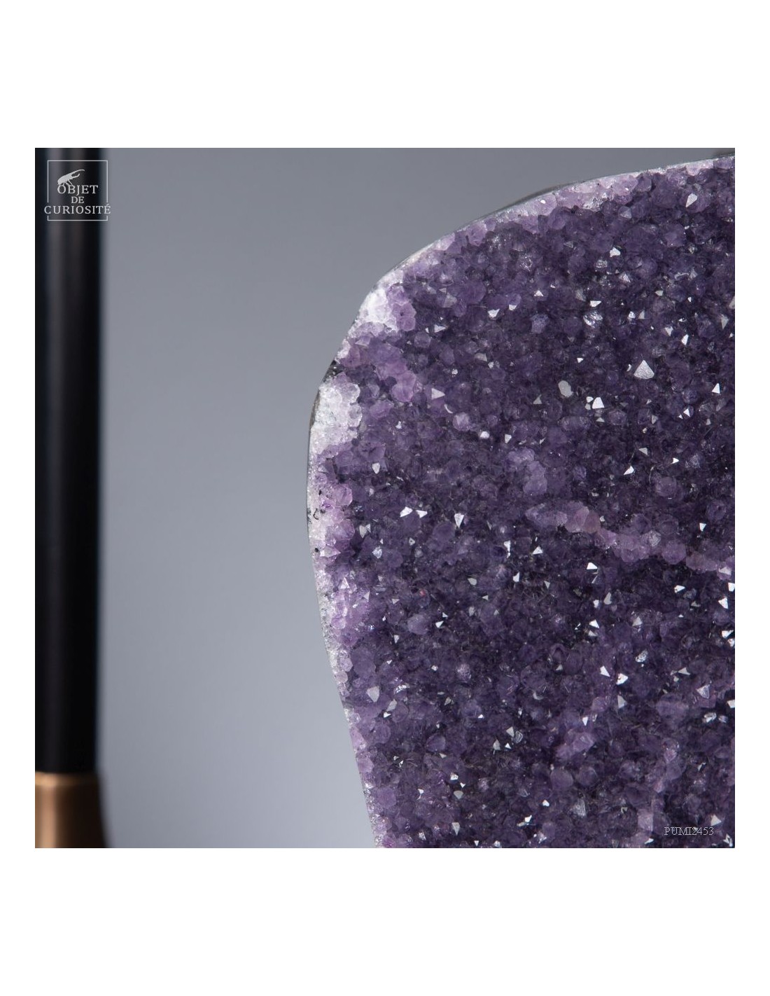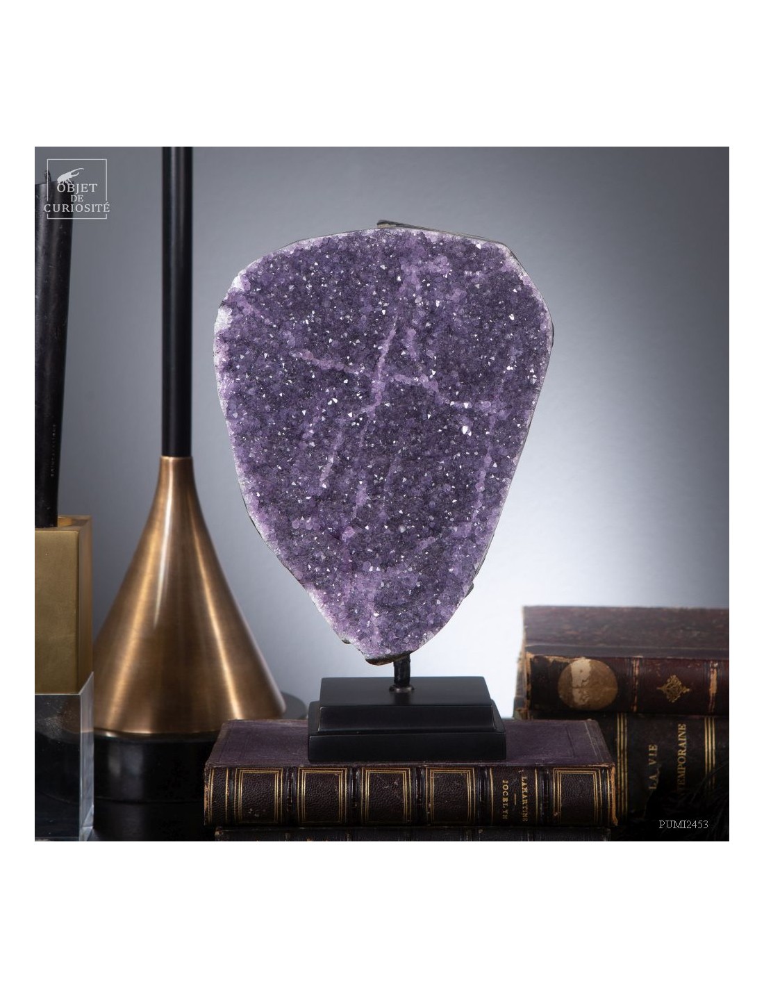 As it cooled, this water began to leave deposits on the cavity walls, turning them into beautiful purple crystal geodes in a few million years. In this case the crystals are small, but incredibly numerous. This lthick 3.5Kg piece comes from the area of Minas Gerais in Brazil, where it is a rare form (these small crystals looks like the amethysts of Uruguay).