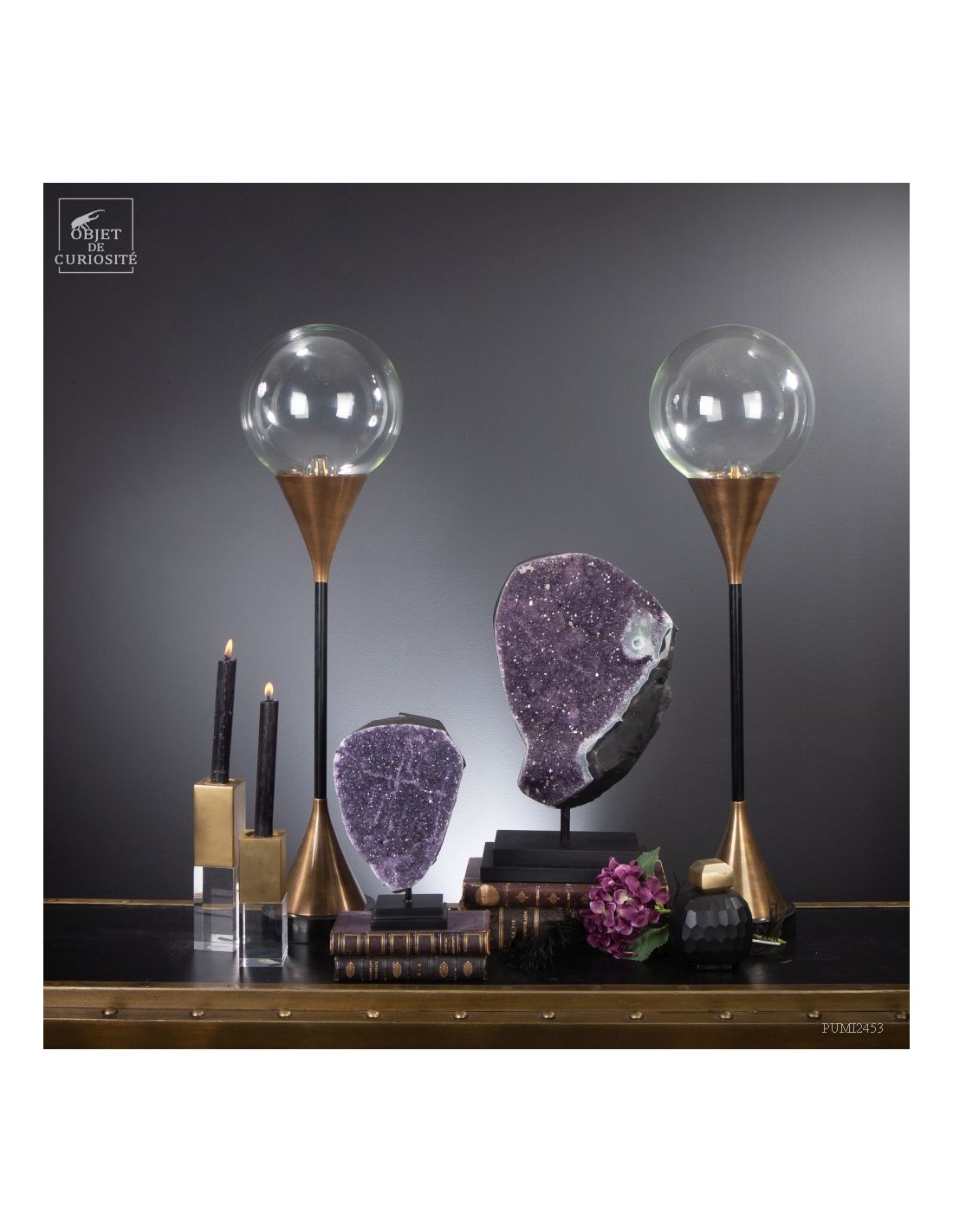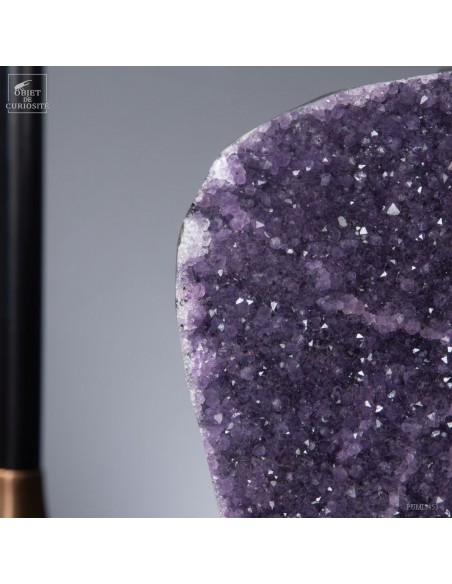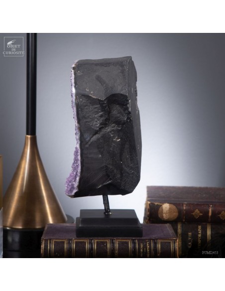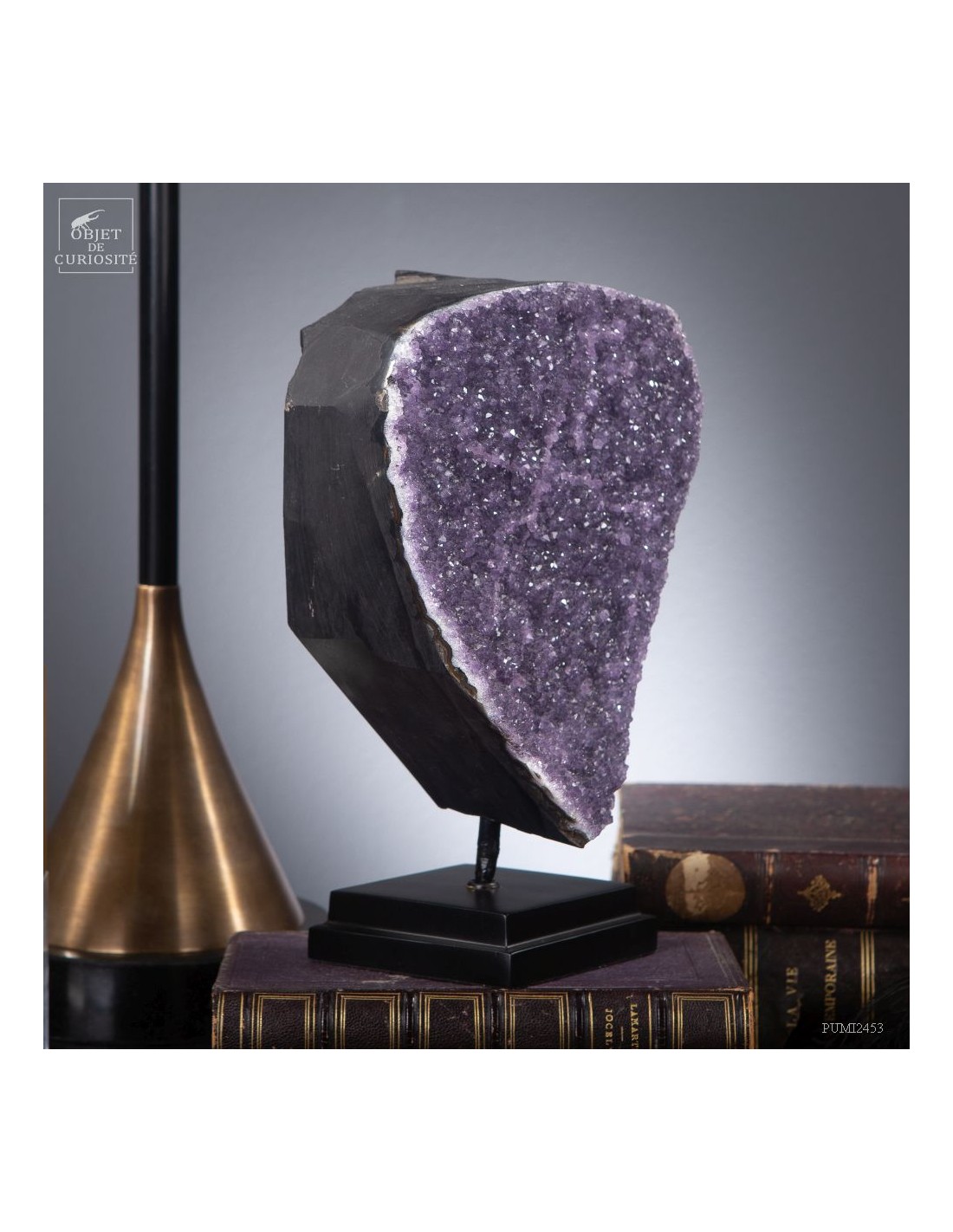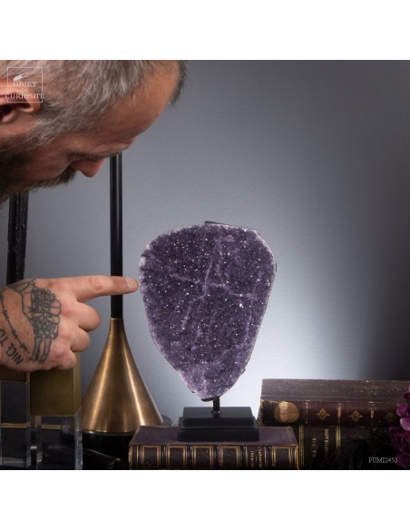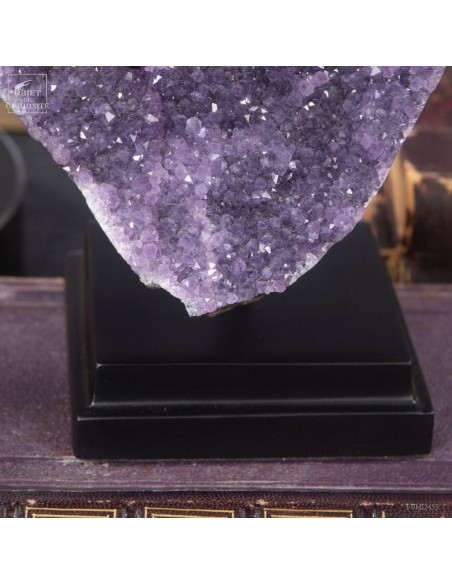 It is found in cavities formed millions of years ago by old gas bubbles frozen in lava, in which very hot water concentrated in silica and iron minerals circulated. It is the more or less important amount of iron minerals and their type, which will determine the coloring of these sublime crystals.