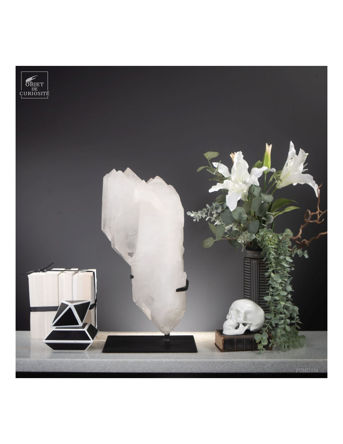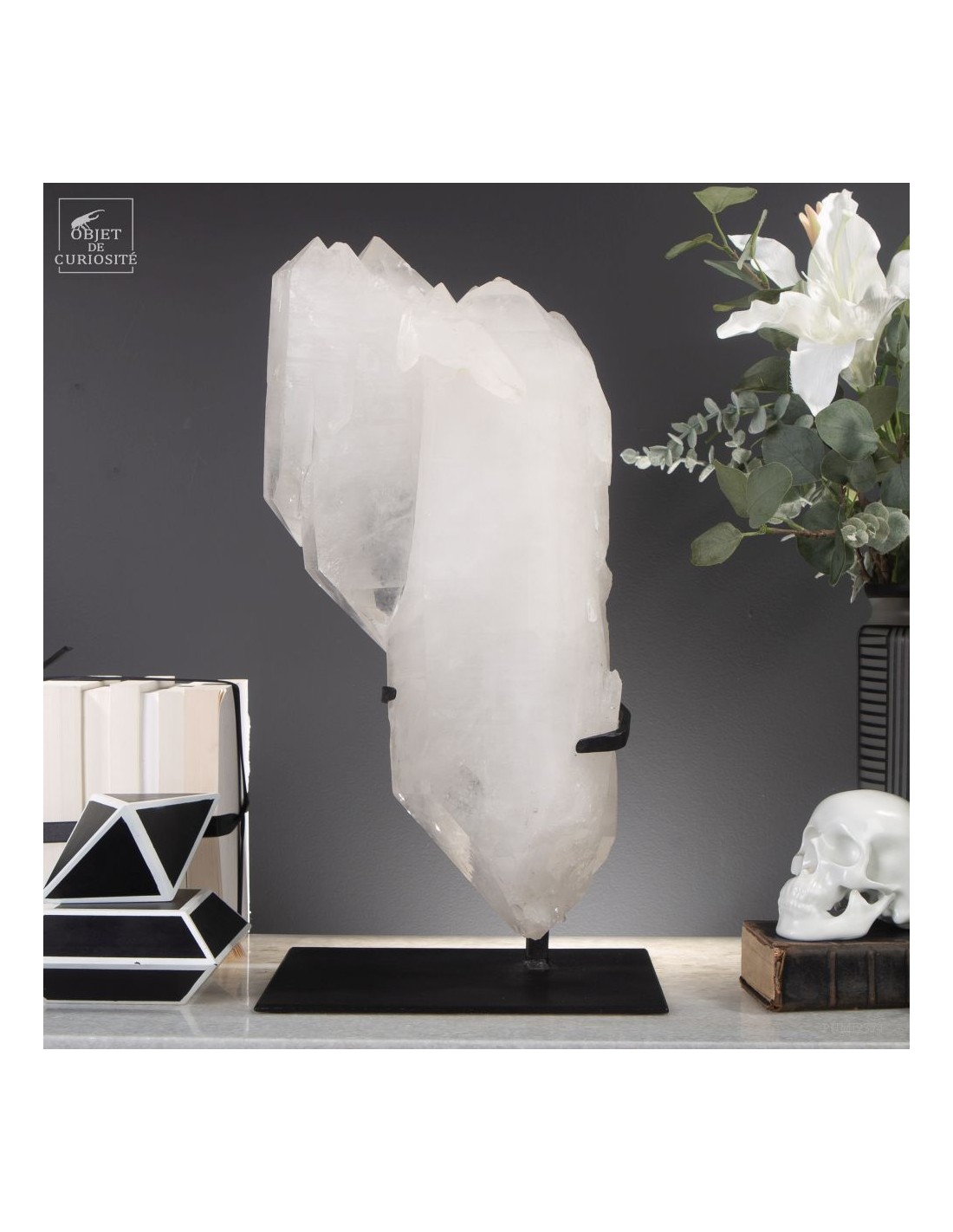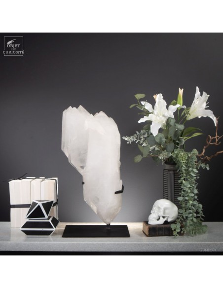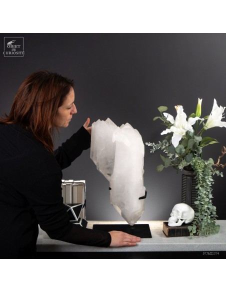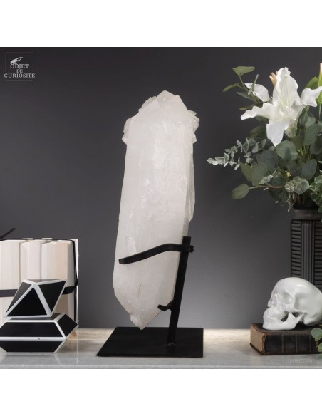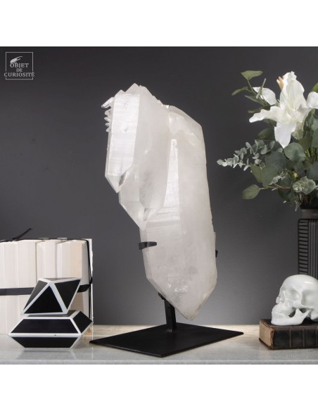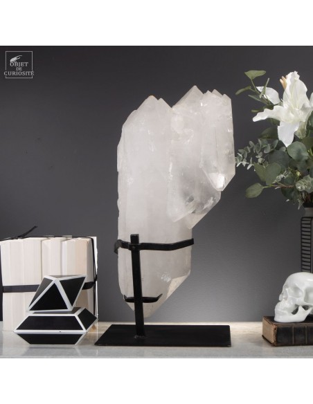 This imposing Brazilian mineral is remarkable in more ways than one: It is completely natural, but also made of twin crystals that are also all bi-terminated (with a perfect tip at each end). The 3 large twin crystals that grew hooked together, gave rise to many more spikes on one end. A rare form that gives a feeling of the power of nature. Brazilian nature in this case.