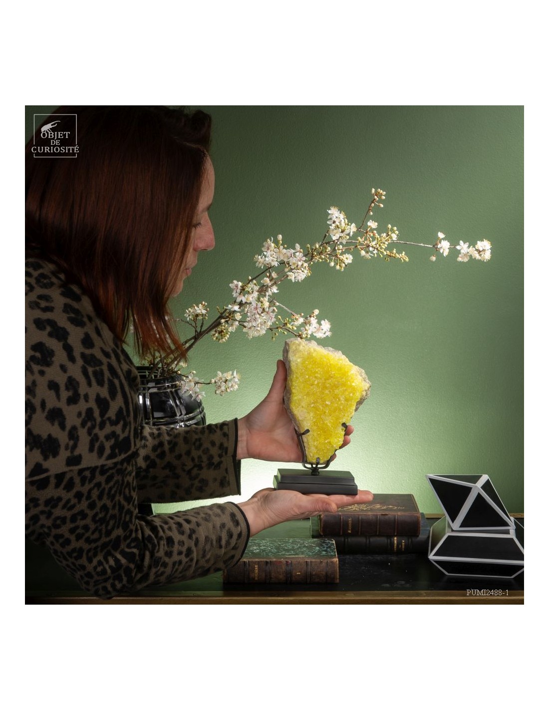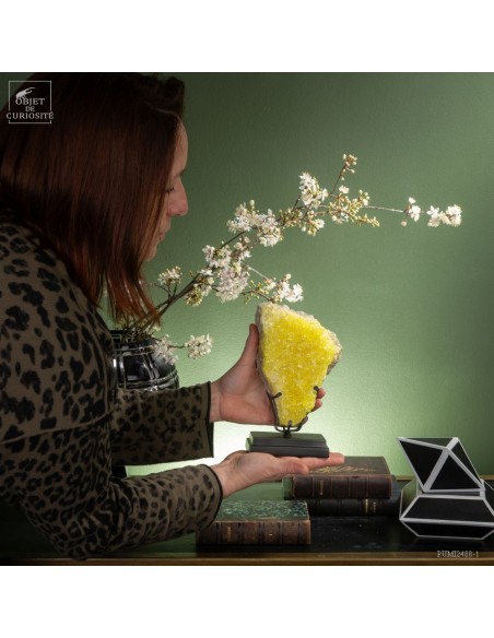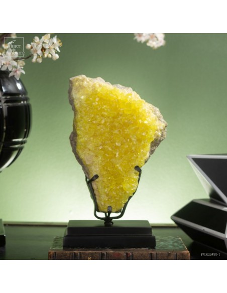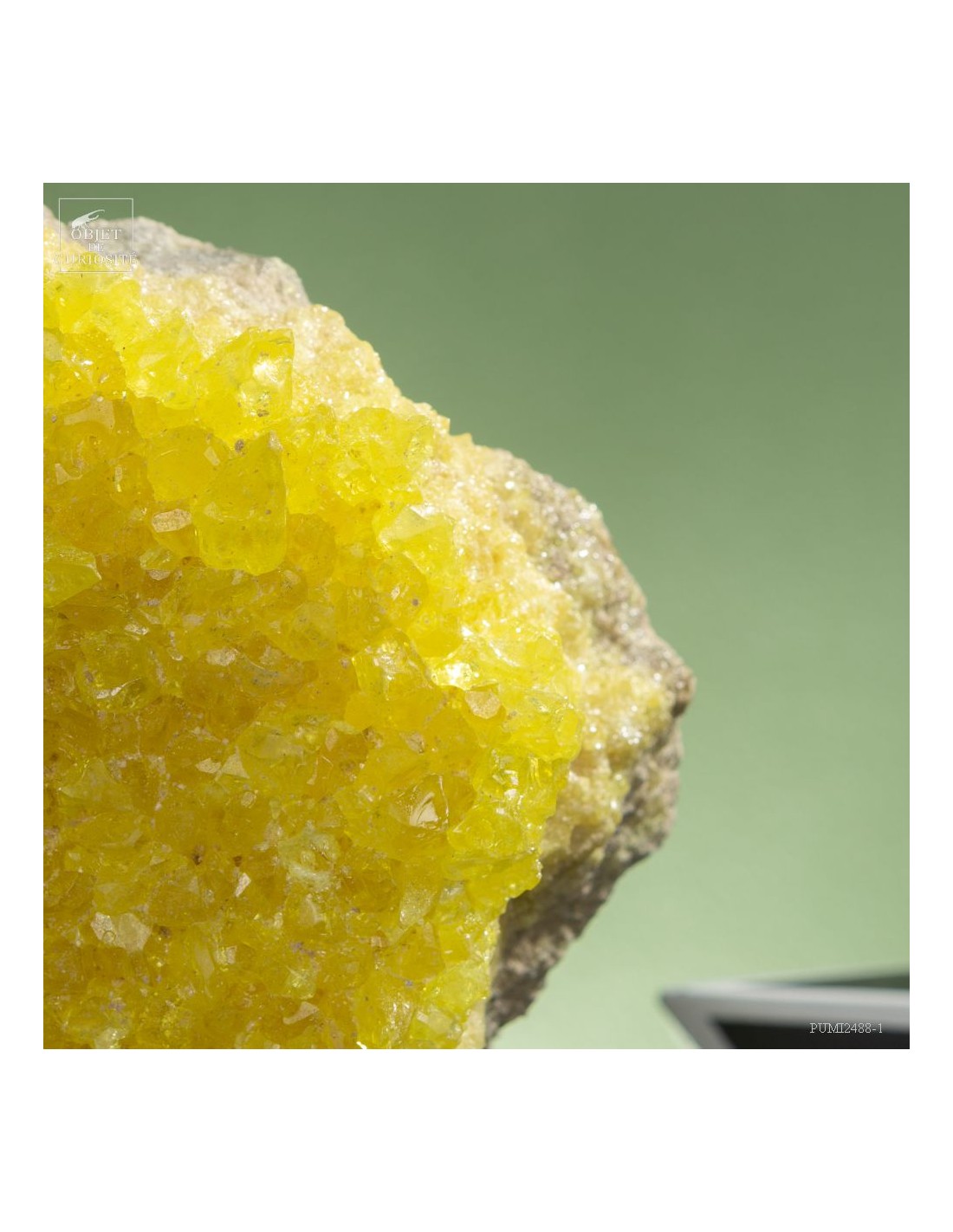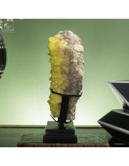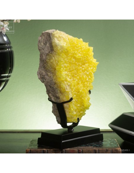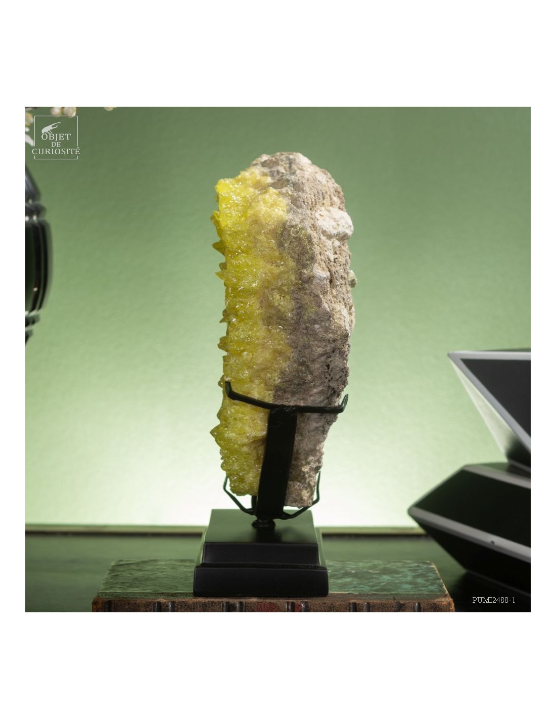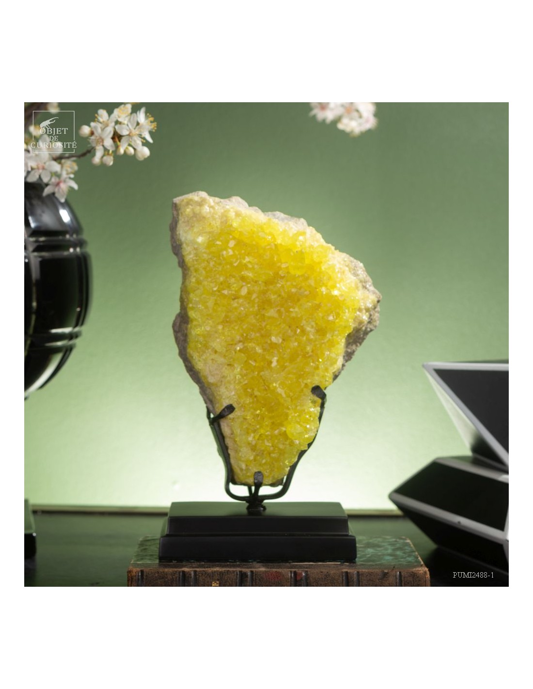 Crystallized native Sulphur from a mine near San Pablo de Napa in Bolivia. Before becoming matches, sulfur is a natural mineral! This cluster of bright yellow crystals is on its original matrix.