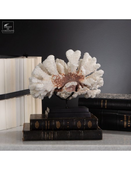 The cauliflower coral, observed underwater, looks more like a fruit than a vegetable! The polyps -the living part of the coral- of this Pocillopora Meandrina are pink. And the granular extremities of each branch look like raspberries! Needing sunlight, it does not grow very deep, and it rarely exceeds 25cm in diameter.