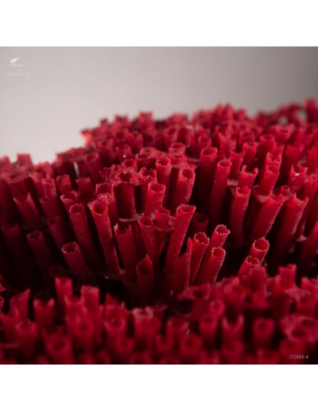 This great red color is natural. But under the sea you would not notice it, as it look like a field of white flowers: the polyps (small animals) living in each pipe of this incredible coral-city .
