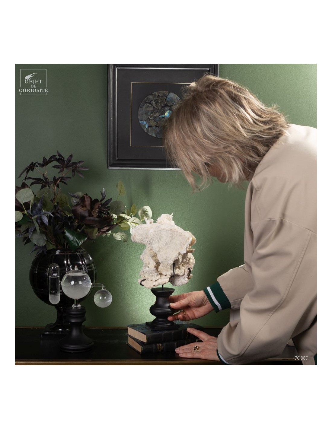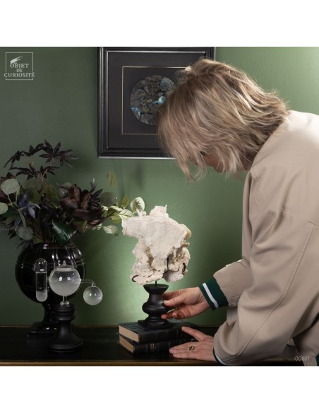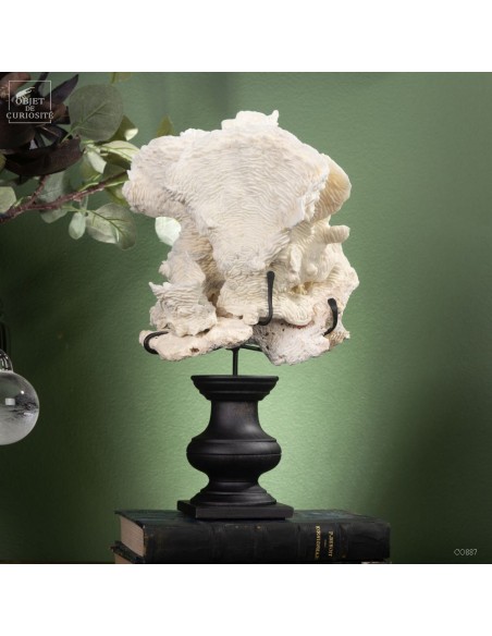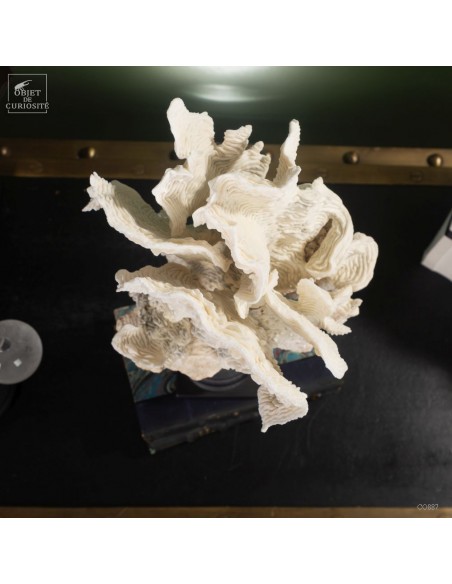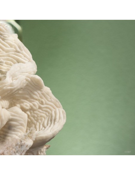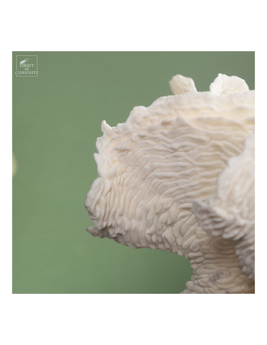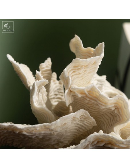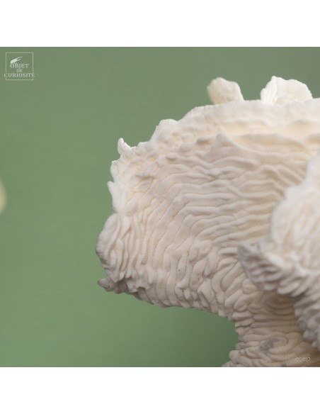 This coral is slightly scratchy, as its name suggests, but it forms above all beautiful jagged waves, sometimes resembling a miniature landscape of terraced rice fields. This one has a perfect shape of tree. In any case, this precious material will attract your eyes to the point of getting lost in these imaginary rice fields... delivered with its own CITES, since it is a species with regulated trade.