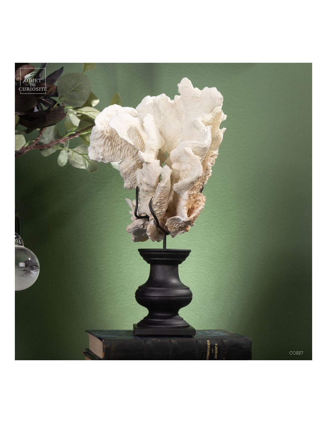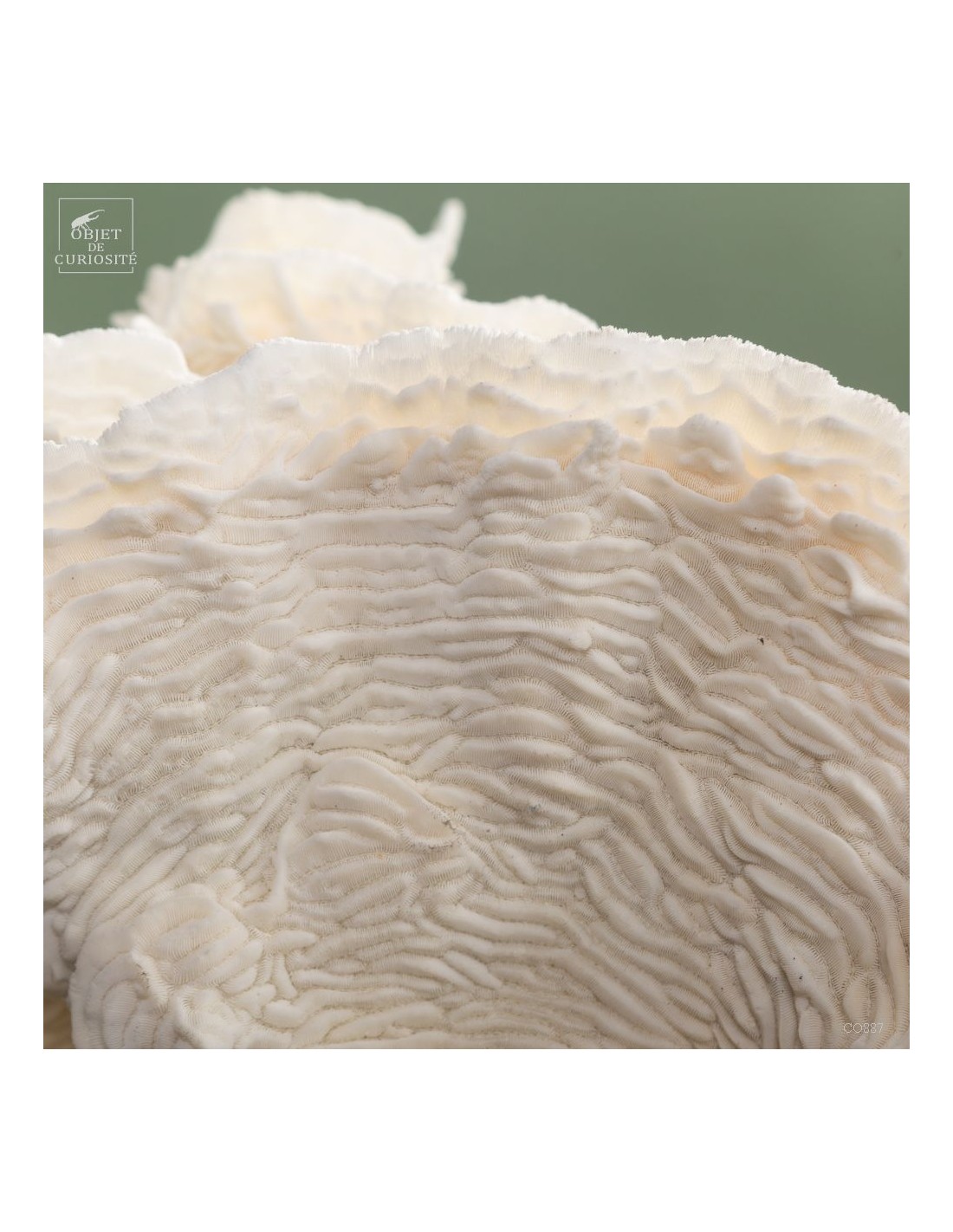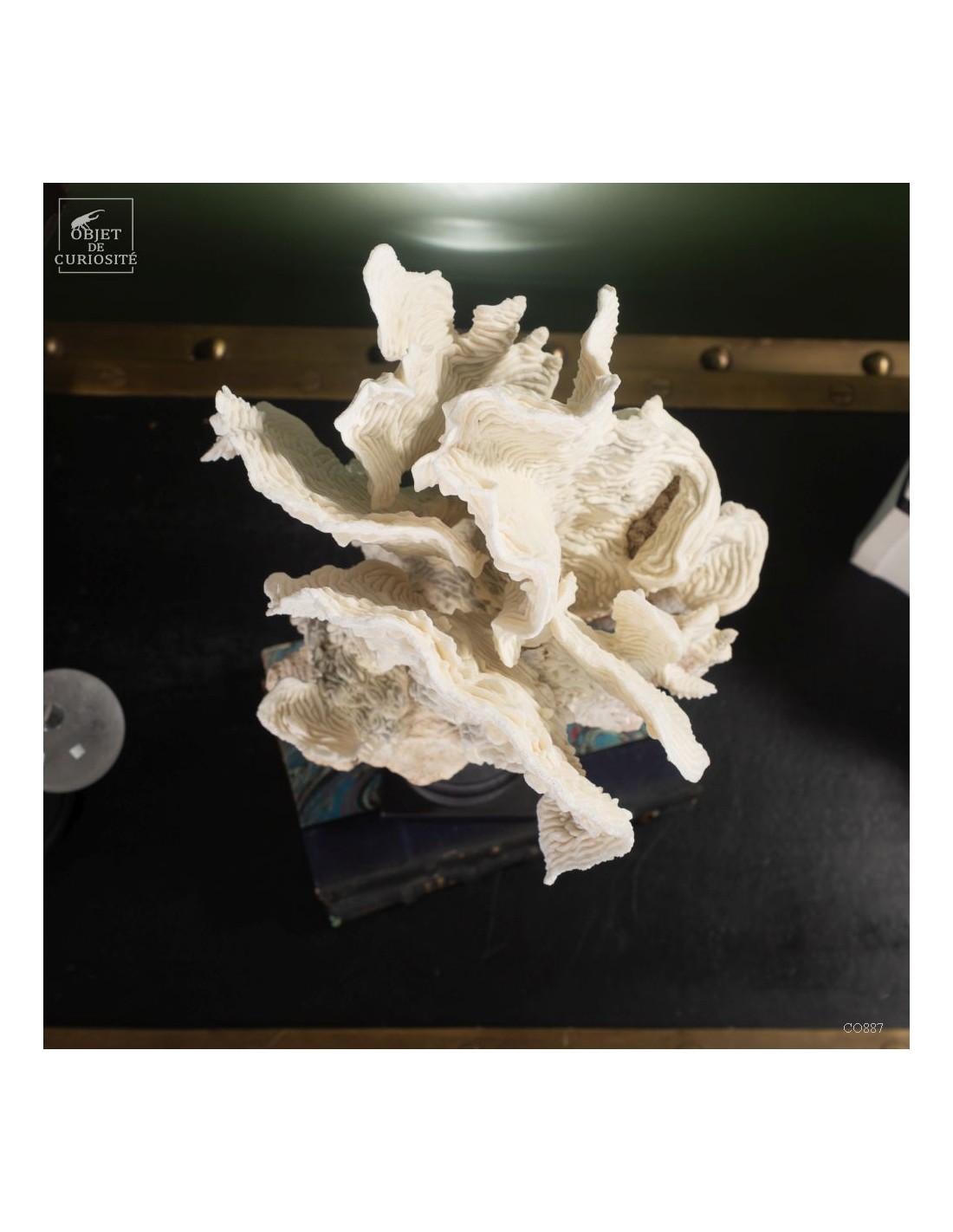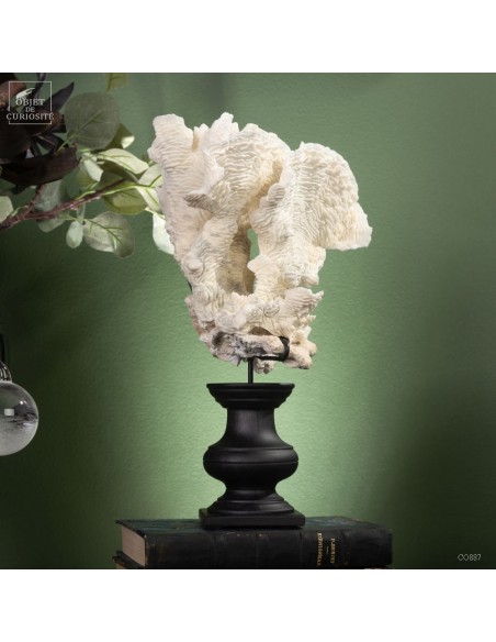 This coral is slightly scratchy, as its name suggests, but it forms above all beautiful jagged waves, sometimes resembling a miniature landscape of terraced rice fields. This one has a perfect shape of tree. In any case, this precious material will attract your eyes to the point of getting lost in these imaginary rice fields... delivered with its own CITES, since it is a species with regulated trade.