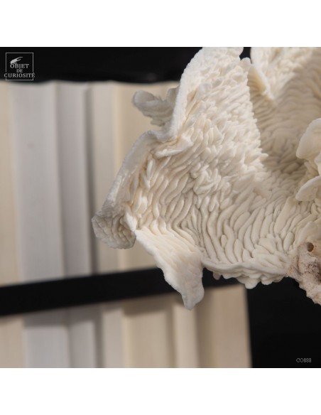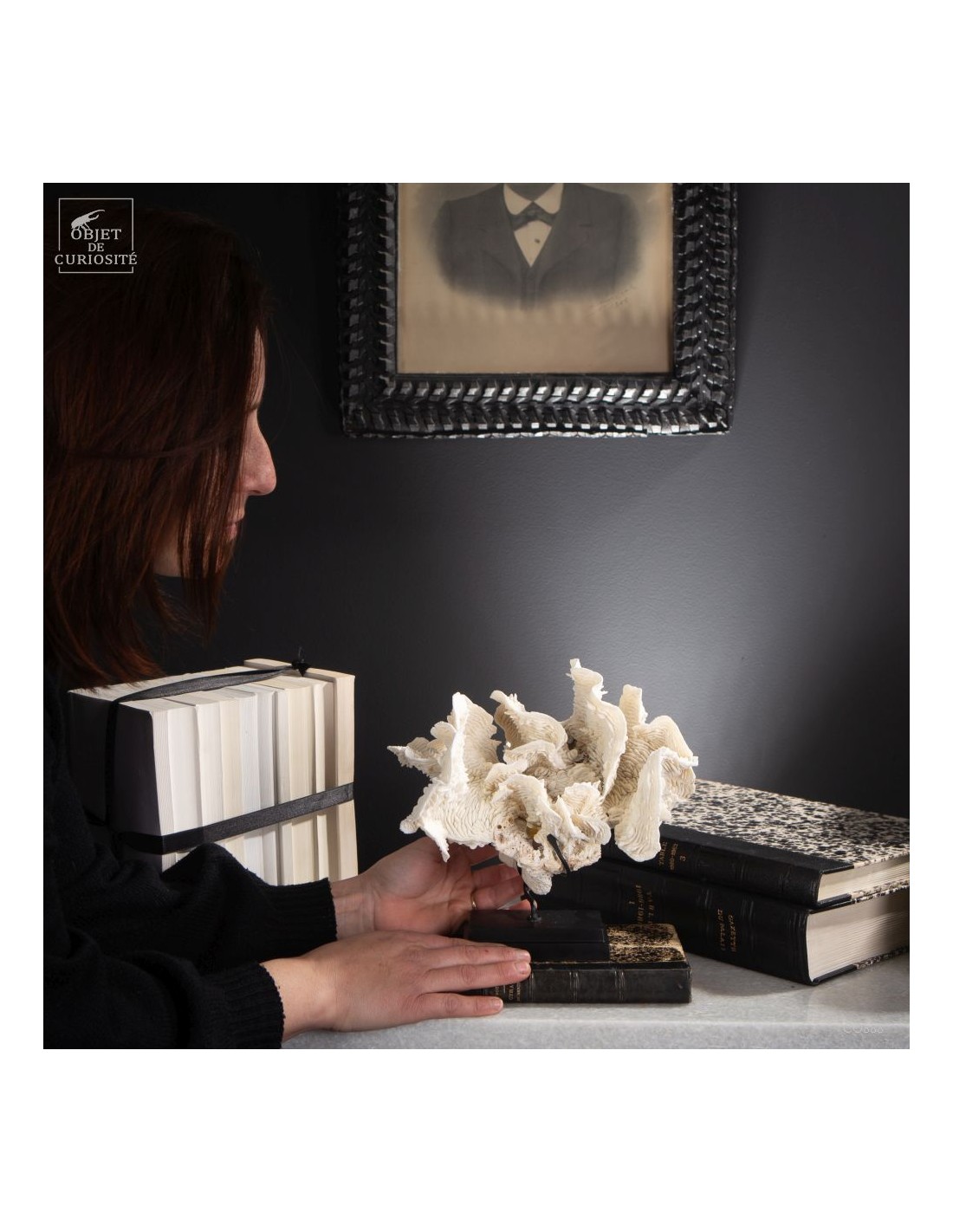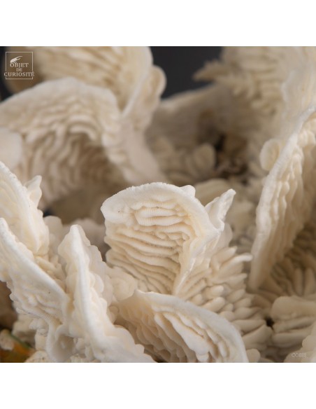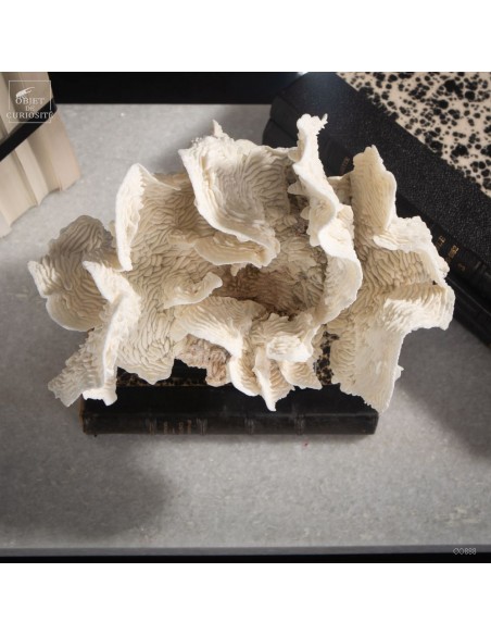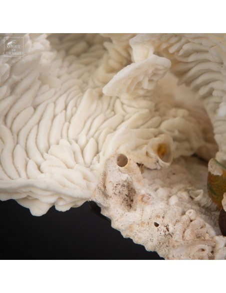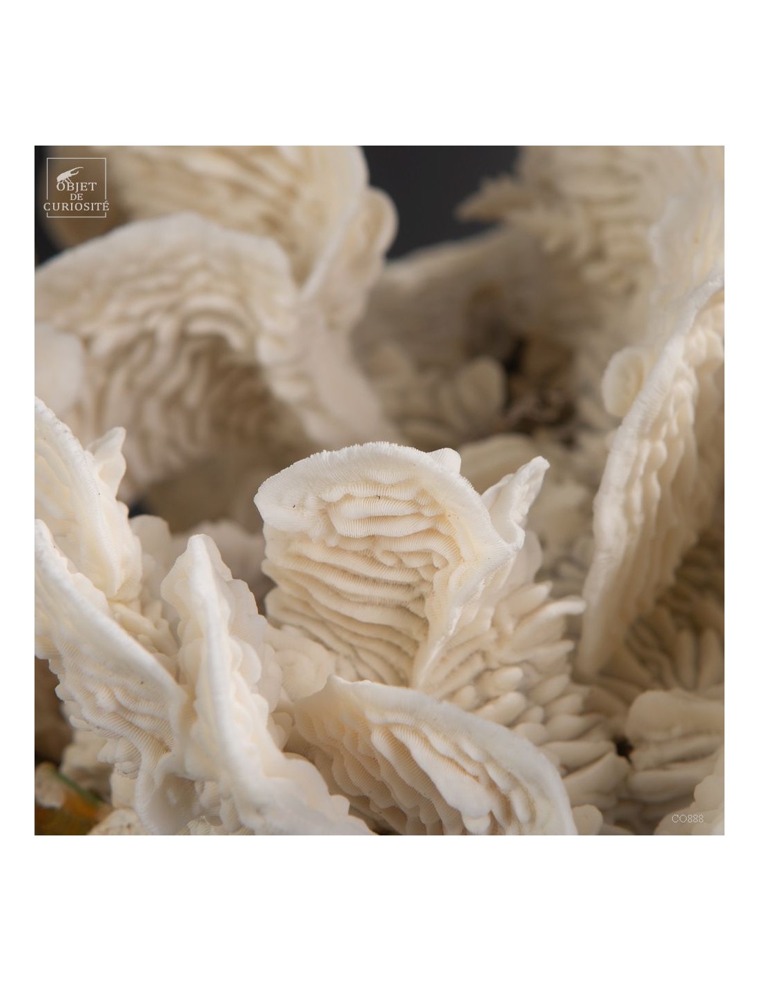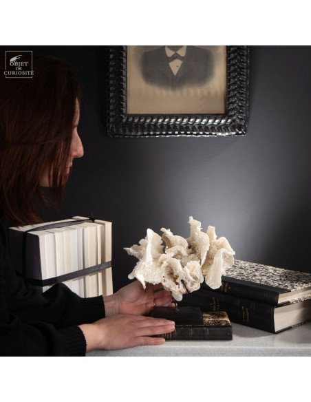This coral is slightly scratchy, as its name suggests, but it forms above all beautiful jagged waves, sometimes resembling a miniature landscape of terraced rice fields. This one has a perfect shape of tree. In any case, this precious material will attract your eyes to the point of getting lost in these imaginary rice fields... delivered with its own CITES, since it is a species with regulated trade.