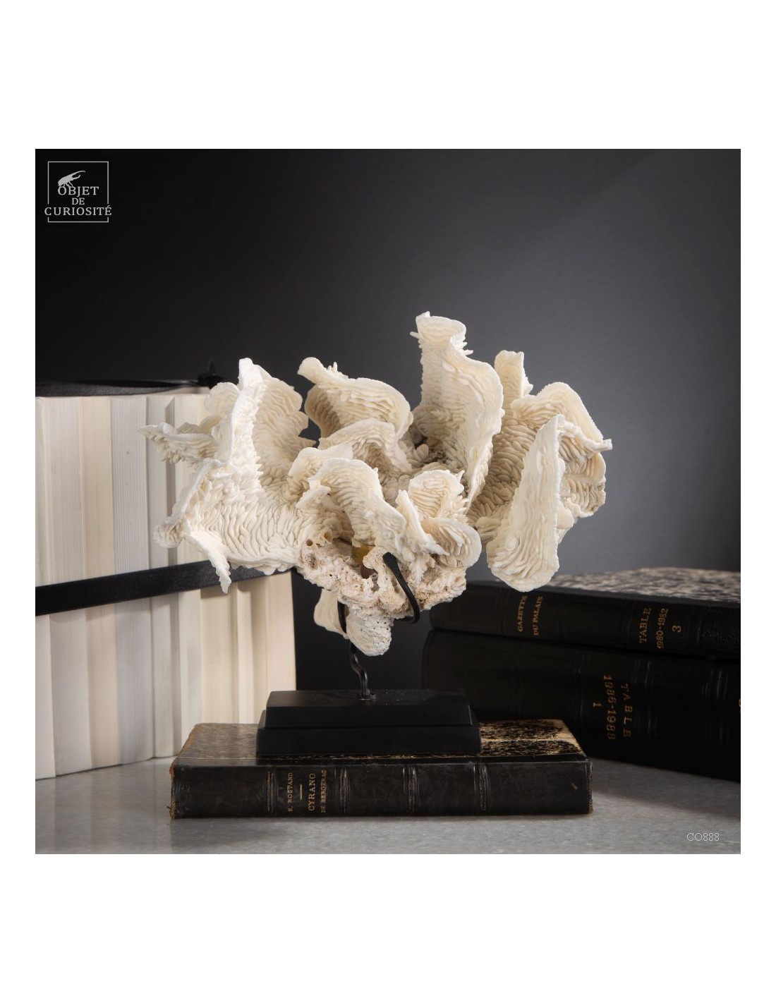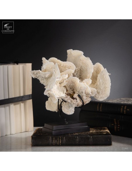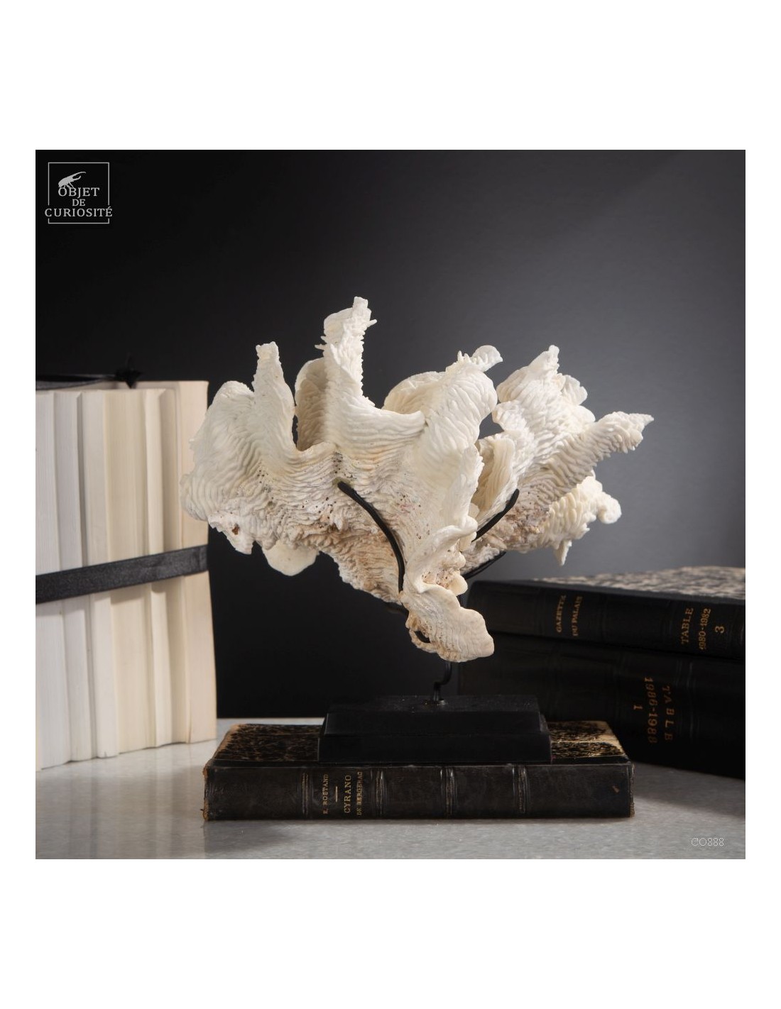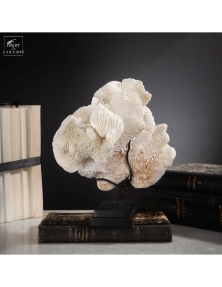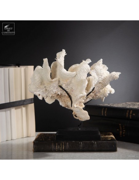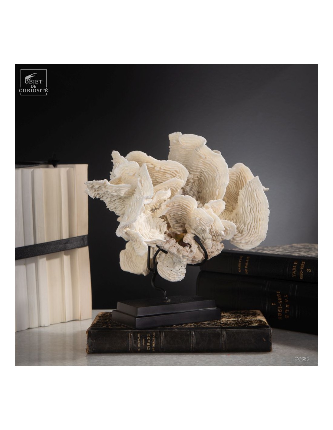This coral is slightly scratchy, as its name suggests, but it forms above all beautiful jagged waves, sometimes resembling a miniature landscape of terraced rice fields. This one has a perfect shape of tree. In any case, this precious material will attract your eyes to the point of getting lost in these imaginary rice fields... delivered with its own CITES, since it is a species with regulated trade.