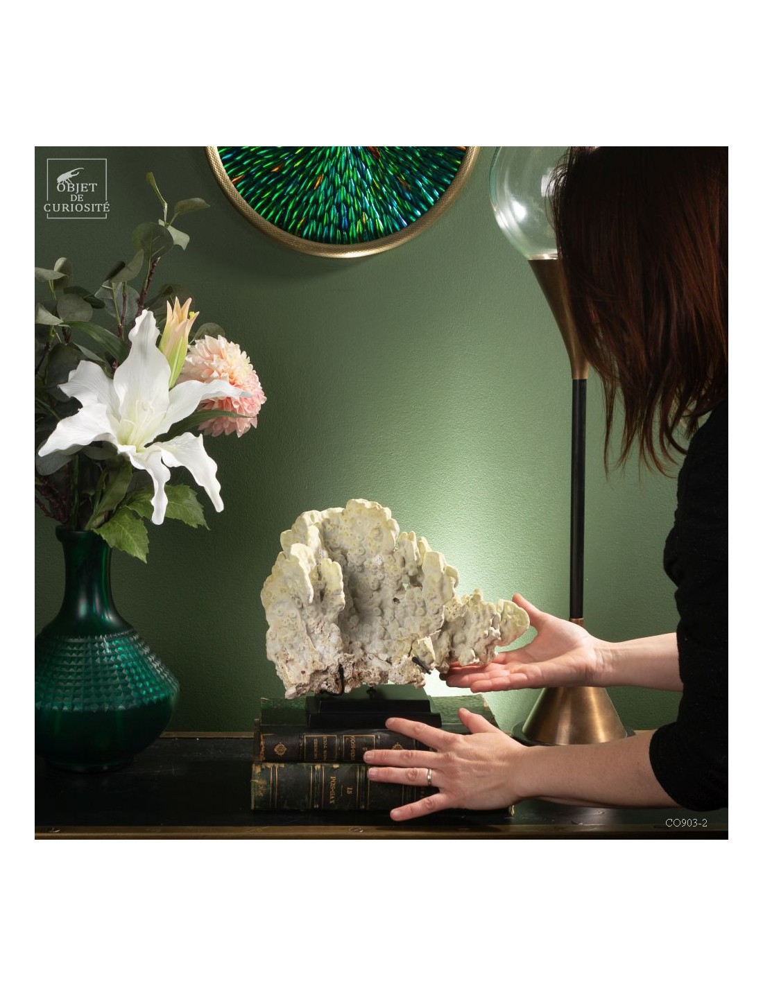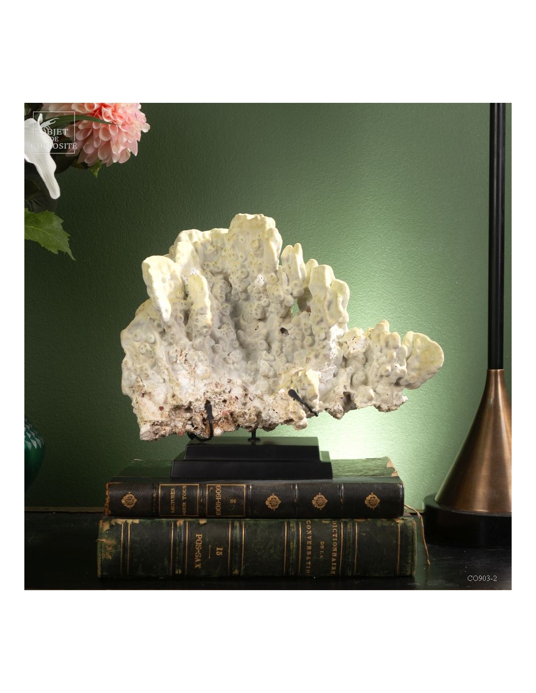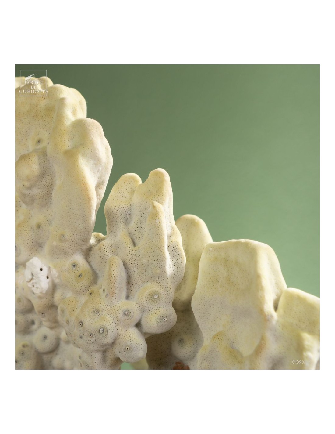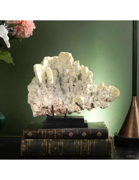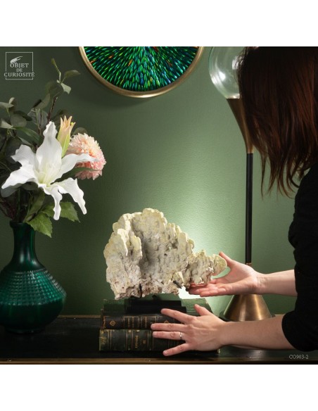 This yellow/green color is very rare among corals. It is a specific form of fire coral of the Millepora family. These corals are a bit of a diver’s nightmare, they are so urticant when touched. From each small "hole" comes a defensive polyp that releases a urticating capsule at the slightest contact. This piece will keep this surprising color. Surely the color that is missing in a decor, but which one? It comes with its own Cites number because it is a regulated-trade species.