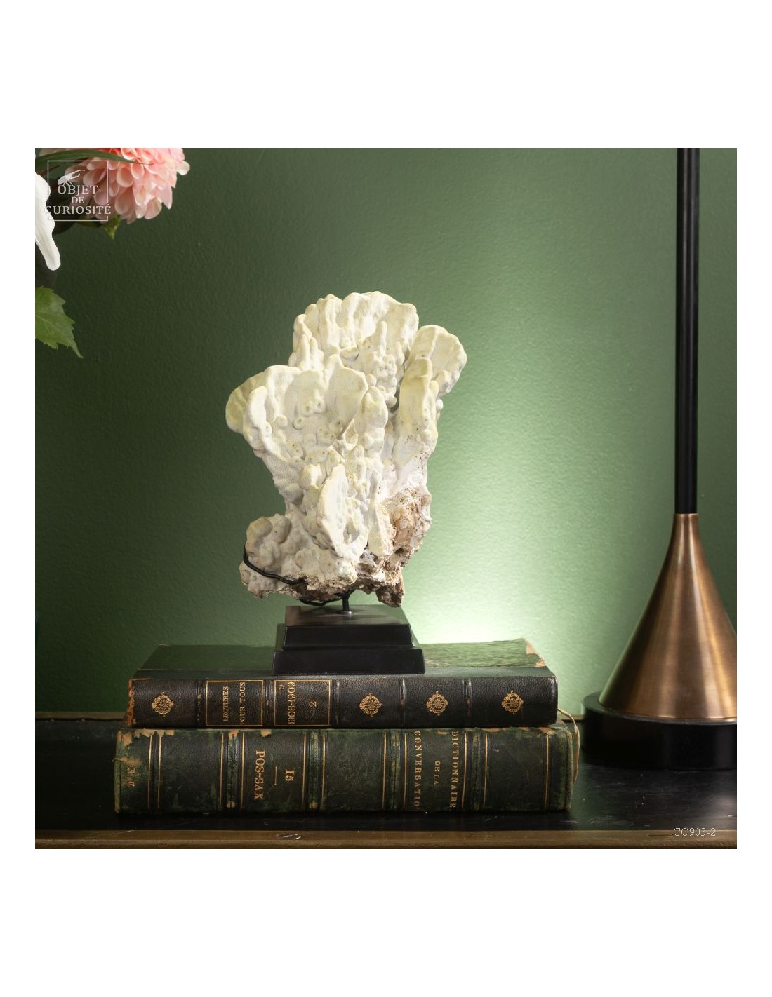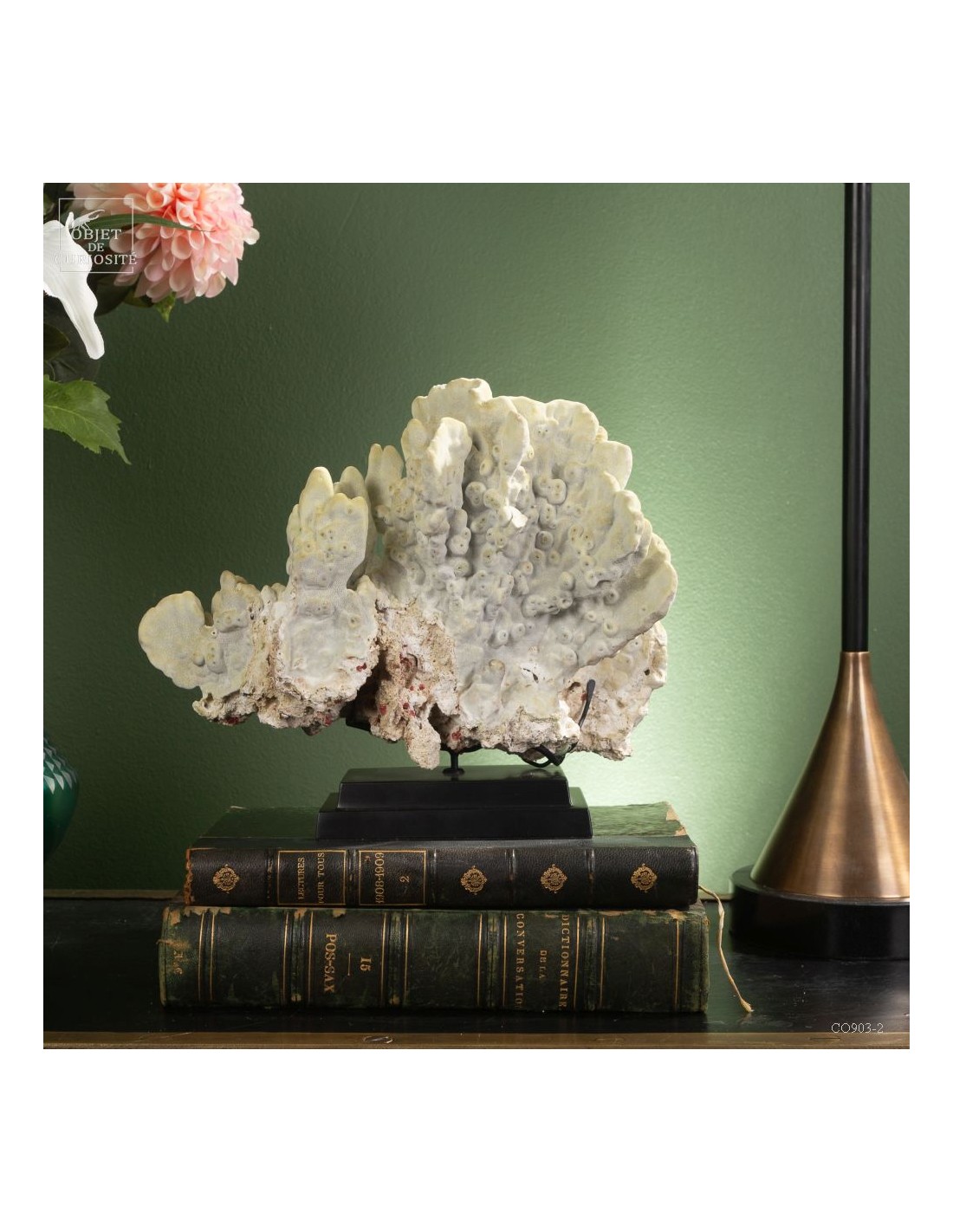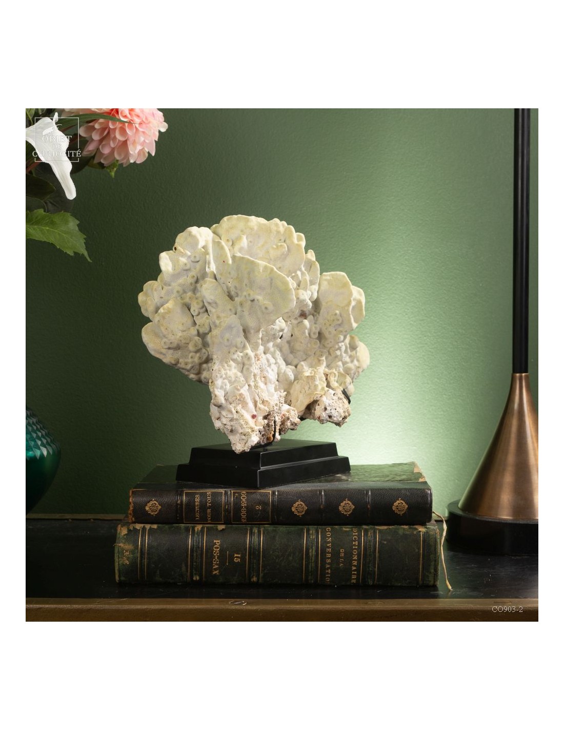 This yellow/green color is very rare among corals. It is a specific form of fire coral of the Millepora family. These corals are a bit of a diver’s nightmare, they are so urticant when touched. From each small "hole" comes a defensive polyp that releases a urticating capsule at the slightest contact. This piece will keep this surprising color. Surely the color that is missing in a decor, but which one? It comes with its own Cites number because it is a regulated-trade species.
