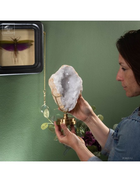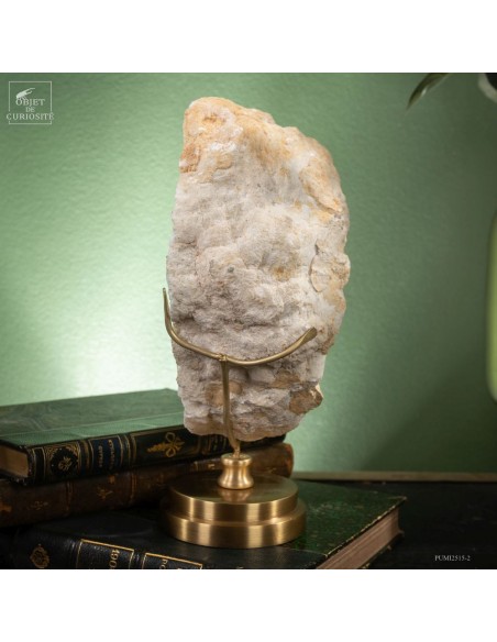 This natural stone from extreme South of Morocco (south of Laâyoune) looks like a simple stone, but inside reveals a full of sparkling natural crystals. A striking contrast with the very simple exterior of this mineral.