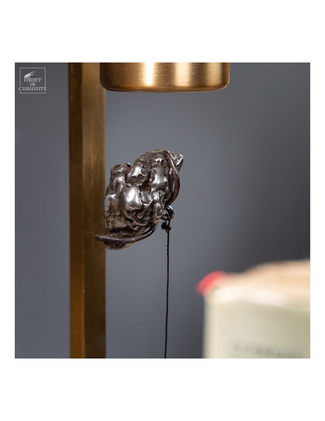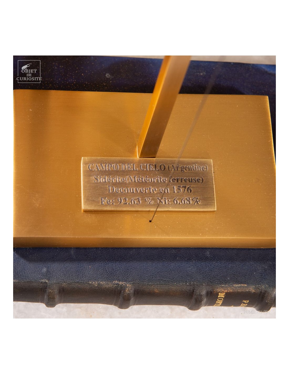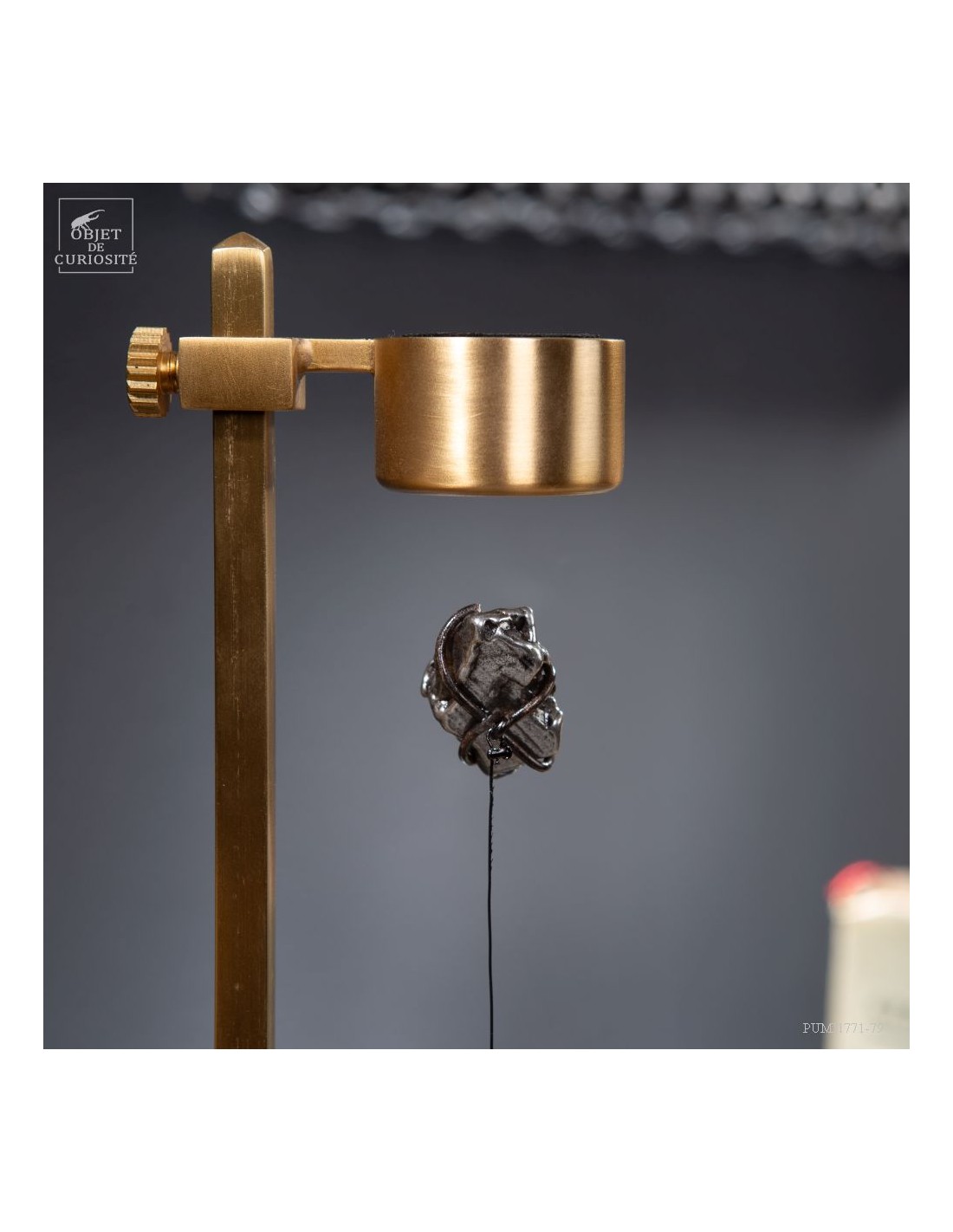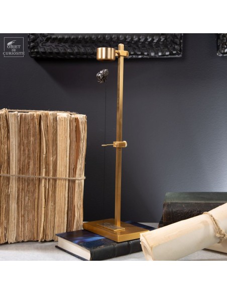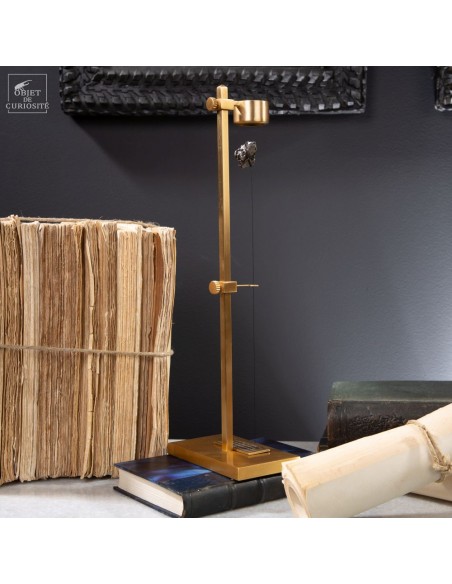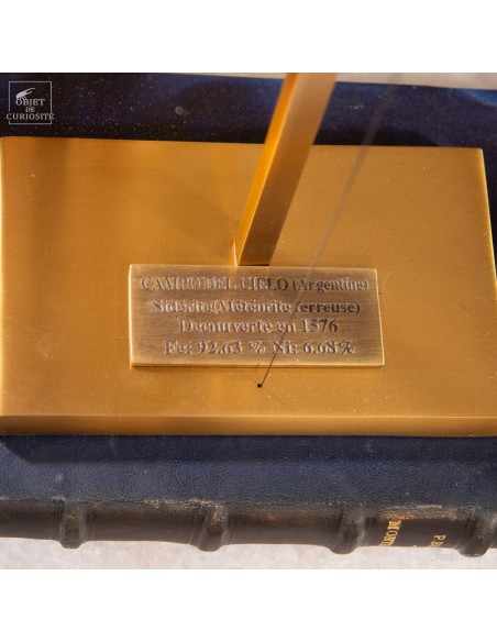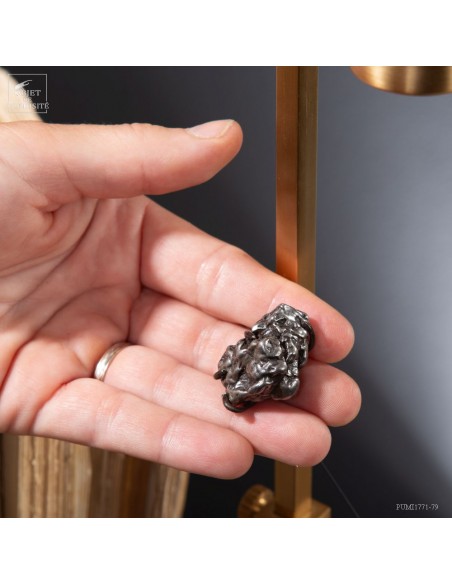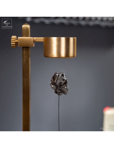 Brass mechanism to launch vertically a meteorite! This rare mineral is a siderite (meteorites that contains iron). Only 6 percent of the meteorite that fall on earth contains iron. This one fell on earth 4000 years ago, and has been reported in 1650 when the spanish Conquistadores invaded Argentina. With that display you can take in your hand a real piece of the history of the world ... And put it back flying! 25 gramms.