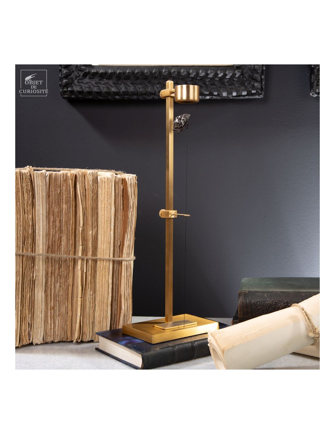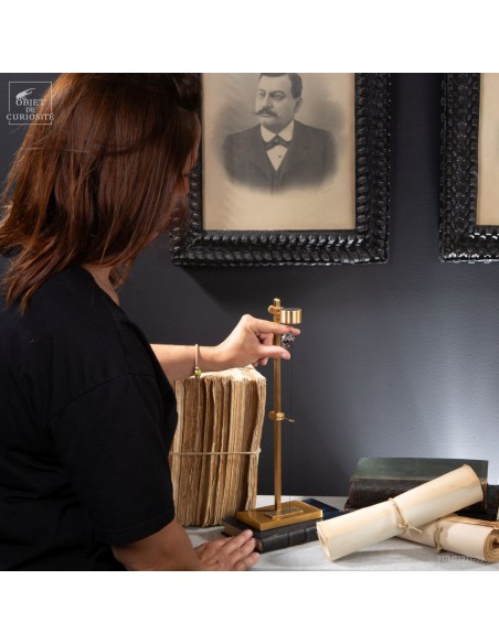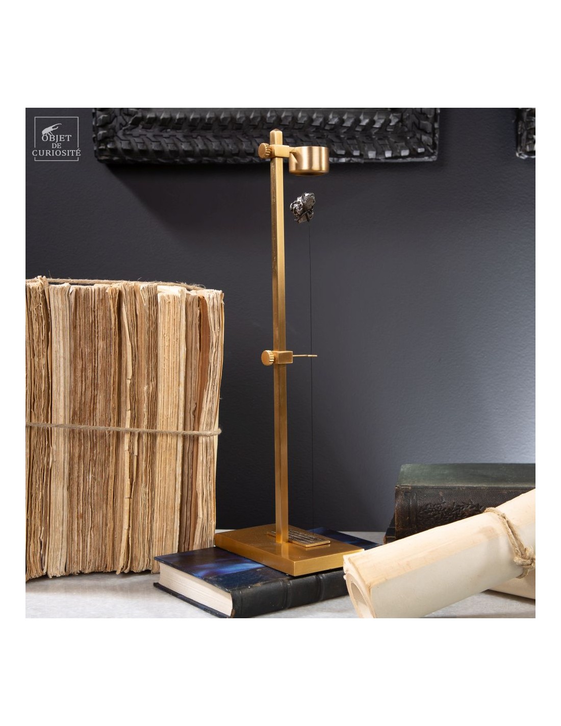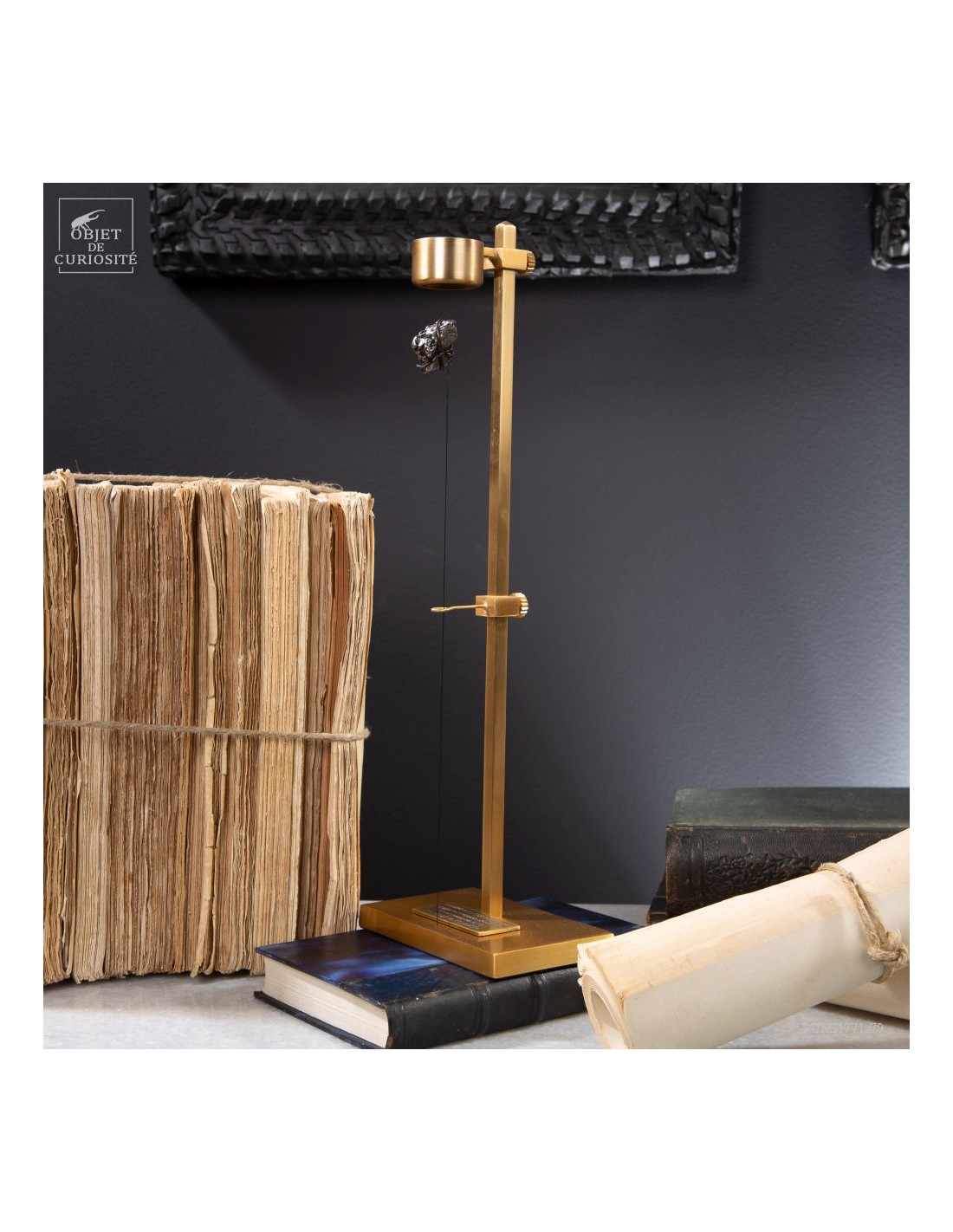Brass mechanism to launch vertically a meteorite! This rare mineral is a siderite (meteorites that contains iron). Only 6 percent of the meteorite that fall on earth contains iron. This one fell on earth 4000 years ago, and has been reported in 1650 when the spanish Conquistadores invaded Argentina. With that display you can take in your hand a real piece of the history of the world ... And put it back flying! 25 gramms.