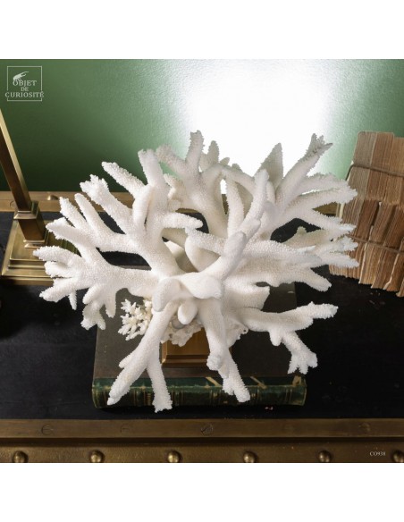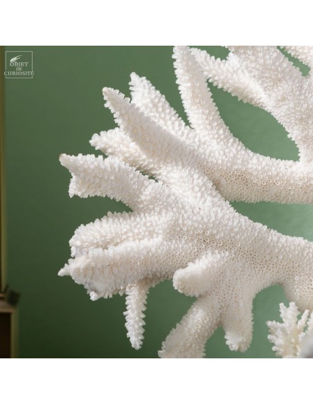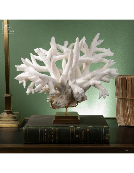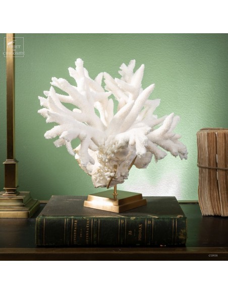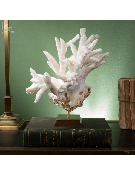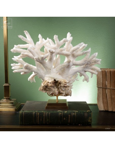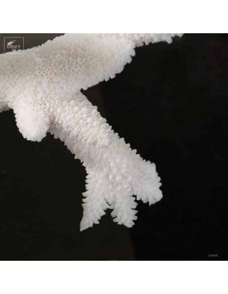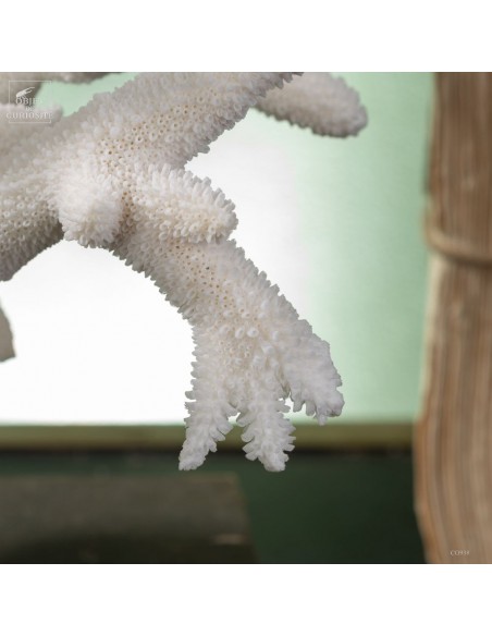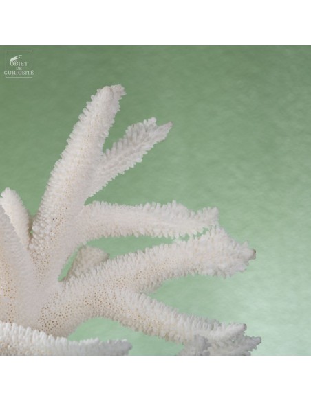 The coral Acropora nobilis, commonly known as “Staghorn coral” due to its thin branches resembling deer antlers, is a species widely distributed in the Indo-Pacific region, particularly around the Solomon Islands, where this piece originates. This coral is distinguished by its tangled colonies that form complex and airy structures. Its color generally ranges from cream to pale yellow, with whitish tips that remain visible, indicating the active growth of the species. This particular piece has a naturally balanced shape, making it ideal as a curiosity object. As this coral is protected under the Washington Convention (CITES), it comes with its CITES certificate, ensuring its legality and compliance with international regulations on the trade of endangered species.
