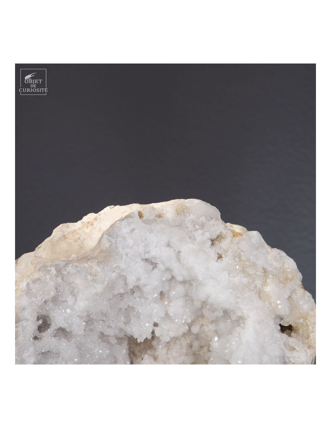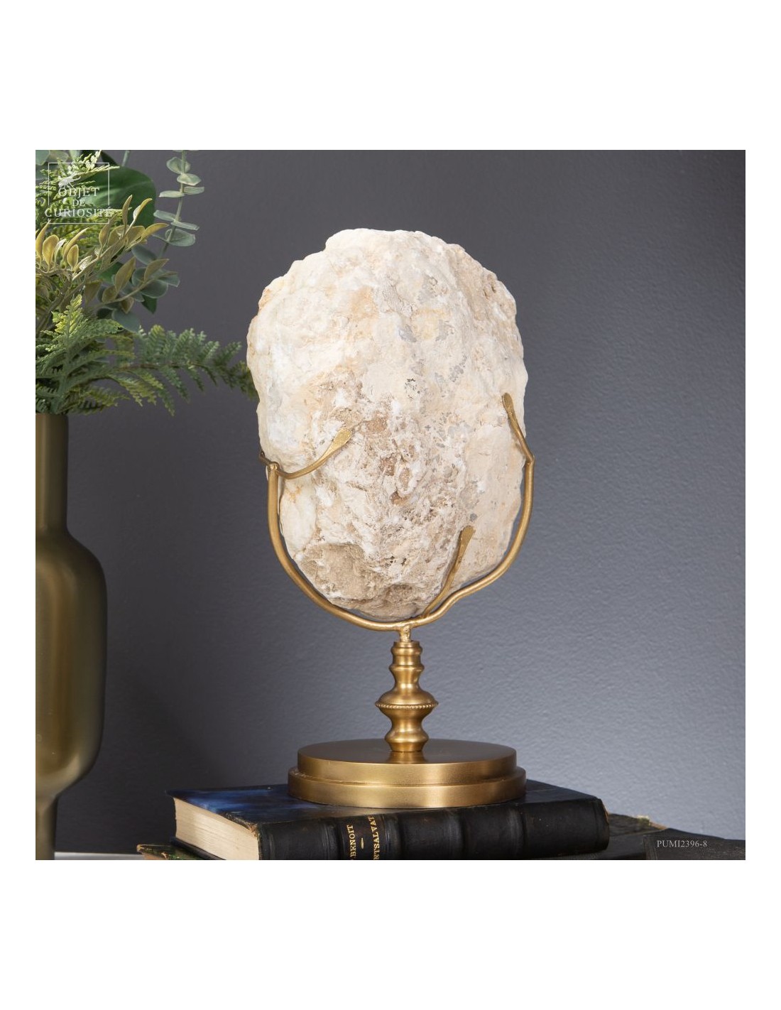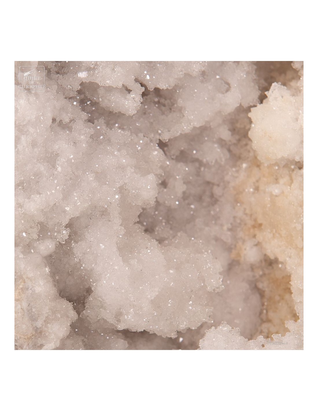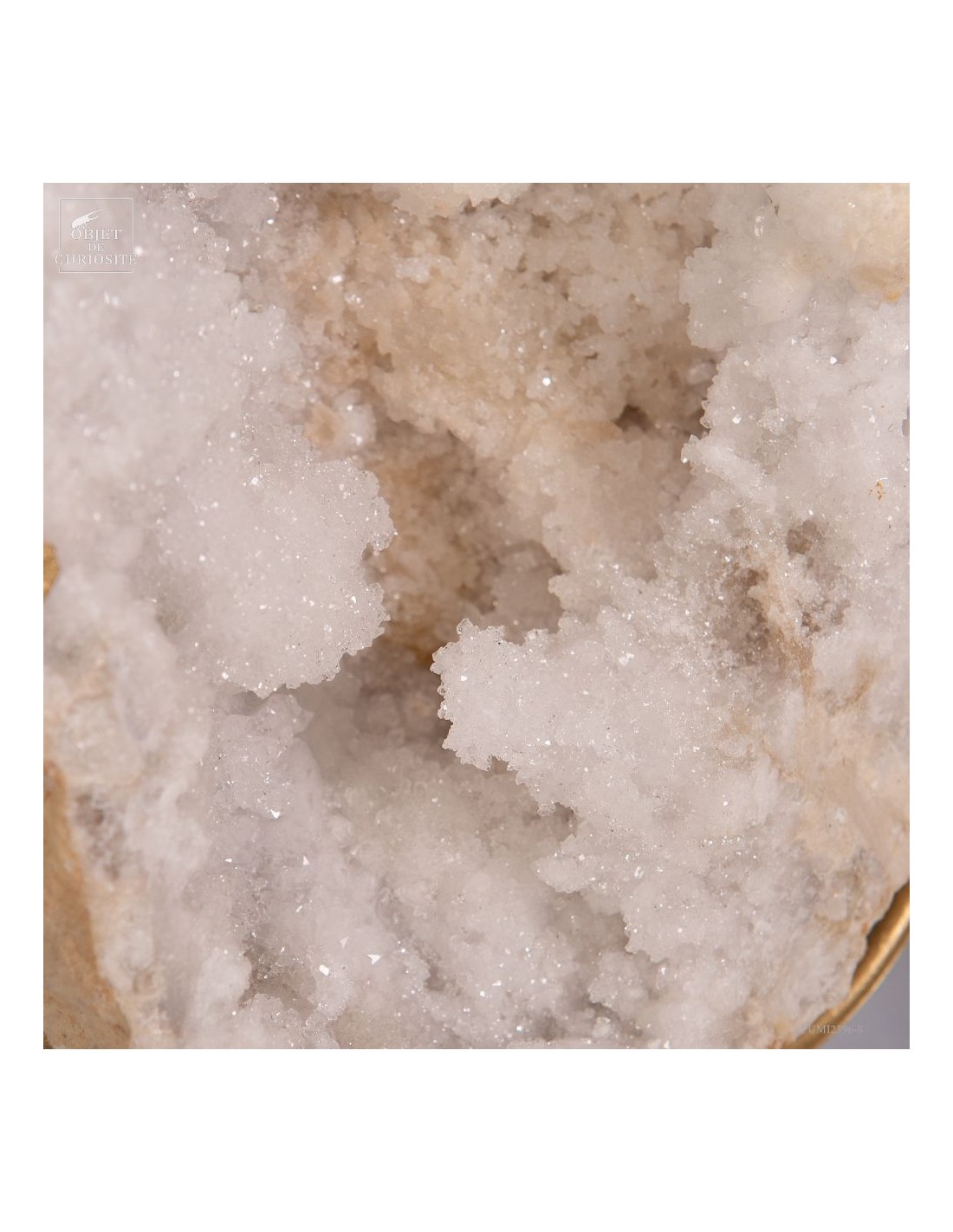 This natural stone from extreme South of Morocco (south of Laâyoune) looks like a simple stone, but inside reveals a full of sparkling natural crystals. A striking contrast with the very simple exterior of this mineral.