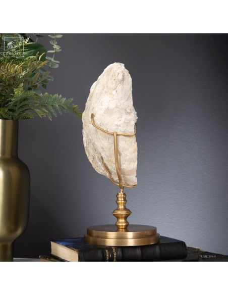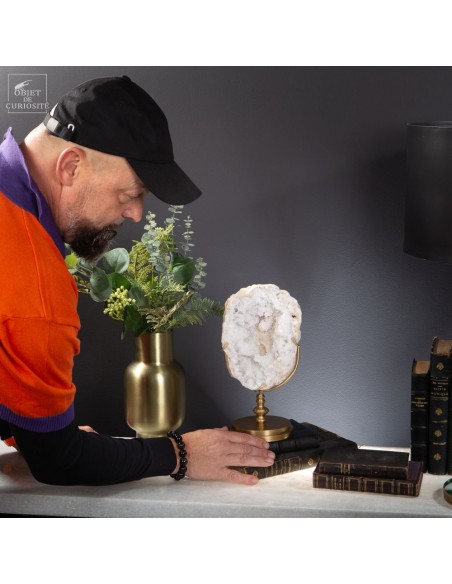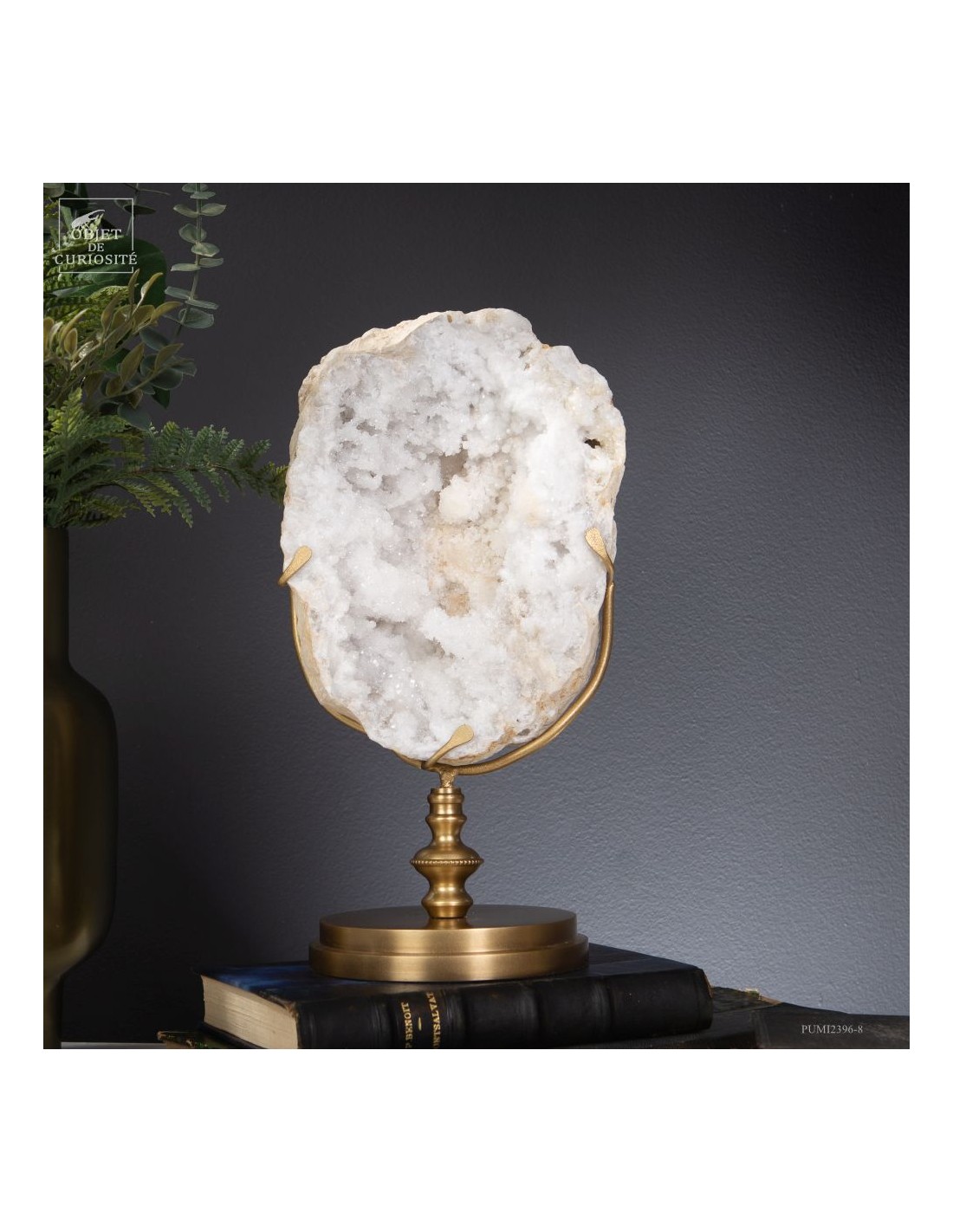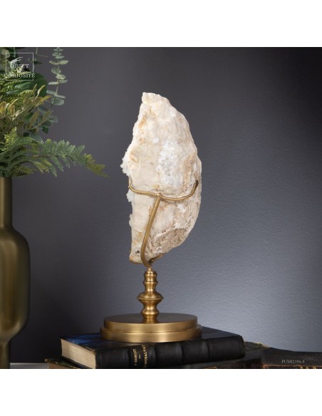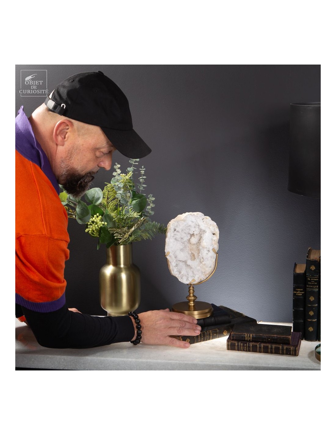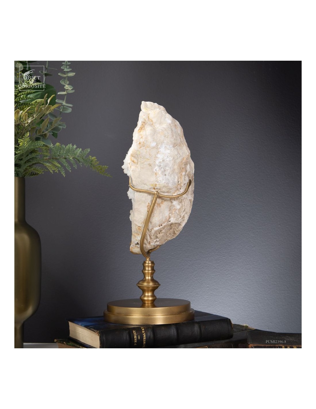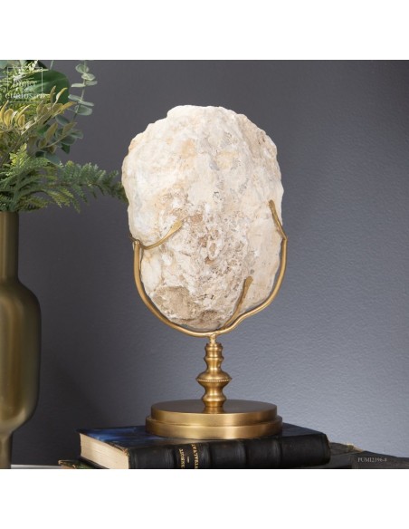 This natural stone from extreme South of Morocco (south of Laâyoune) looks like a simple stone, but inside reveals a full of sparkling natural crystals. A striking contrast with the very simple exterior of this mineral.