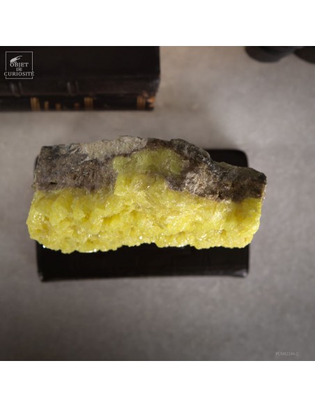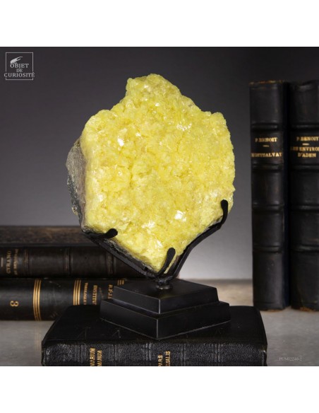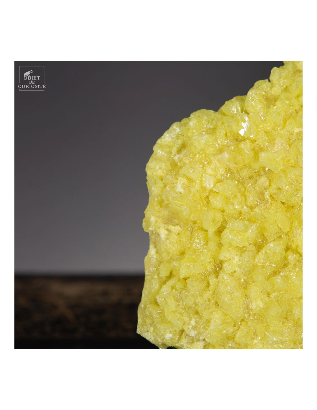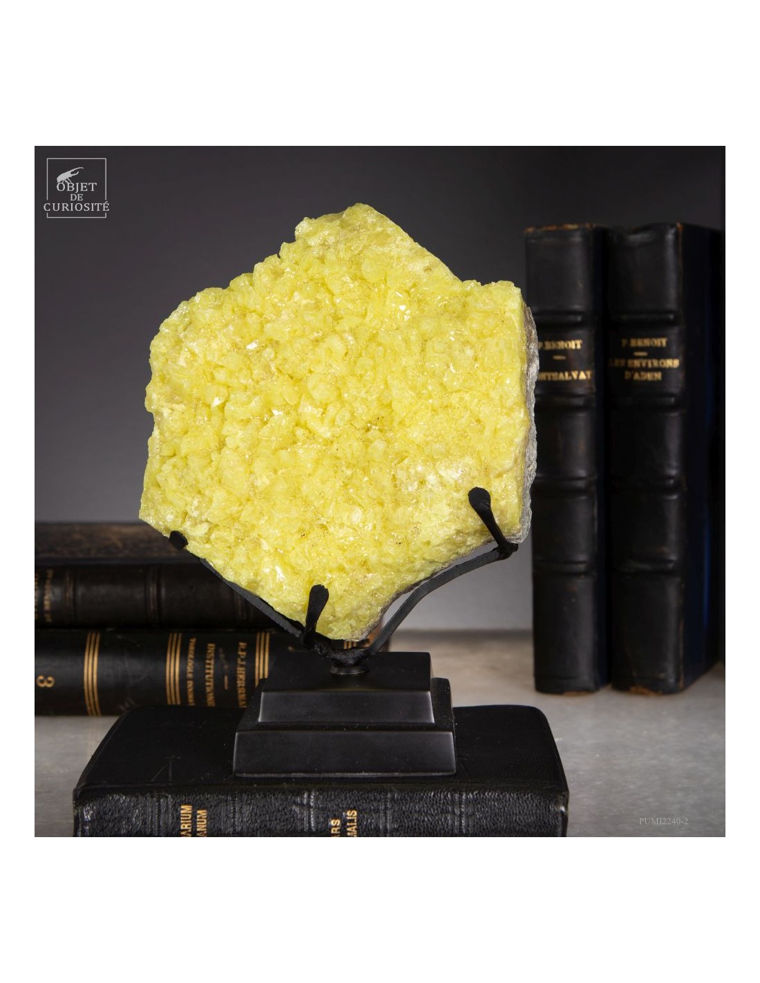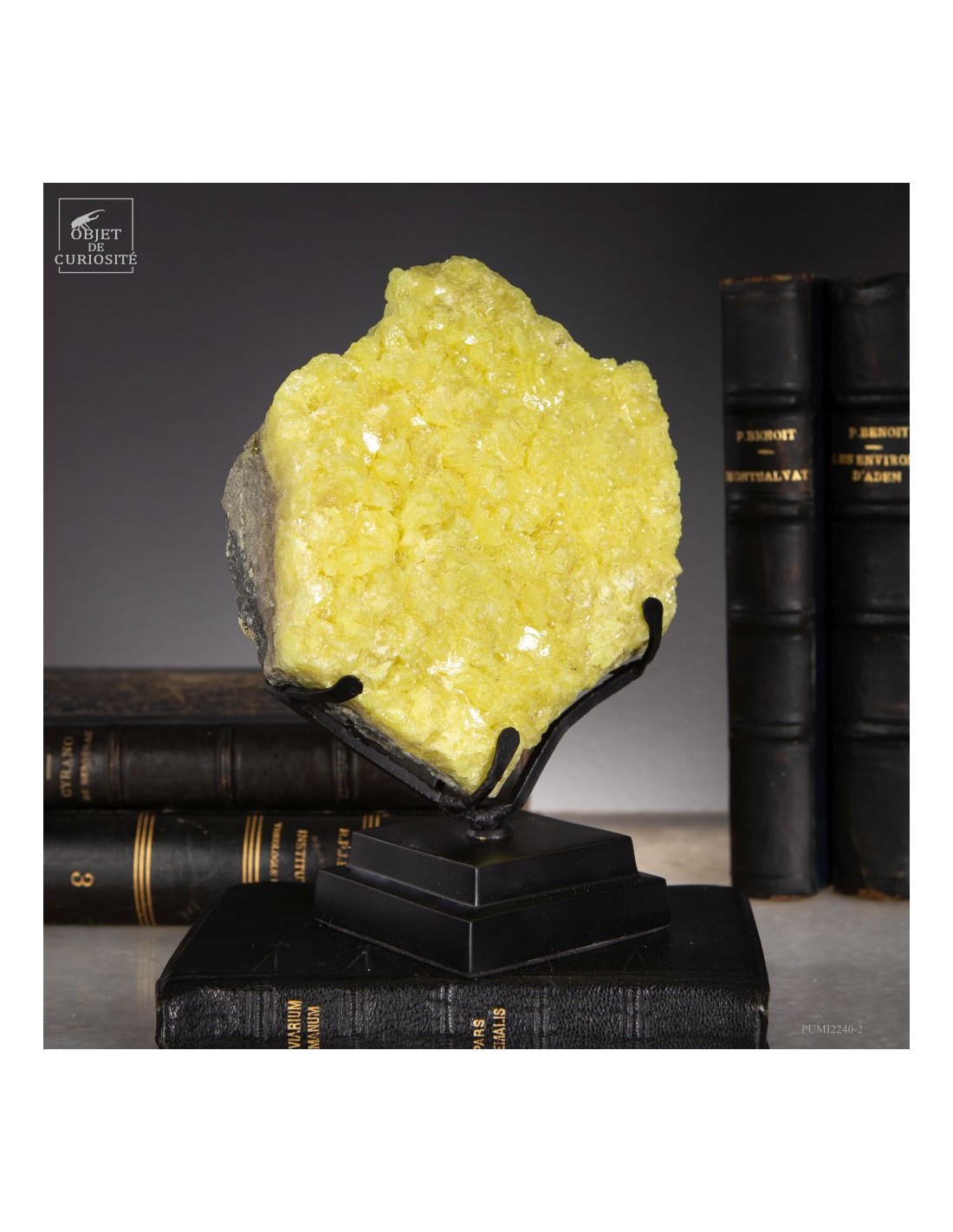 This 650g specimen of native sulfur comes from the vicinity of San Pablo de Napa, Bolivia. Naturally crystallized on its matrix, it is notable for its bright yellow color and exceptional luster, formed in sulfur-rich volcanic deposits. Before its industrial applications, sulfur appears in this raw and crystalline form, making each piece unique and rare.
