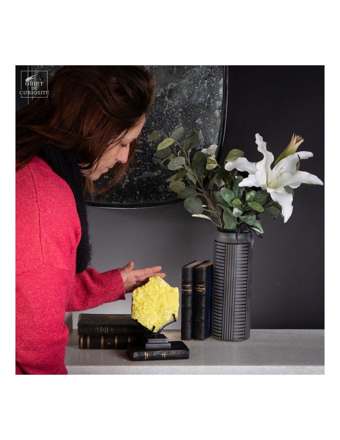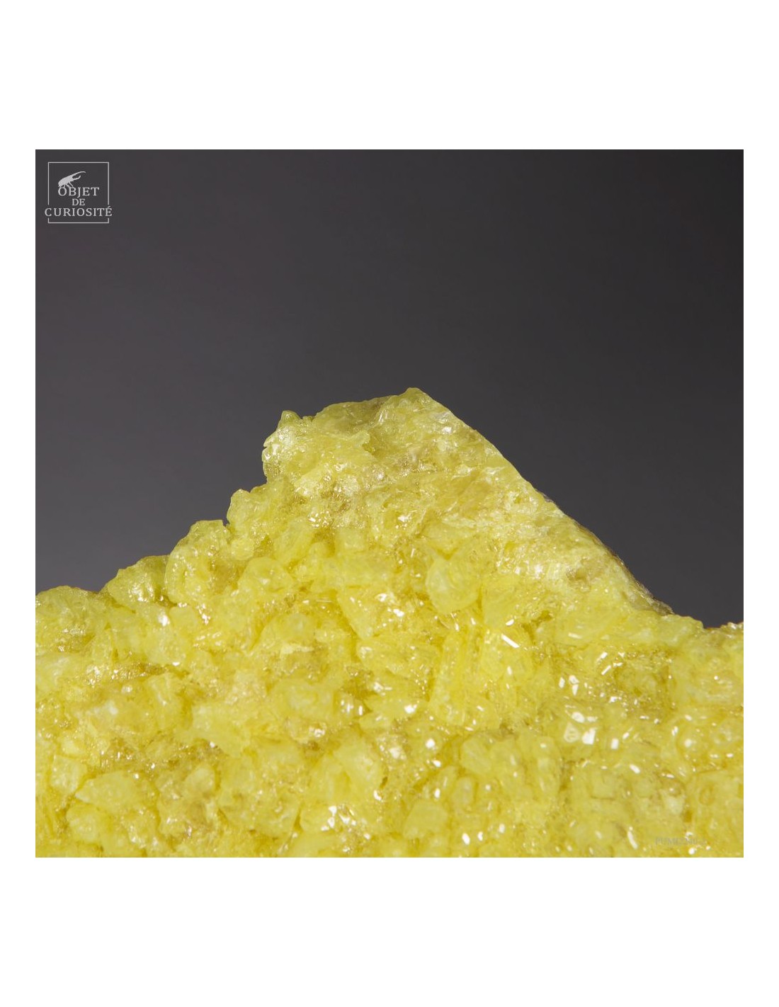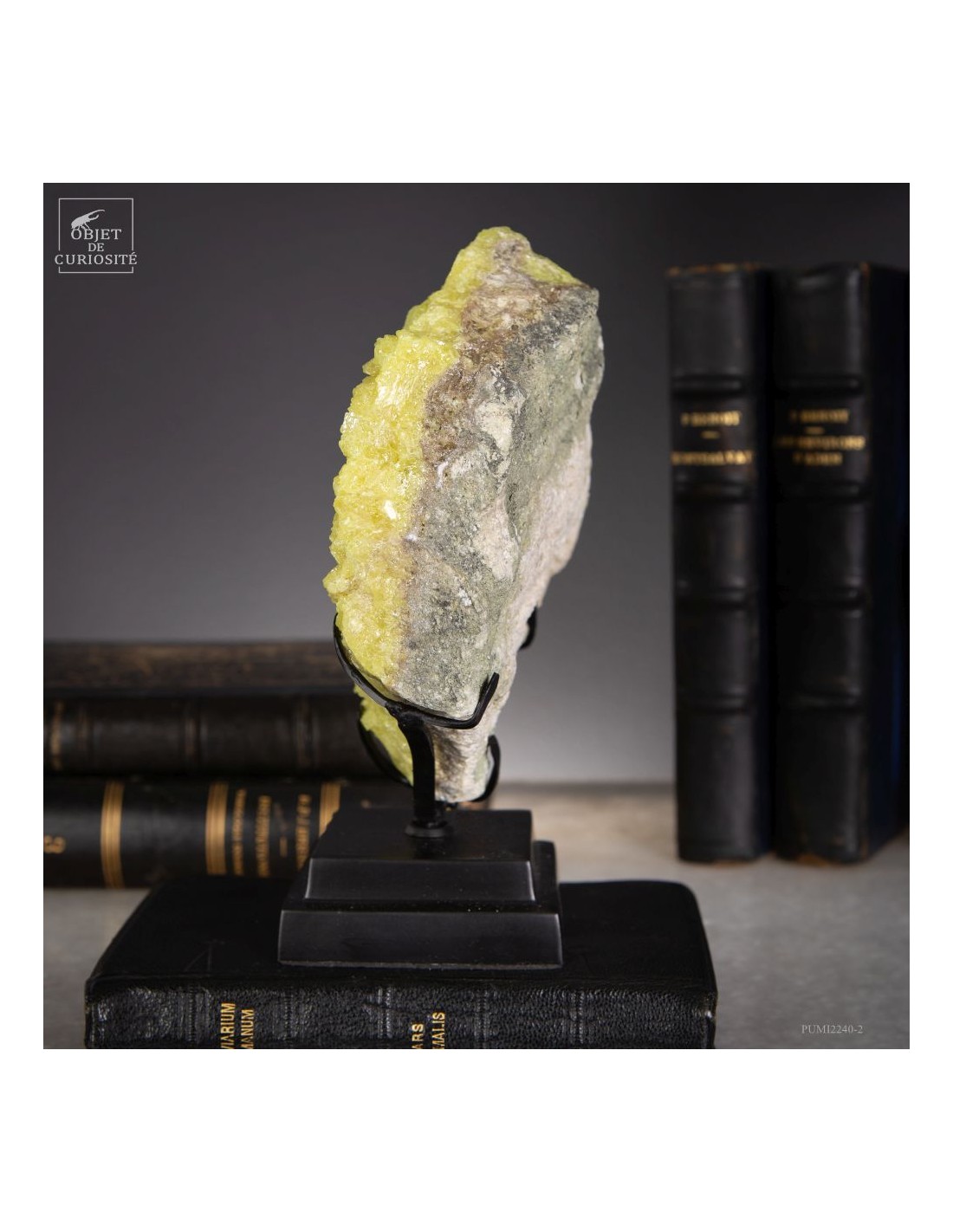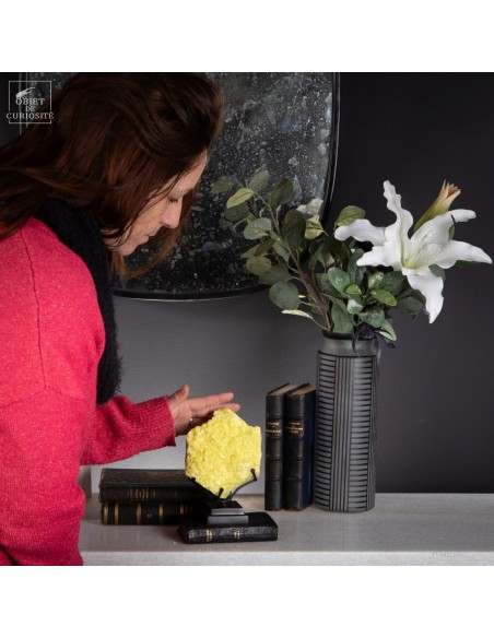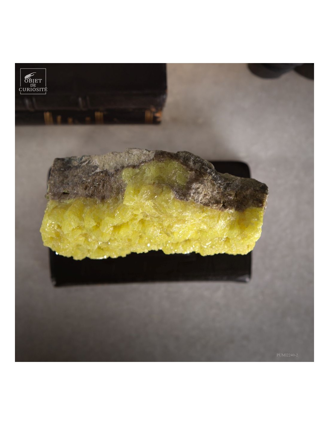 This 650g specimen of native sulfur comes from the vicinity of San Pablo de Napa, Bolivia. Naturally crystallized on its matrix, it is notable for its bright yellow color and exceptional luster, formed in sulfur-rich volcanic deposits. Before its industrial applications, sulfur appears in this raw and crystalline form, making each piece unique and rare.