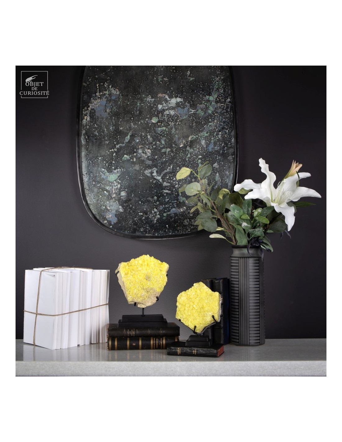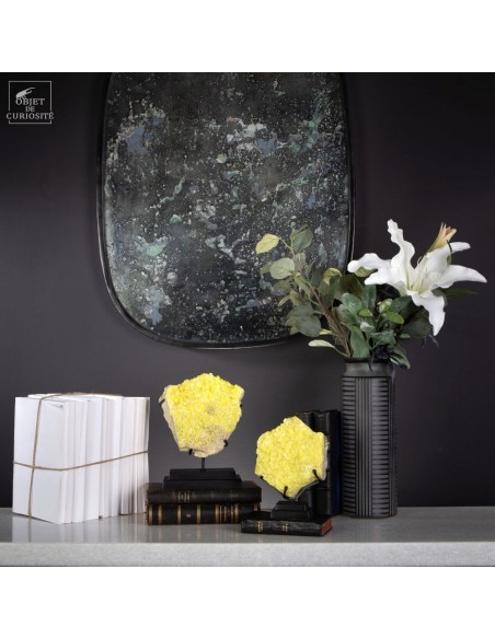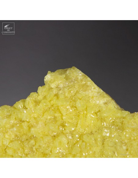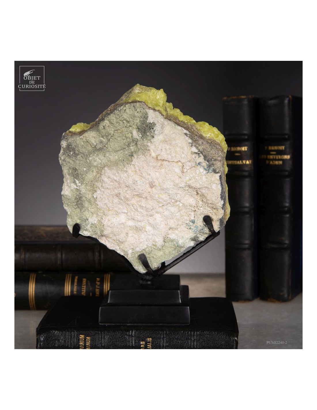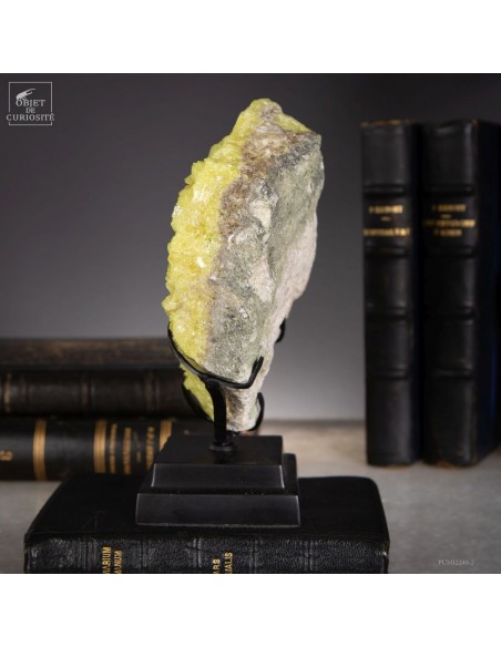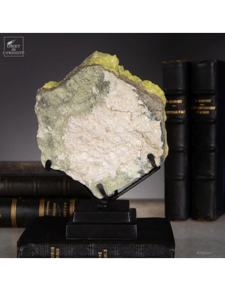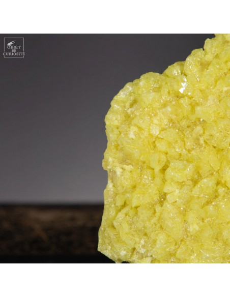 This 650g specimen of native sulfur comes from the vicinity of San Pablo de Napa, Bolivia. Naturally crystallized on its matrix, it is notable for its bright yellow color and exceptional luster, formed in sulfur-rich volcanic deposits. Before its industrial applications, sulfur appears in this raw and crystalline form, making each piece unique and rare.