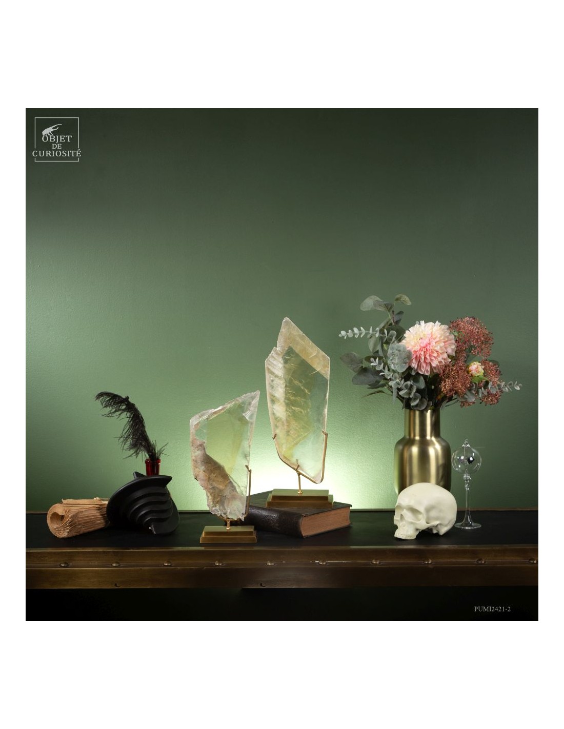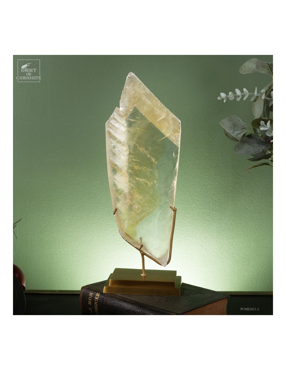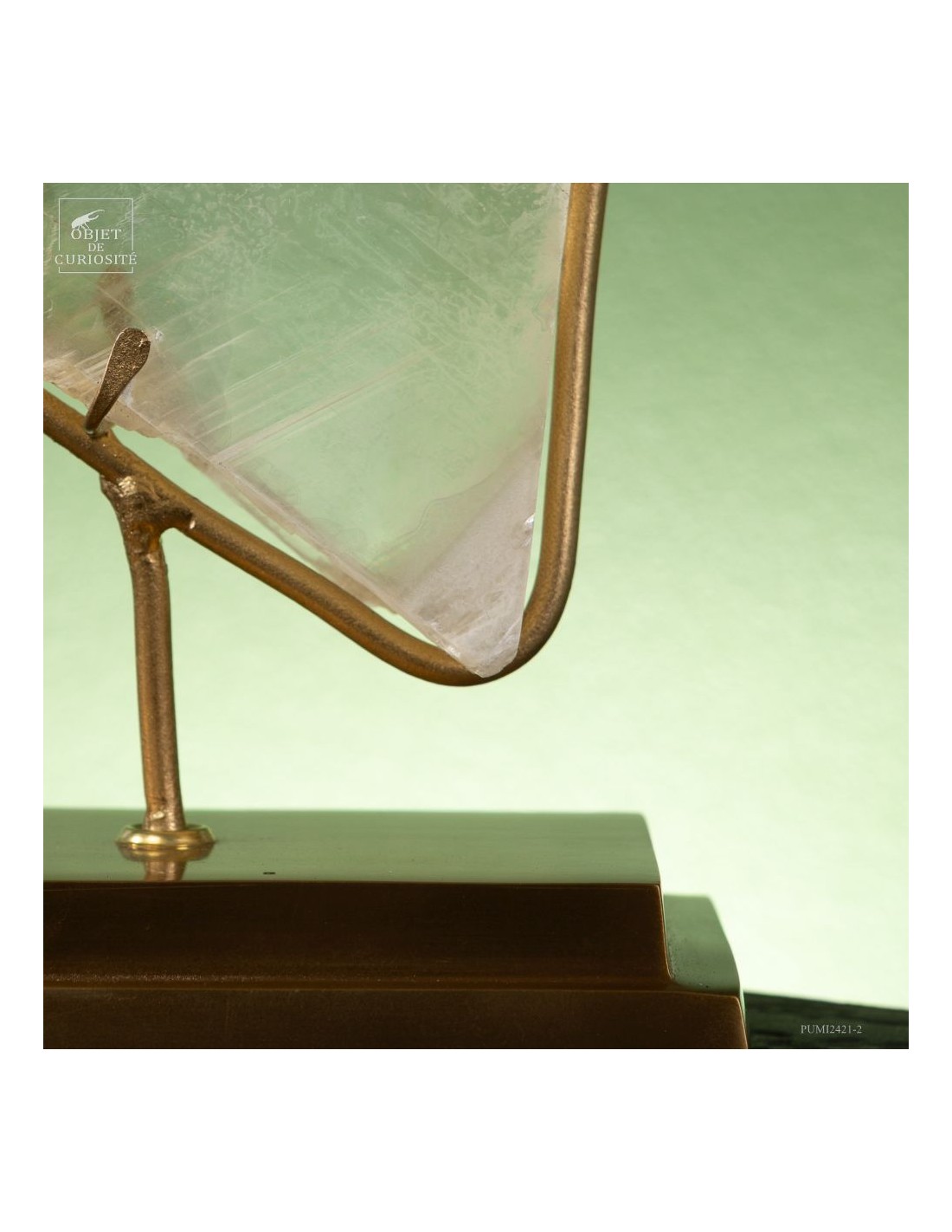 This full crystal of Gypsum is French, and comes from the village with the evocative name of Caresse in the southwest. The great transparency of this impressive crystal is the signature of the most beautiful pieces found in this mine. On brass base.