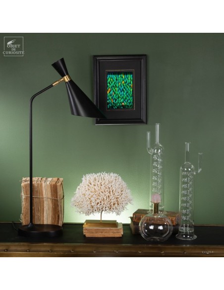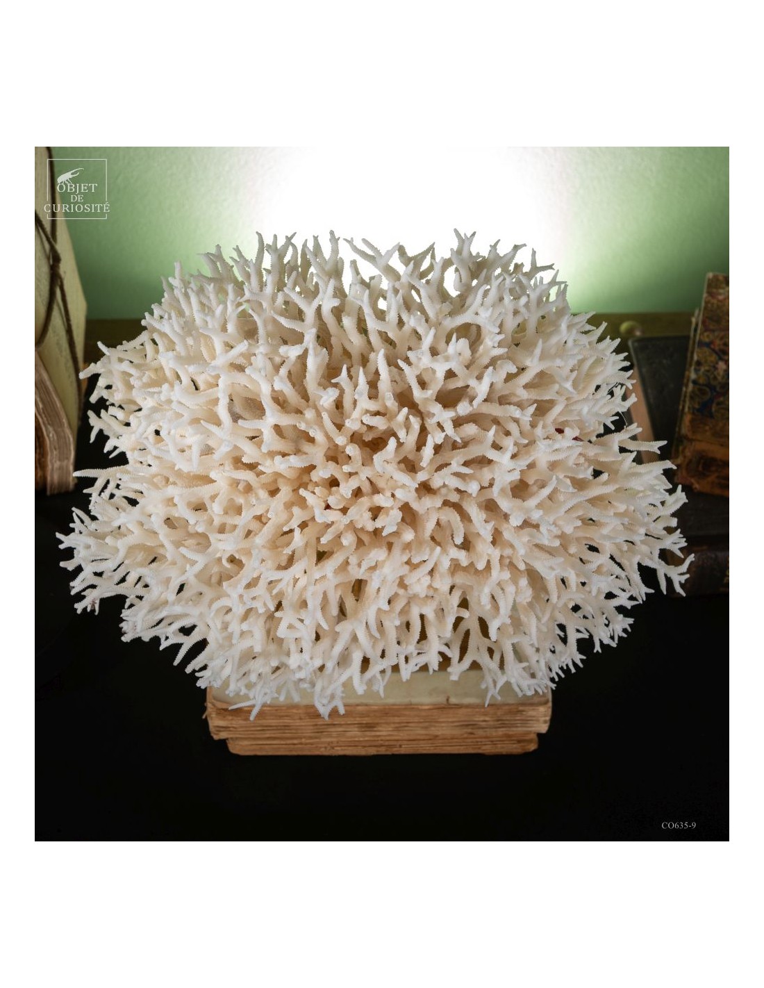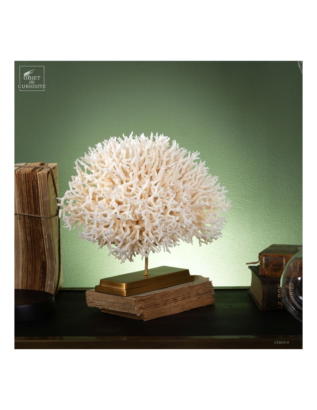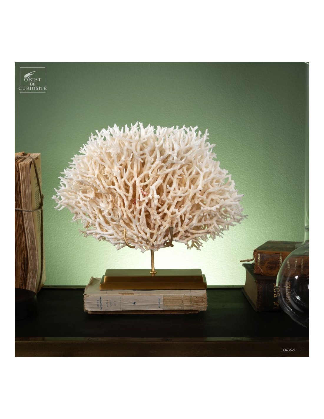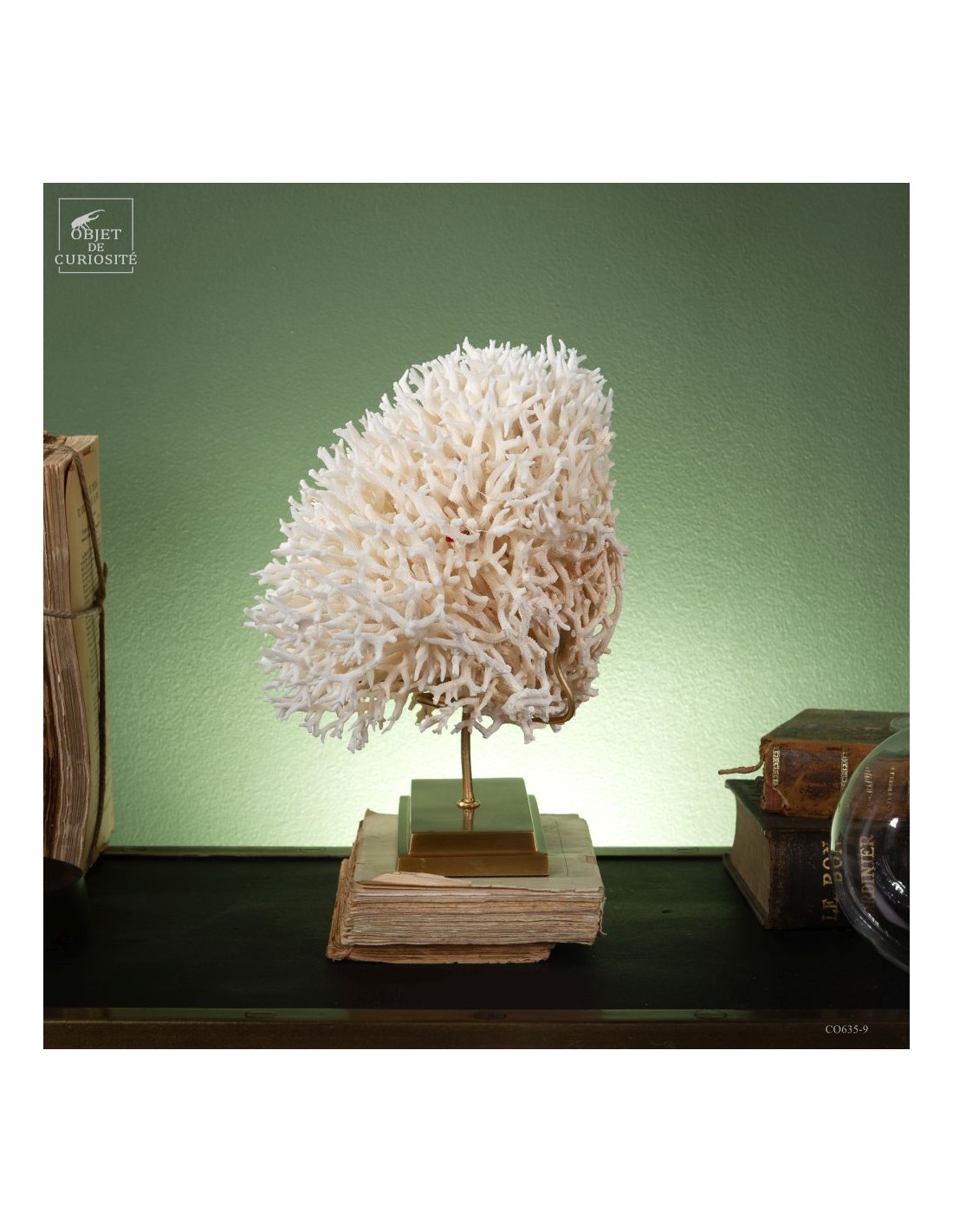 White nest coral on a brass base. This coral comes from the Salomon islands and is made of hundreds of small branches. Its scientific name: Seriatopora Hystrix. Under the water, the tiips remains white, but all the rest is showing a strong pink ( or yellow on some sub-species). This coral is delivered with its own CITES number (Convention of Washington on endangered species)
