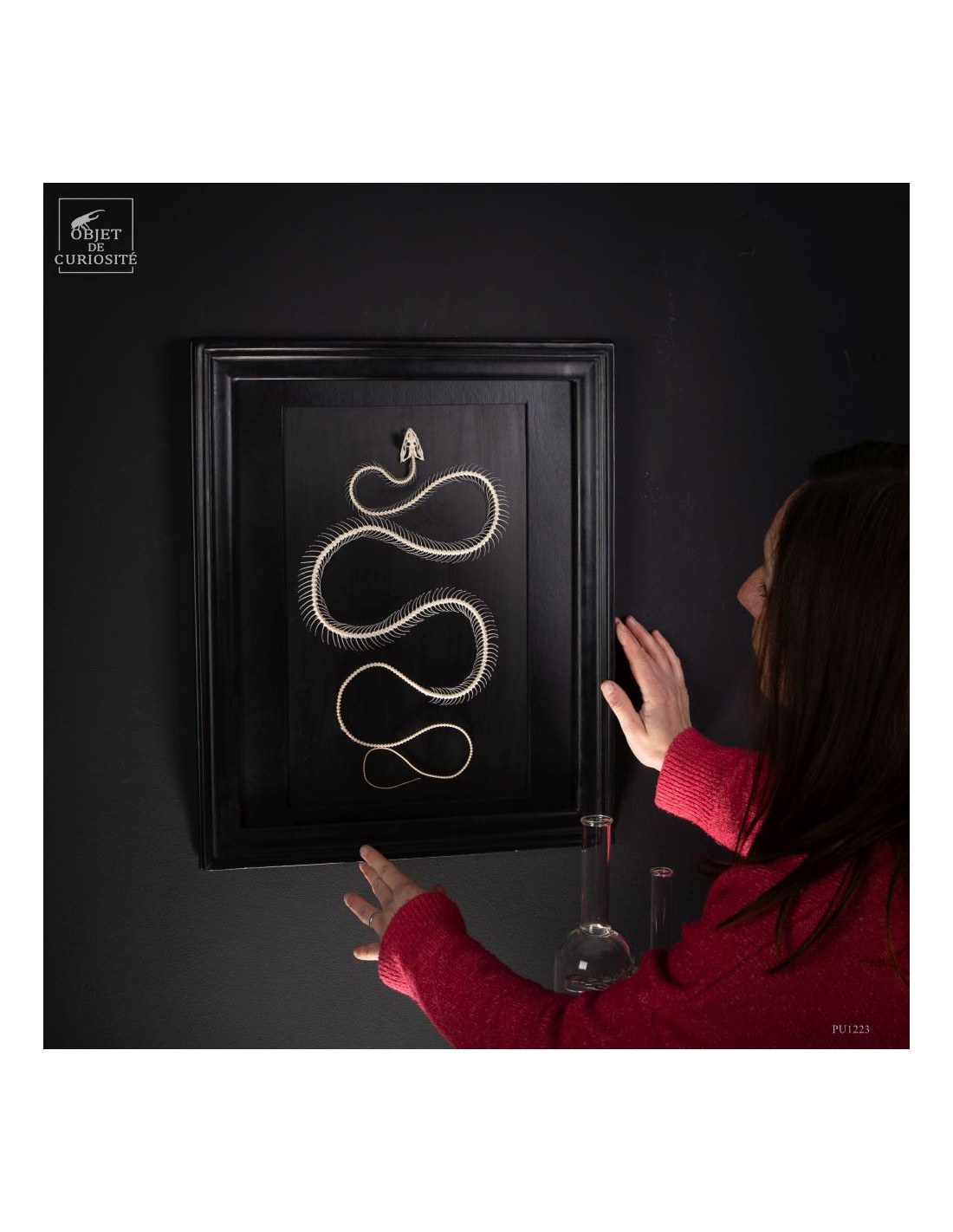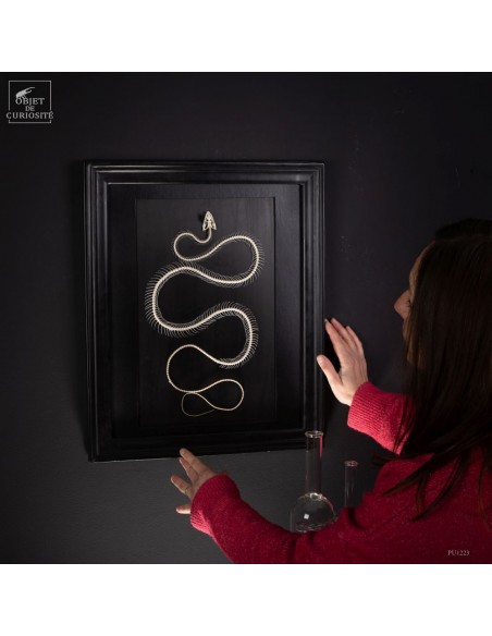 Even if it fits in a frame of 52cm high, this whip snake is still 140cm long! It is often of green color to blend in the Asian vegetation, but according to the regions it can also be yellow or even white (Thailand). His body is very thin as we can see, and his venom is enough to kill the lizards and frogs he feeds on. However, it is not very dangerous for humans. It often takes very curly positions when it waits for its prey in the trees. This perfect position in the frame is therefore almost natural for him.