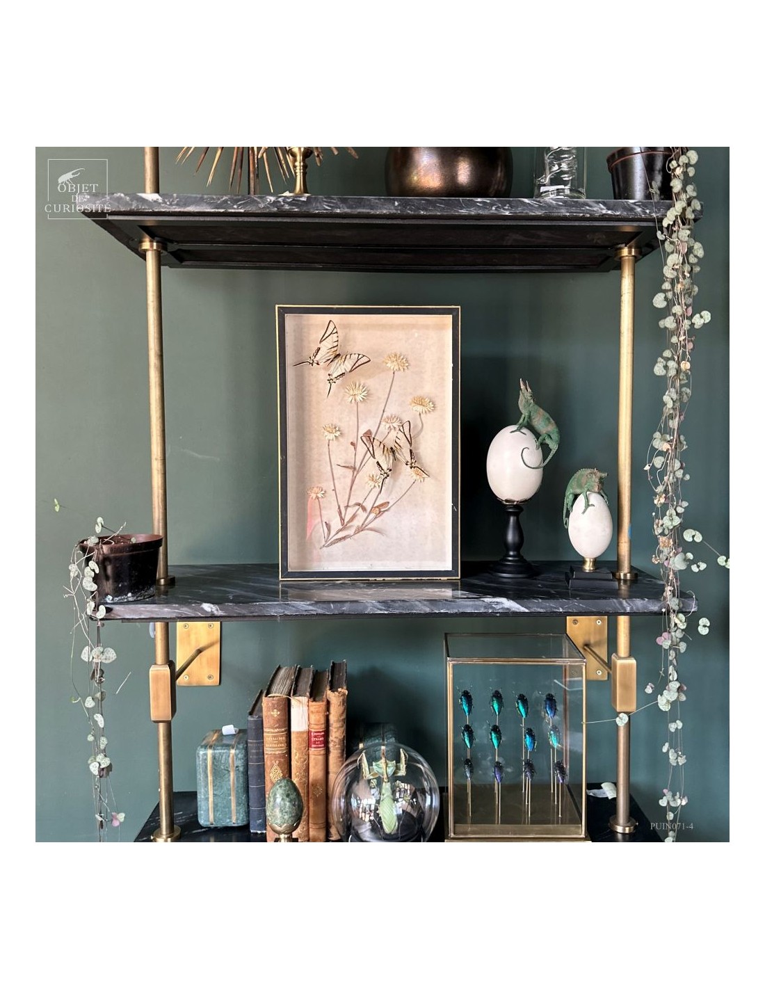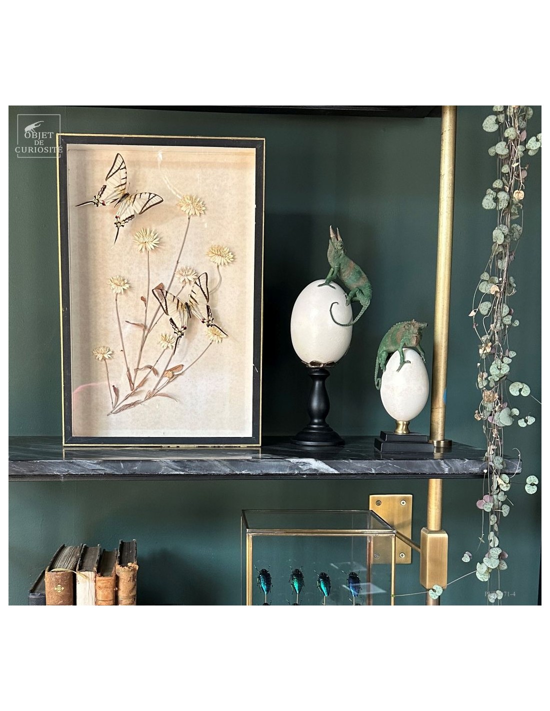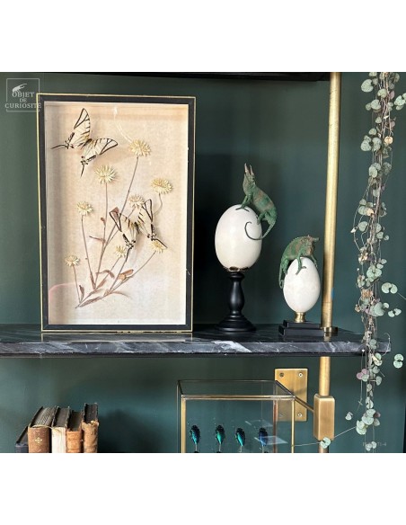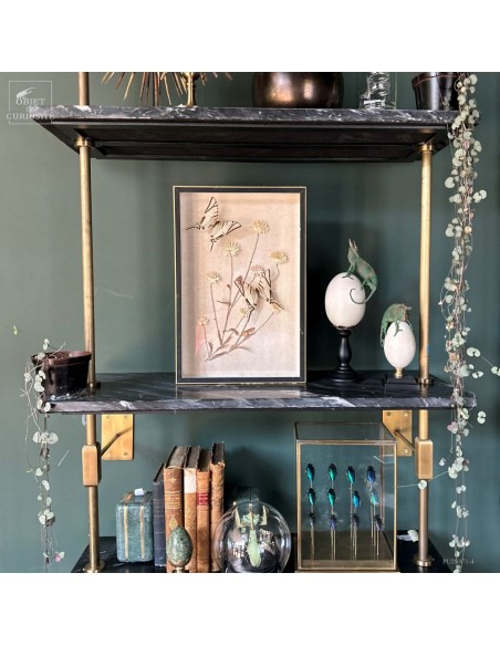 Nothing here was gathered together in nature, yet the ensemble creates an unexpected dialogue between frozen bloom and suspended flight.