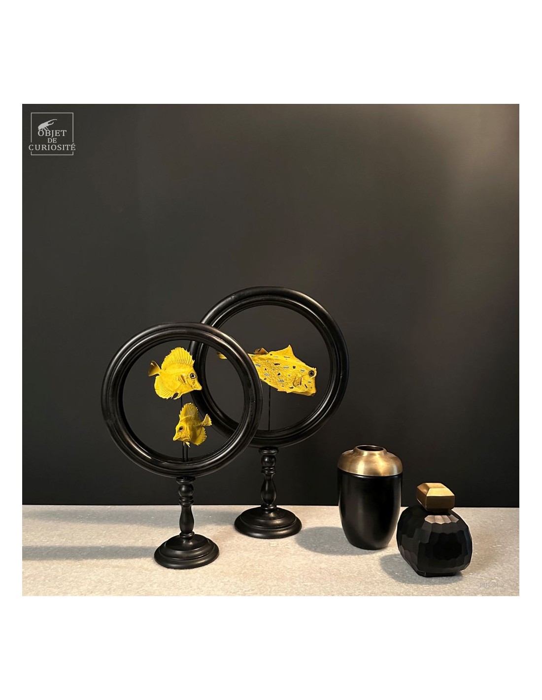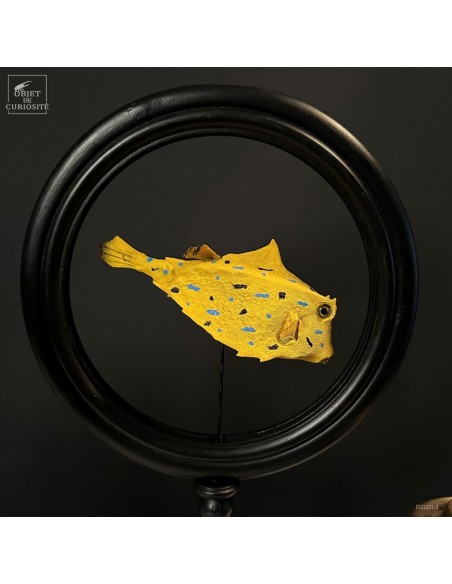 As with most taxidermied fish, the natural colour fades rapidly after death, and has been carefully restored through recoloration in order to match the tones observed under water.