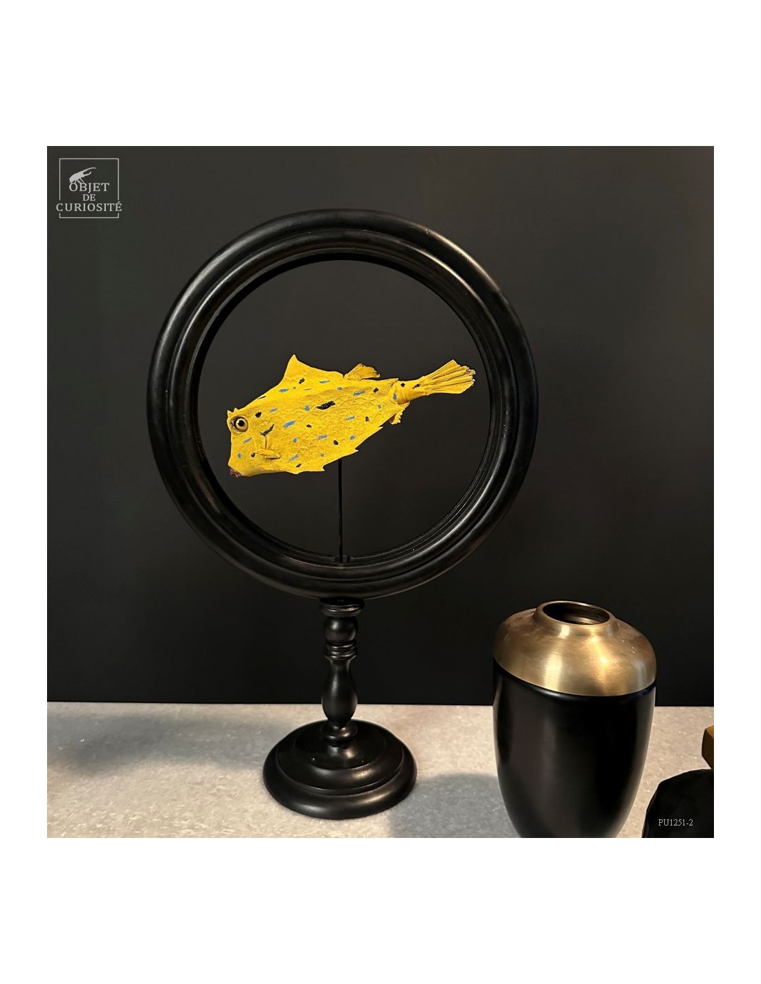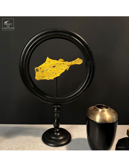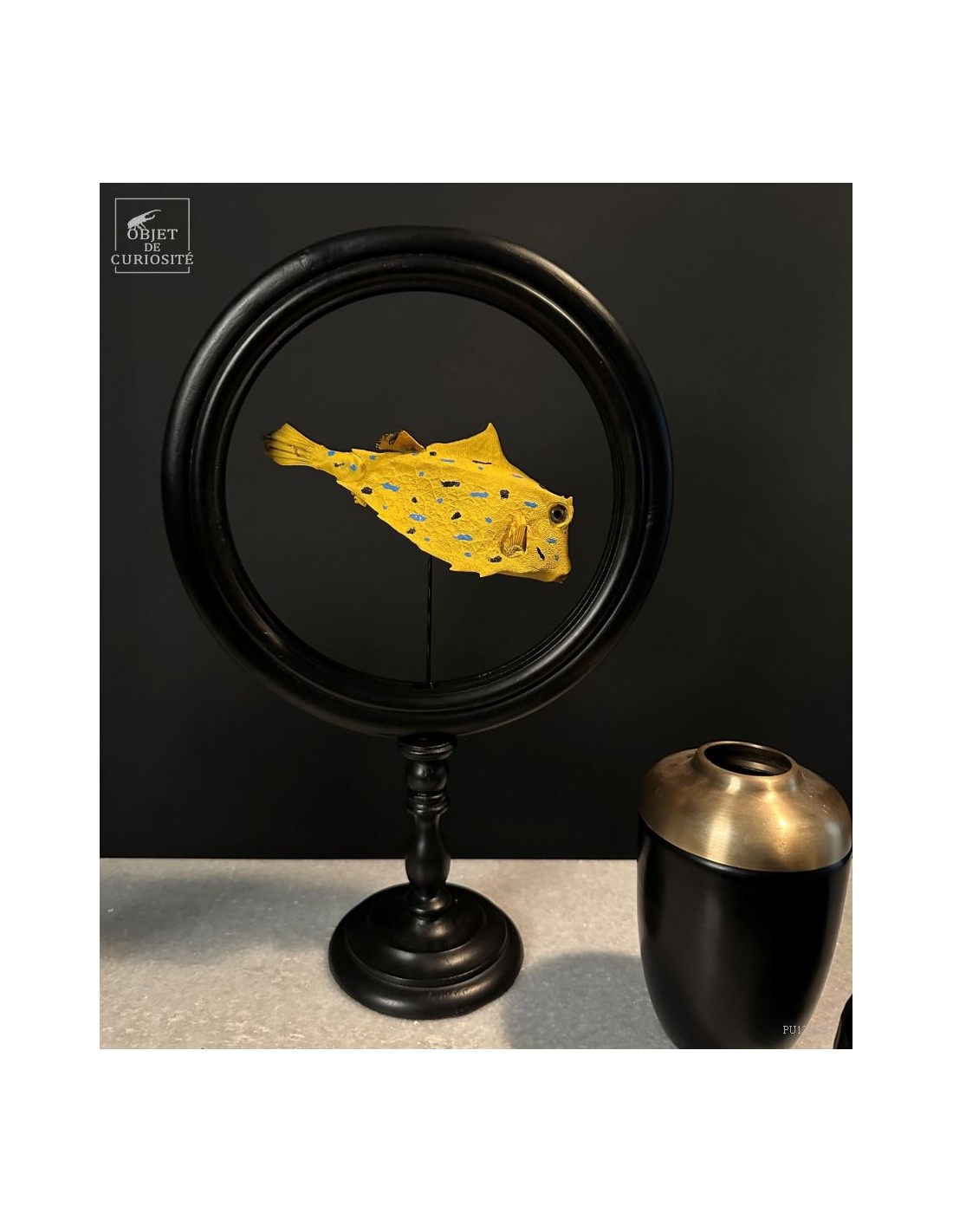 This boxfish (OSTRACION sp.) — easily recognised by its rigid, polyhedral body and its bright yellow coloration — lives in the shallow lagoon areas of tropical coral reefs.
