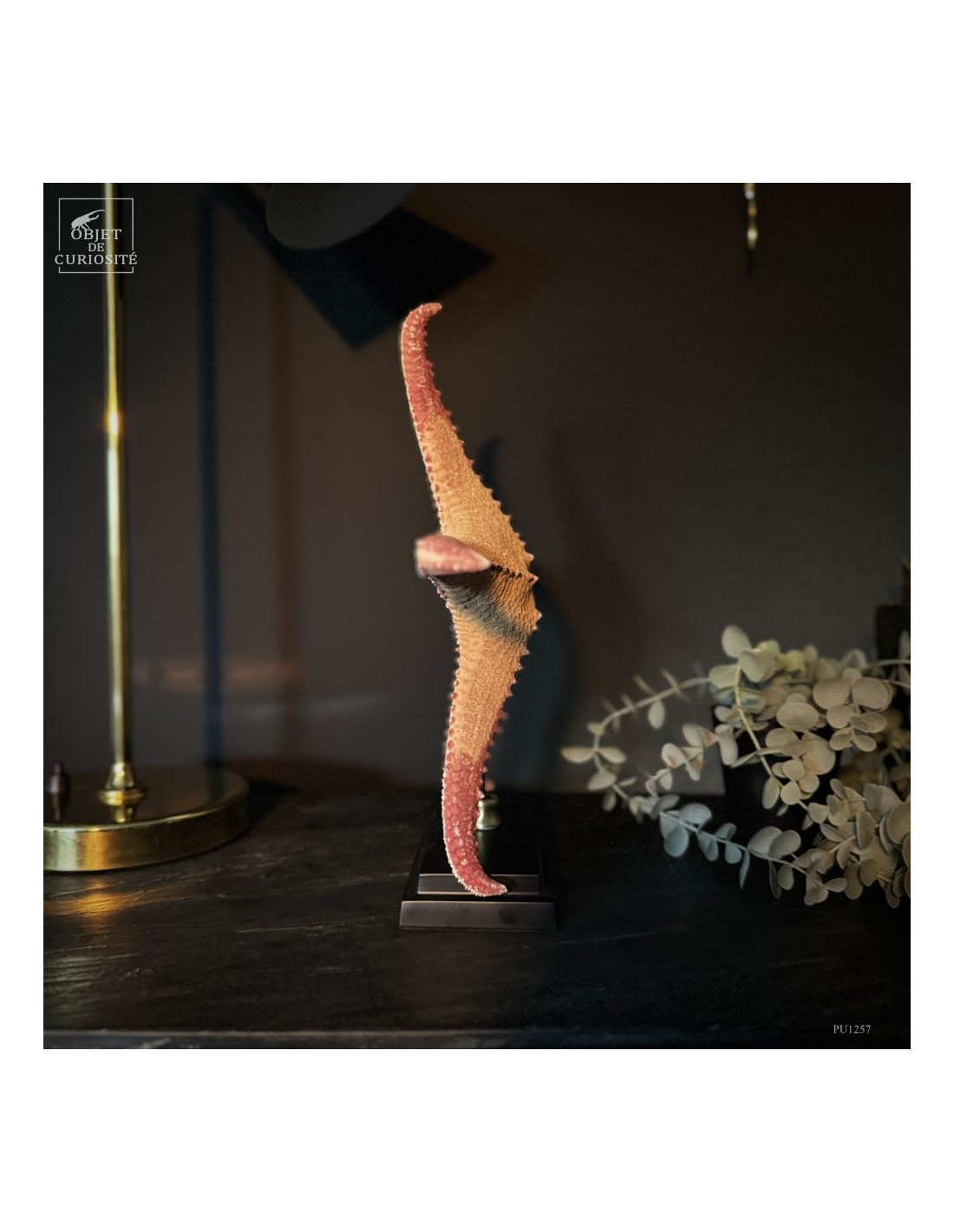 Mounted on a black metal base, this specimen becomes a true marine curiosity echoing the tradition of cabinets of curiosities that, since the 18th century, have collected nature’s most extraordinary forms.