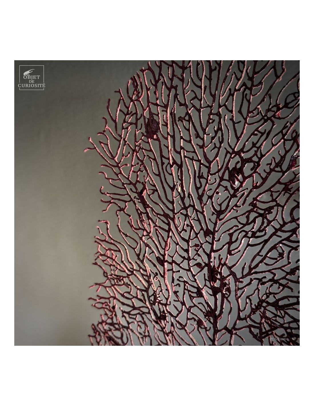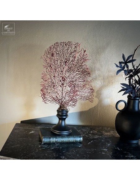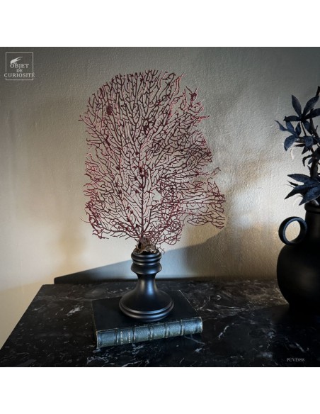 This red gorgonian (ACABARIA BISERIALIS) comes from the tropical waters of the Indian Ocean, where it anchors itself between 20 and 100 meters deep. At such depths, red light no longer penetrates, and its true color can only be seen under artificial light.