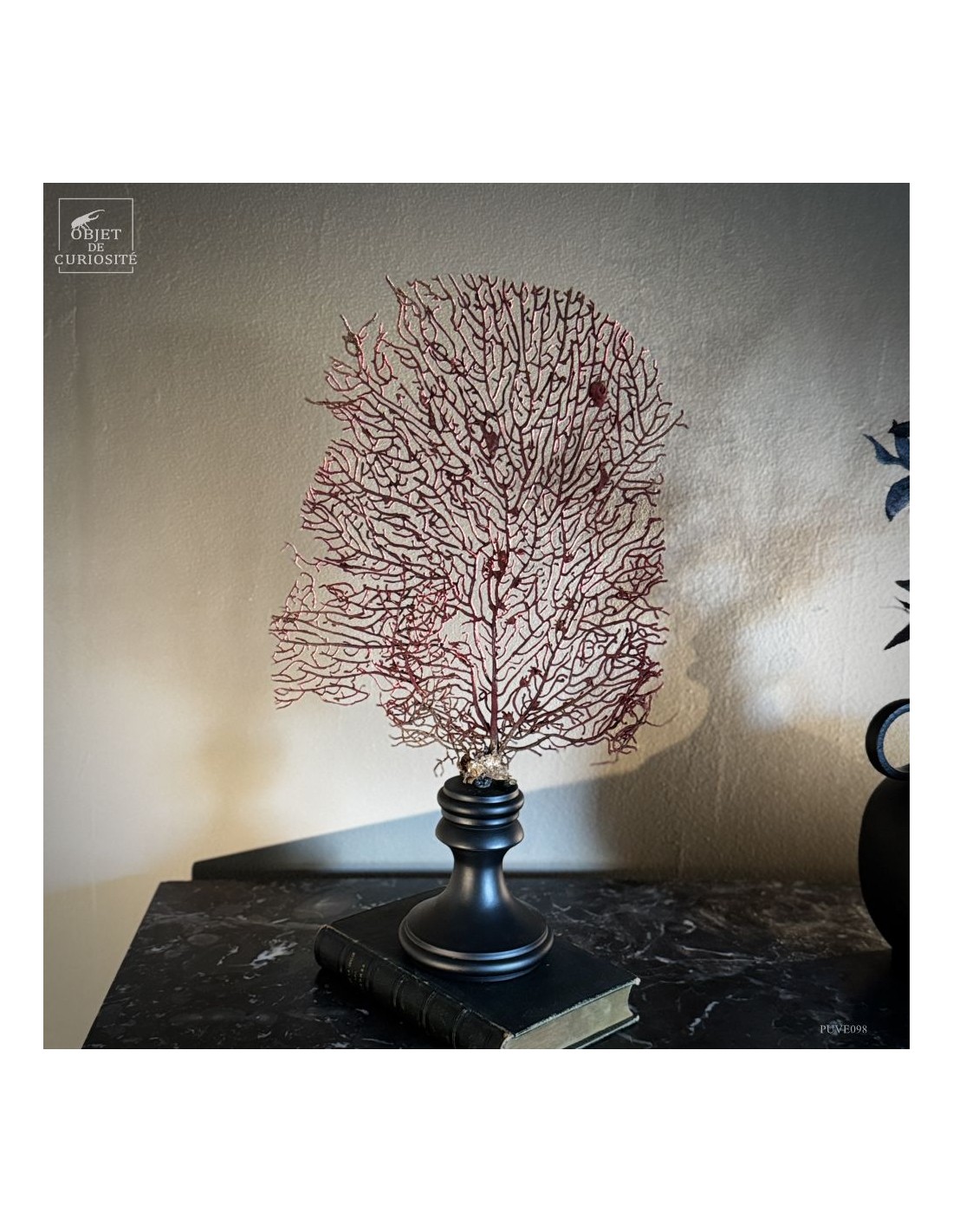 Red gorgonian ACABARIA BISERIALIS on black wooden base