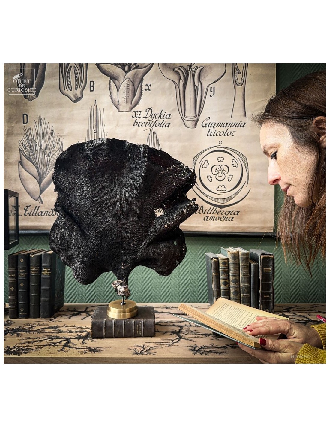 Its soft and delicate appearance is deceptive—its internal structure is remarkably sturdy, proving that nature masterfully combines aesthetics and engineering. A true lesson in bio-inspired design. A rare curiosity only known by some Indonesian divers. This sponge has been carefully dried and mounted by hand on a brass base.