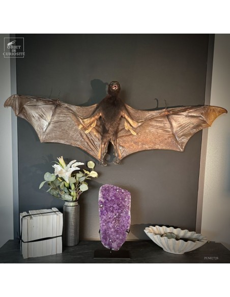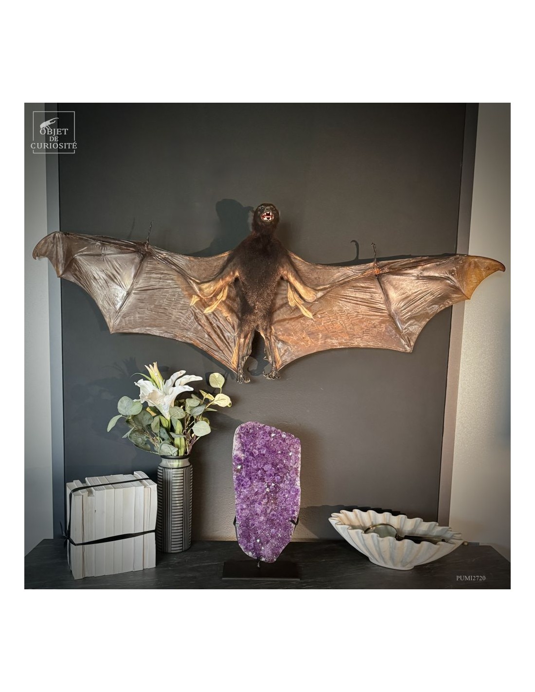 Les cristaux d’améthyste, denses et bien formés, présentent une teinte pourpre soutenue, caractéristique des formations brésiliennes. Leur éclat, à la fois vif et profond, varie selon l’angle de la lumière.