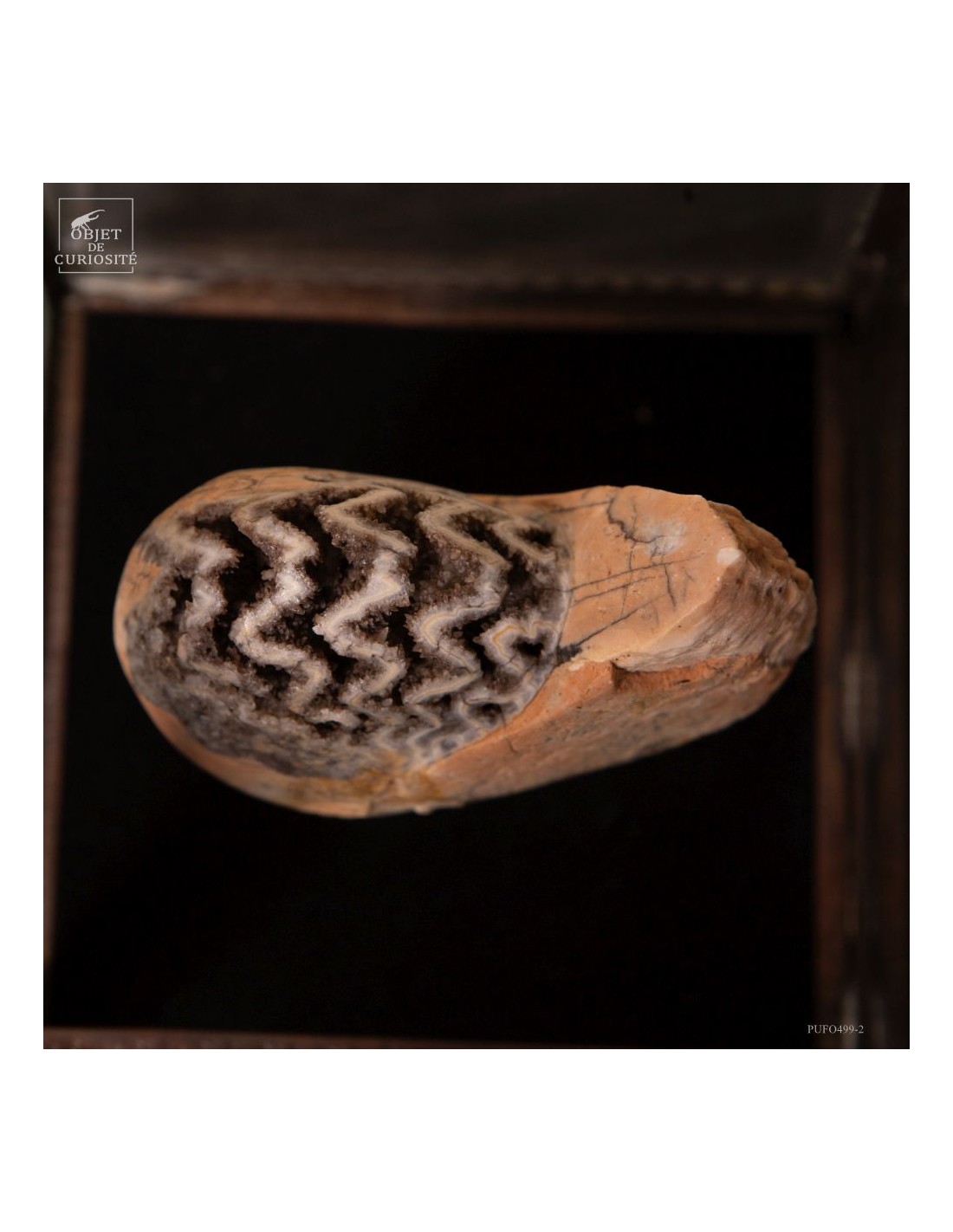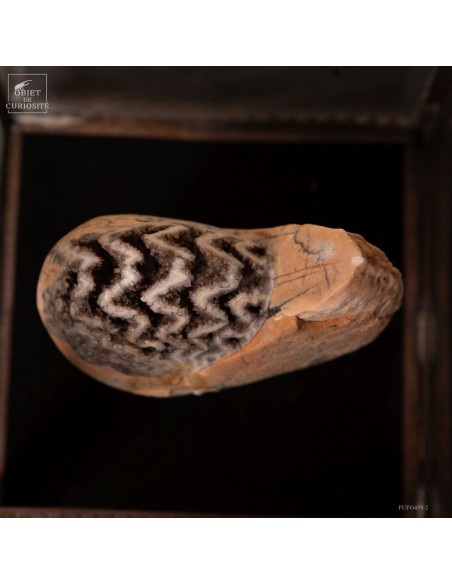 Une pièce discrète, mais fascinante : entre fossile scientifique et bijou minéral, elle condense des millions d’années d’histoire dans un écrin de curiosité.