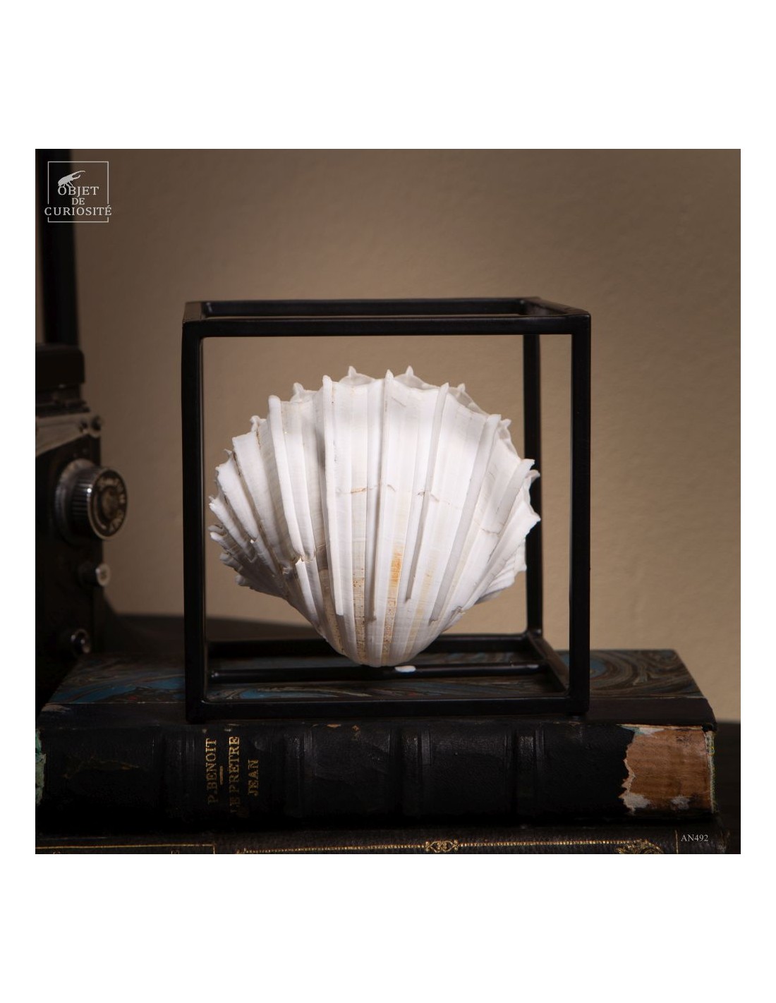 Une coquille sortie du sable, devenue curiosité naturelle et objet de cabinet de curiosités.