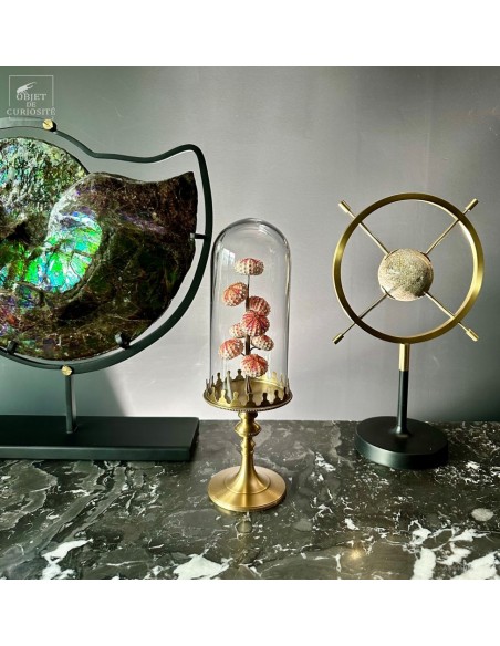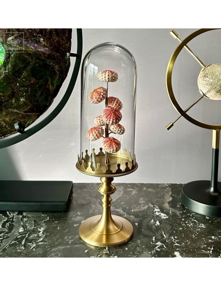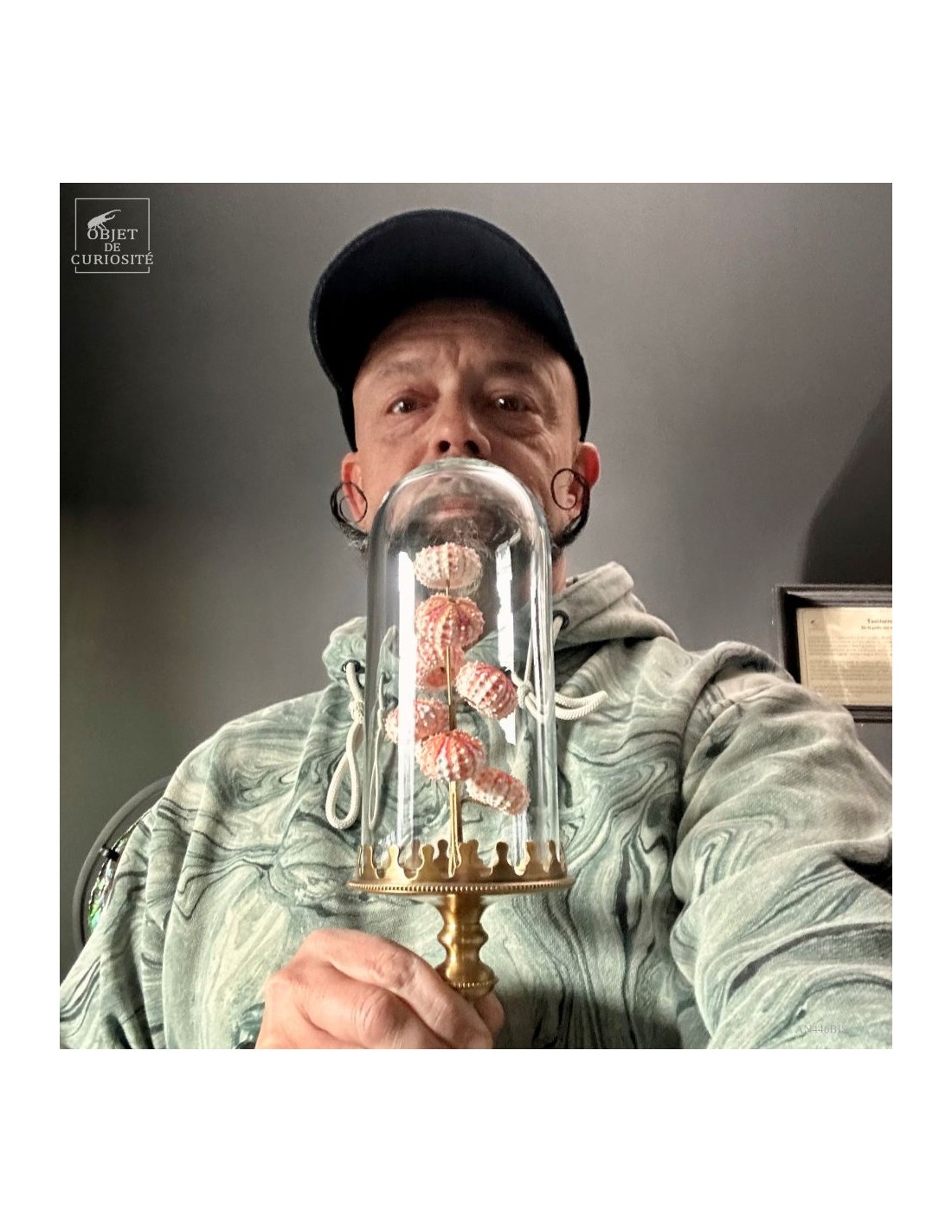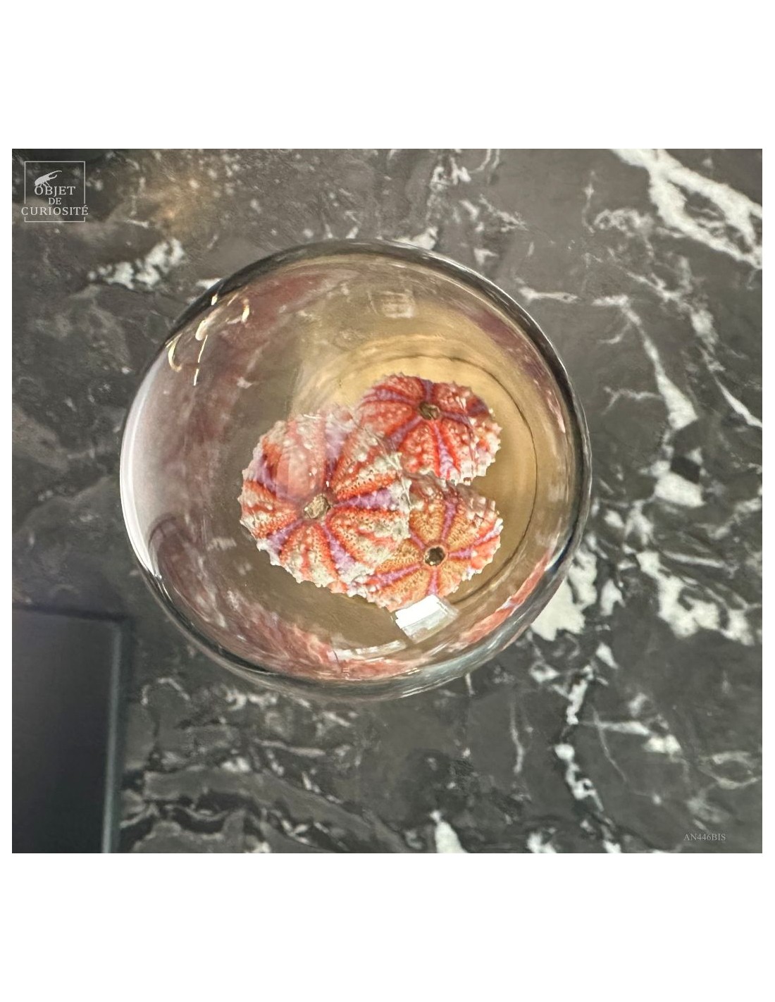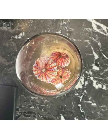 Ces petites "coquilles" d'oursins -que l'on appel des tests- sont tellement colorés que l'on dirait qu'ils sont peints. Pourtant, sous l'eau en Indonésie vous ne pourriez approcher de cet oursin. Tout d'abord car ils vivent à très grande profondeur (de -100 à -500 mètres), et ensuite parce qu'il a de grands piquants (les radioles), qui sont curieusement rouge et blanc, un peu comme les bandes colorées de son test. Et c'est plutôt curieux car il vit dans le noir des profondeurs abyssales... Une élégance juste pour lui!