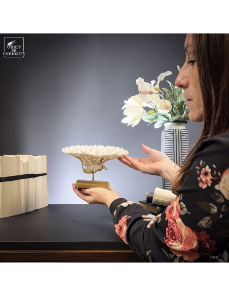 Présenté sur une base en laiton, ce squelette marin se transforme en véritable sculpture naturelle.