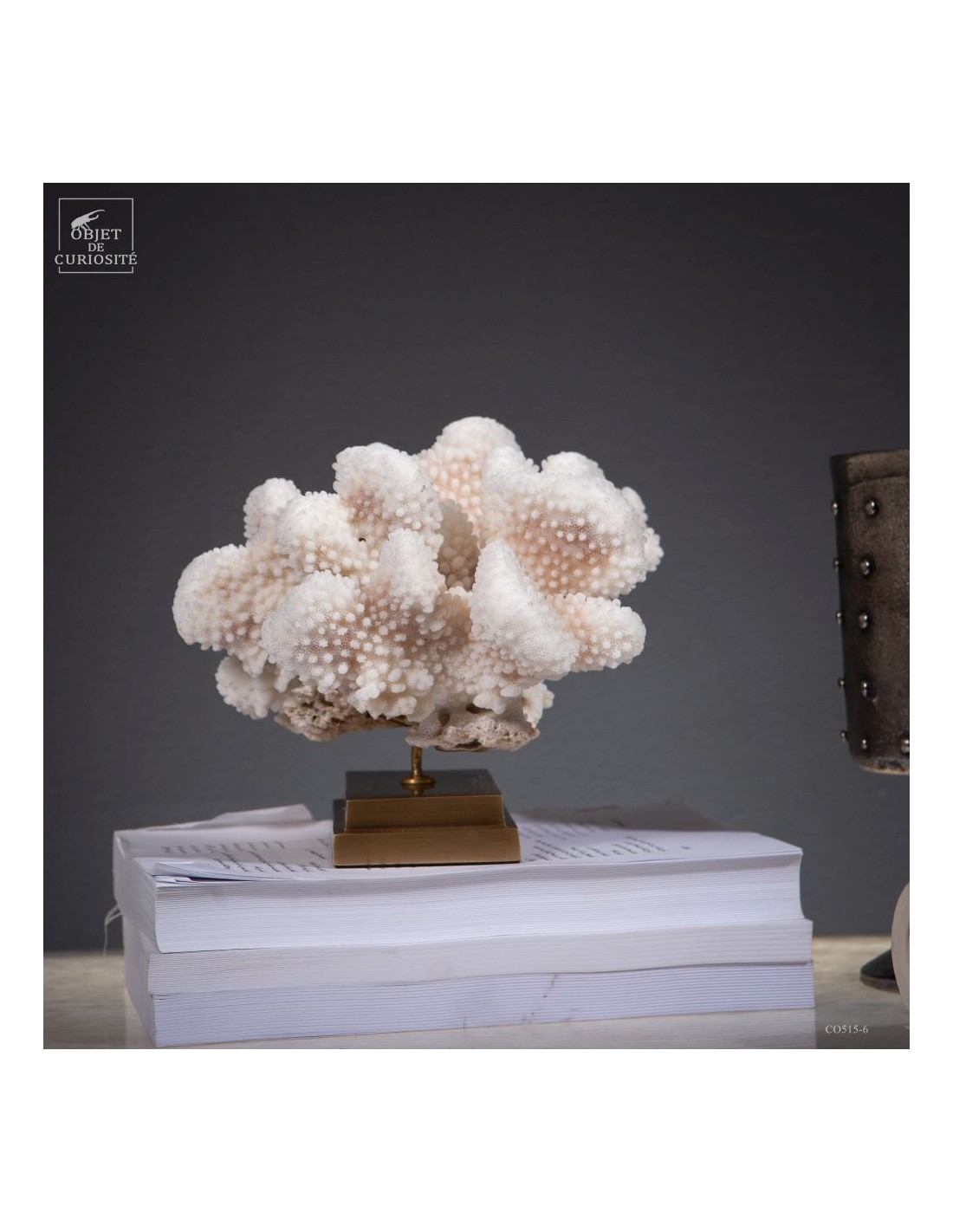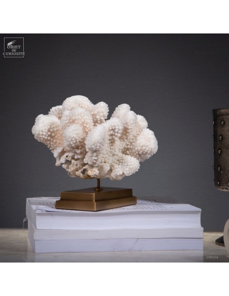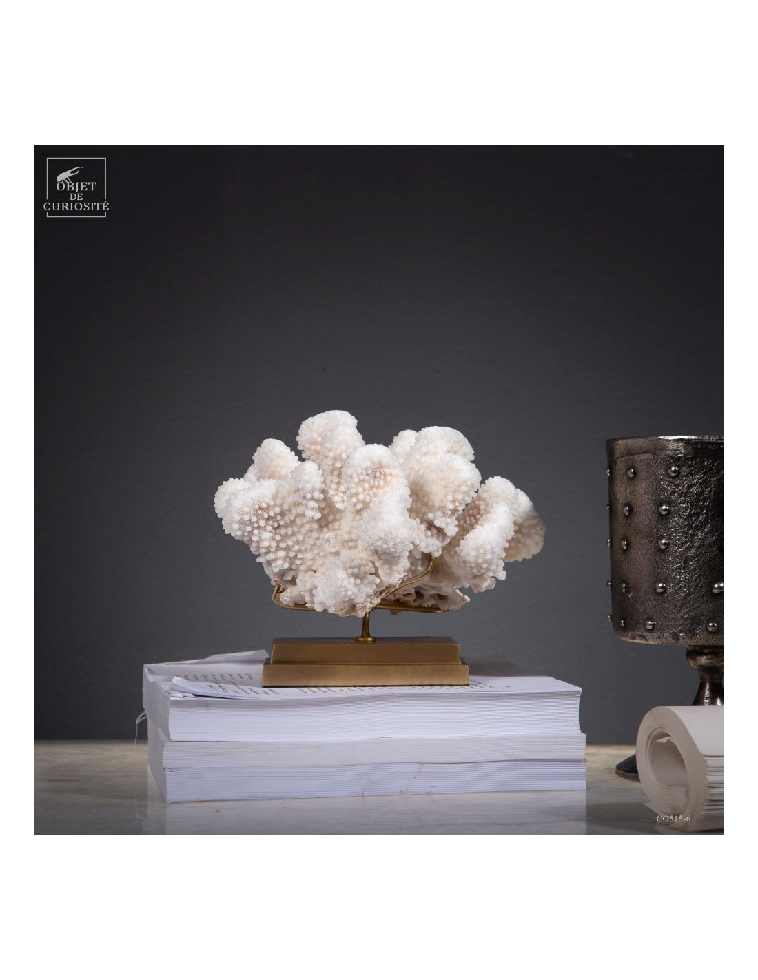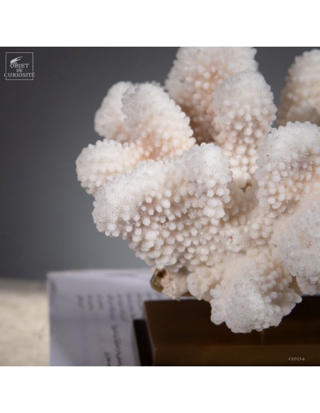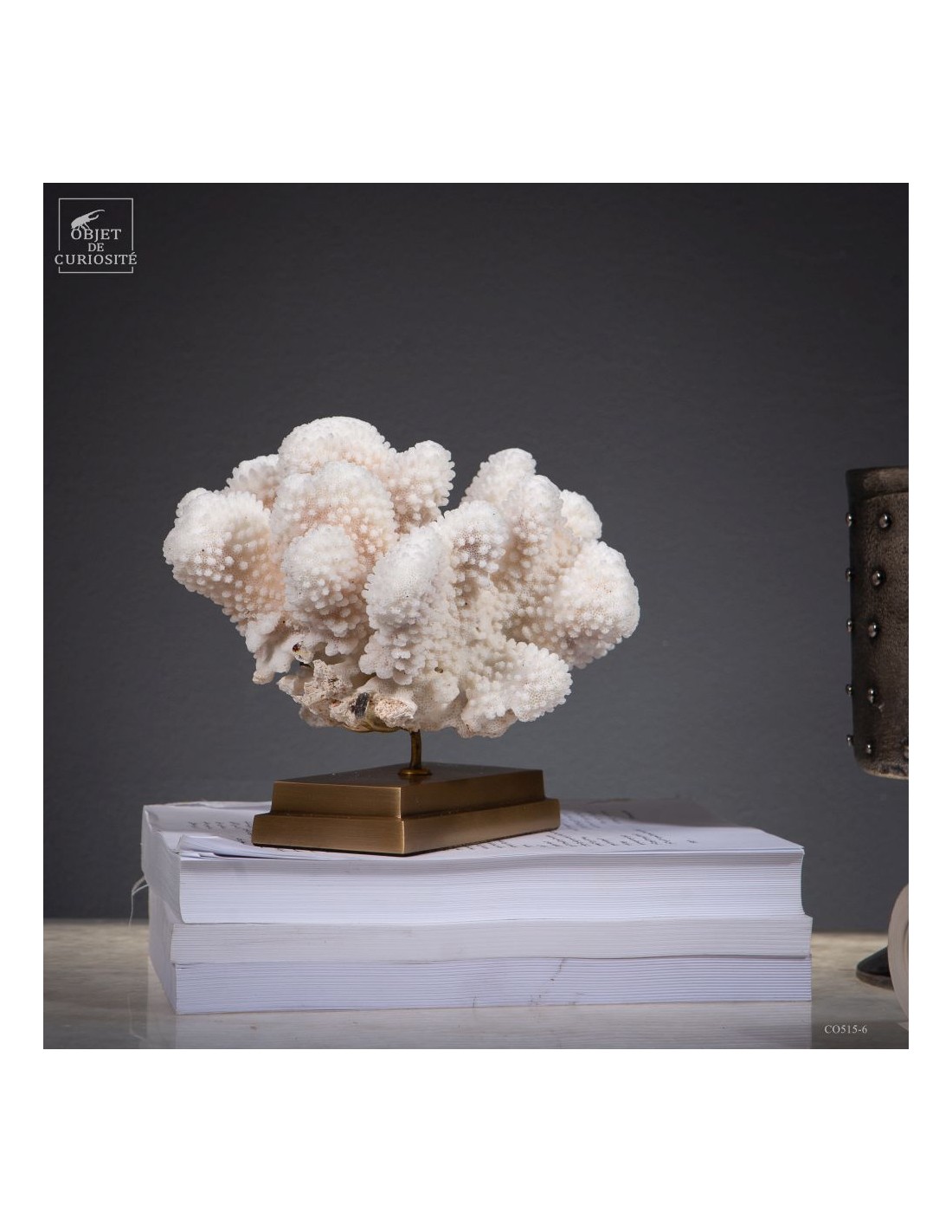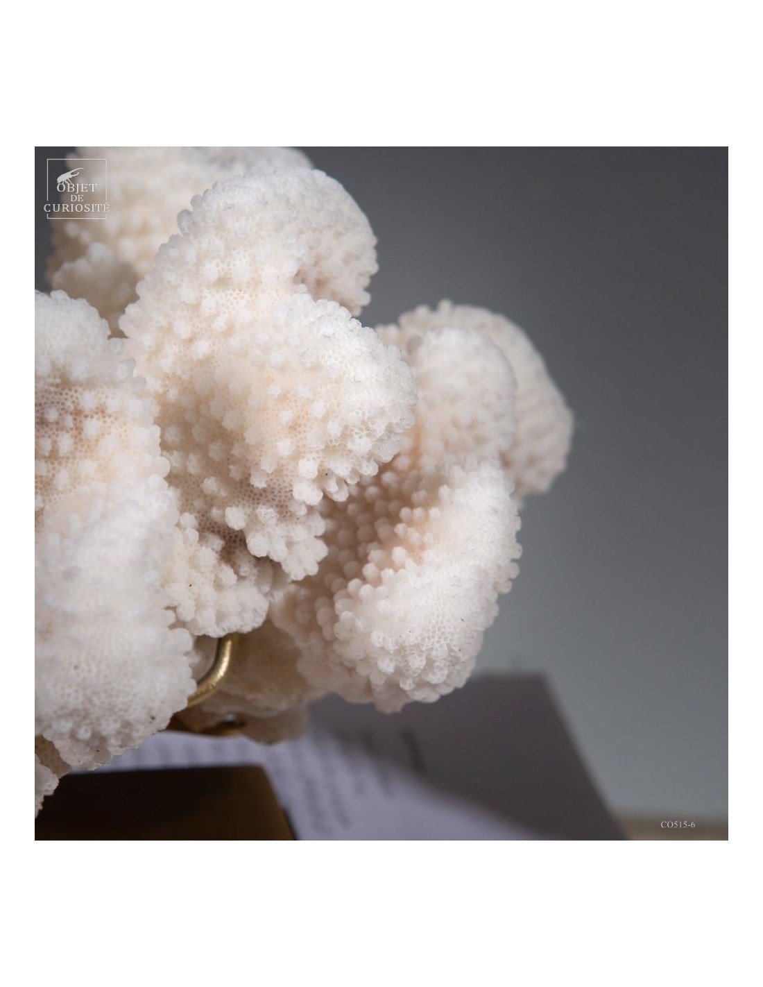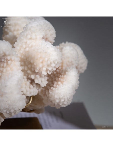 Présenté sur une base en laiton, ce corail a toute sa place dans un cabinet de curiosités.