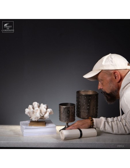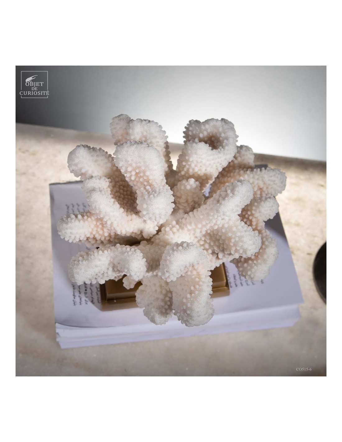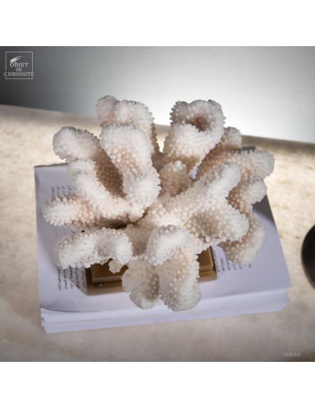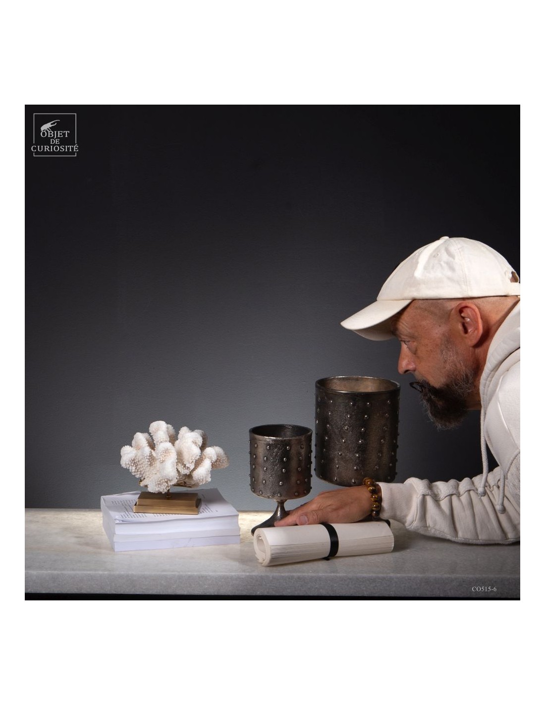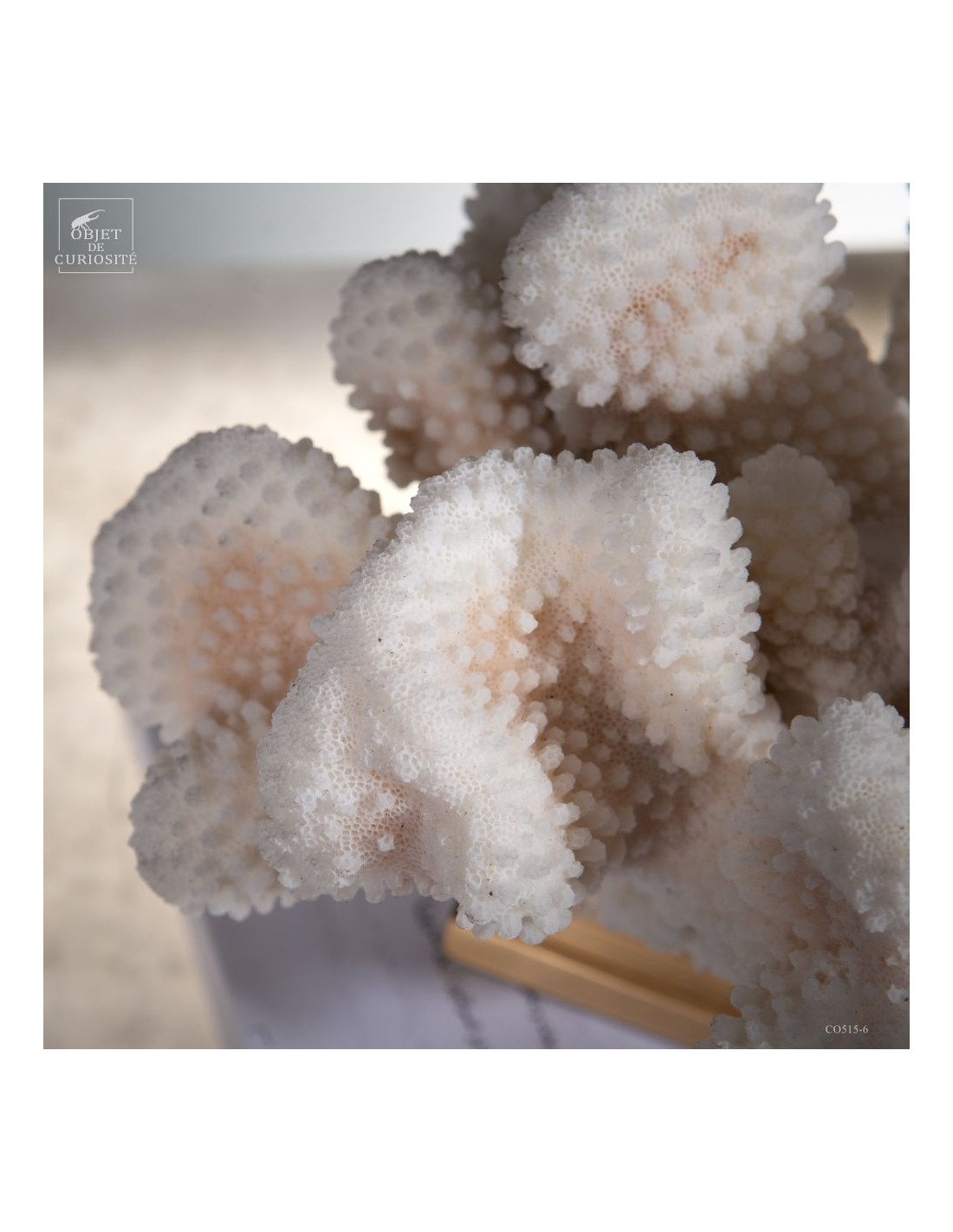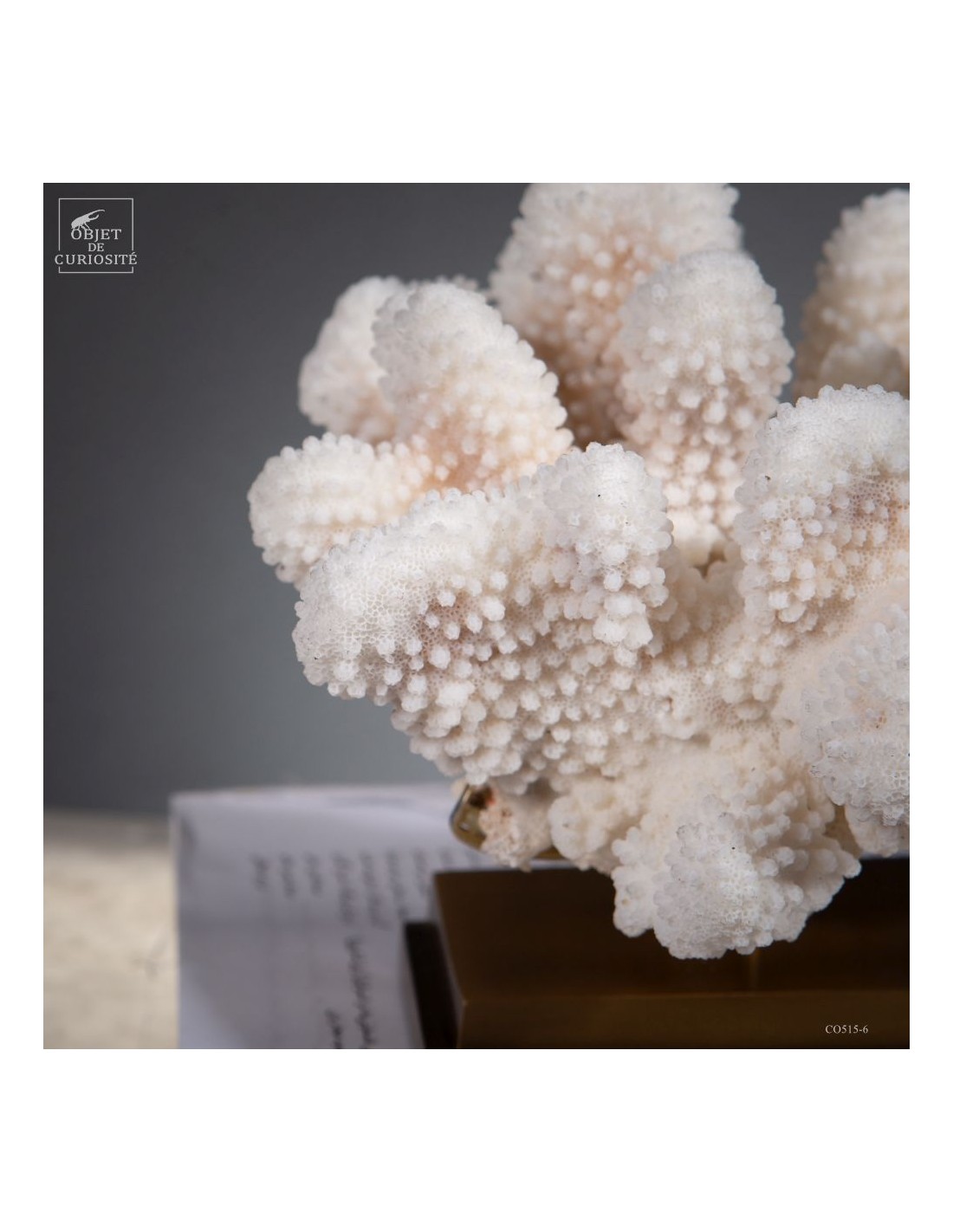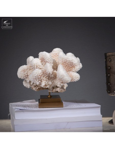 Présenté sur une base en laiton, ce corail a toute sa place dans un cabinet de curiosités.