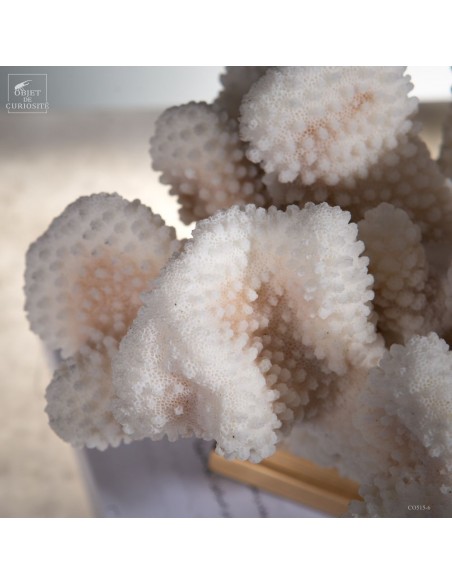 Privé de ses polypes, il ne reste que son squelette minéralisé, d’un blanc éclatant, qui dévoile toute la complexité de sa structure.