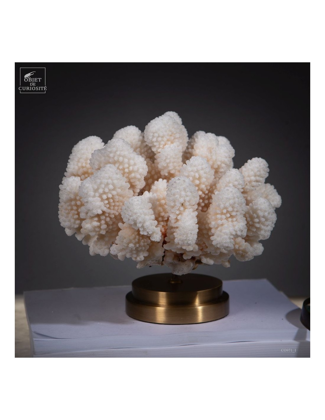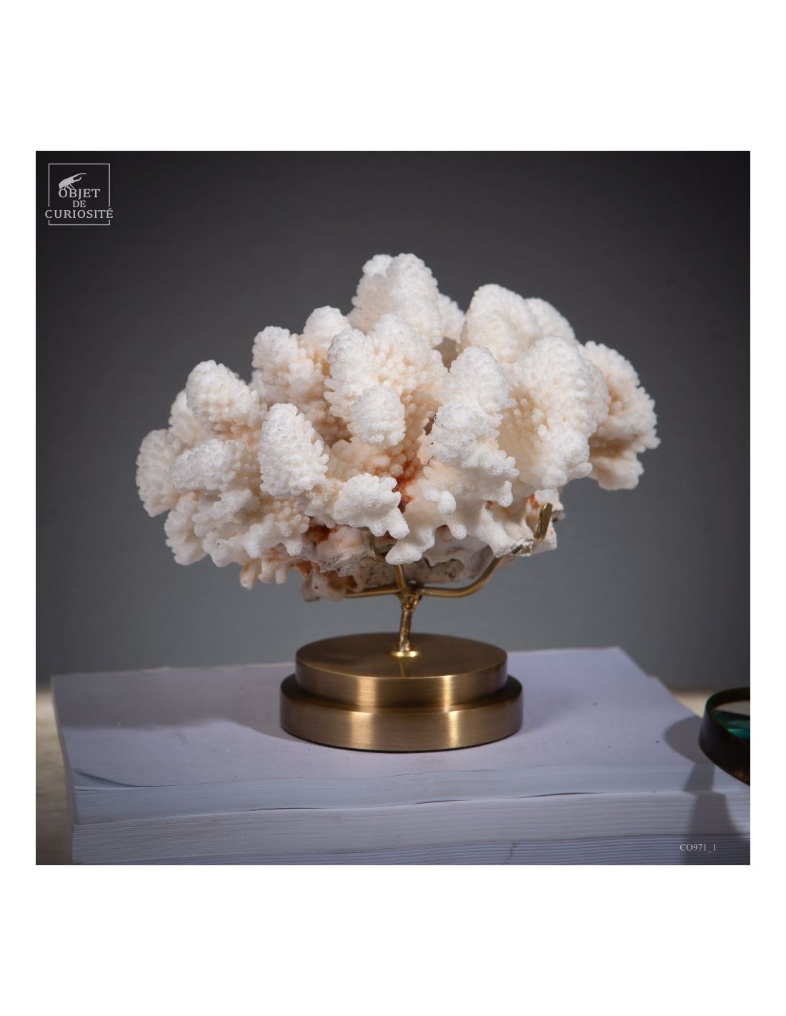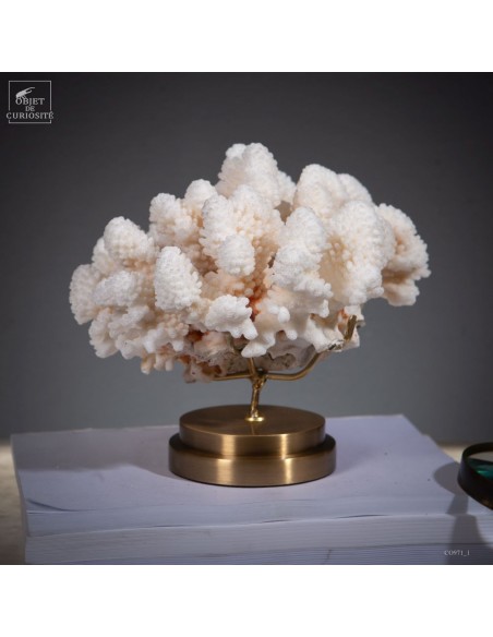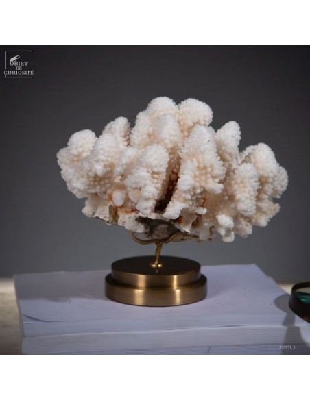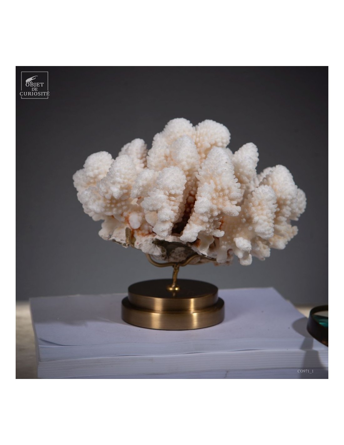 Présenté sur une base en laiton, ce corail a toute sa place dans un cabinet de curiosités.