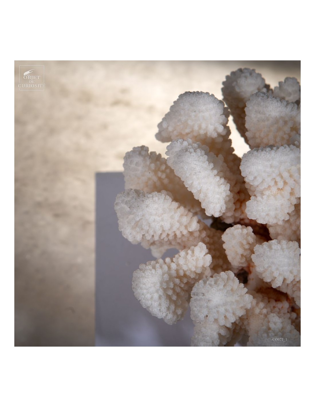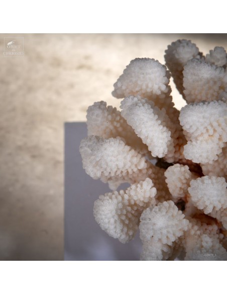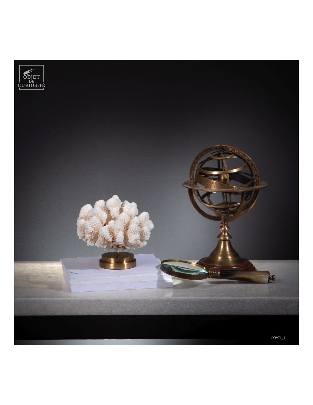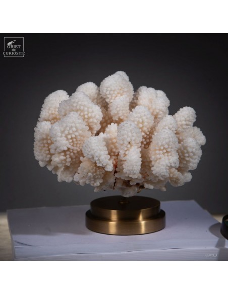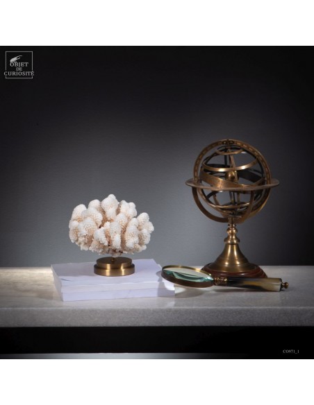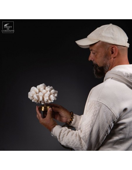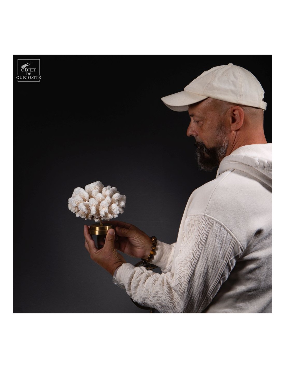 Présenté sur une base en laiton, ce corail a toute sa place dans un cabinet de curiosités.