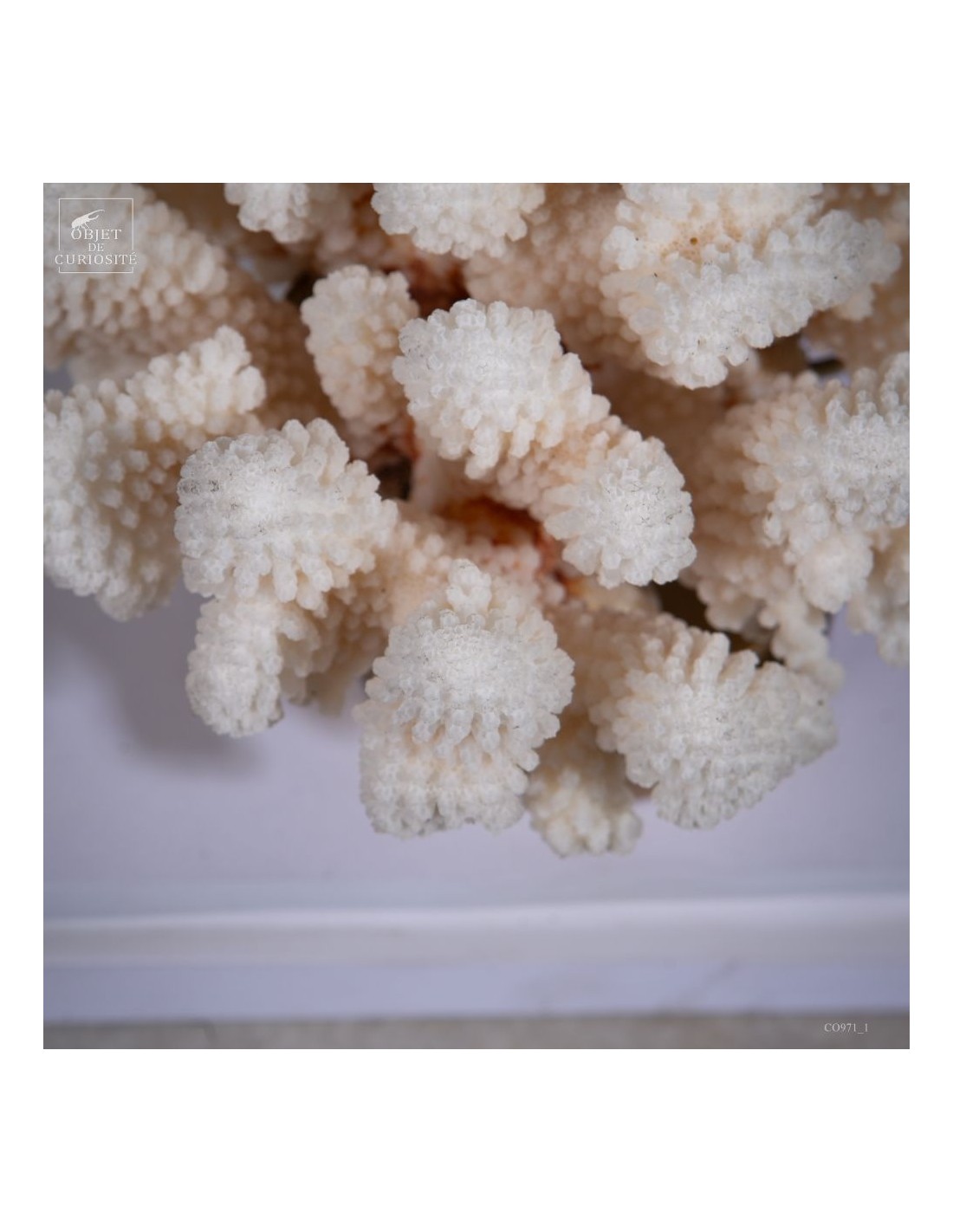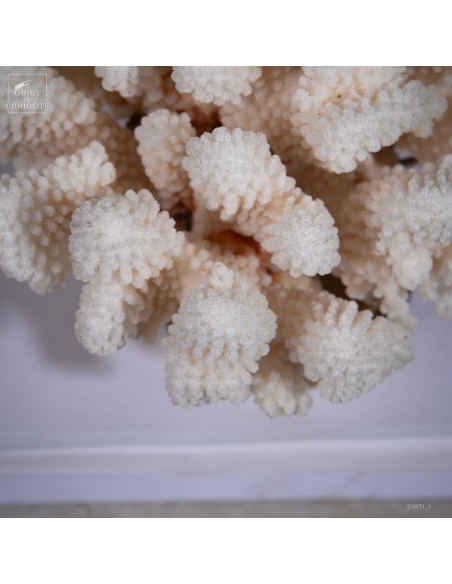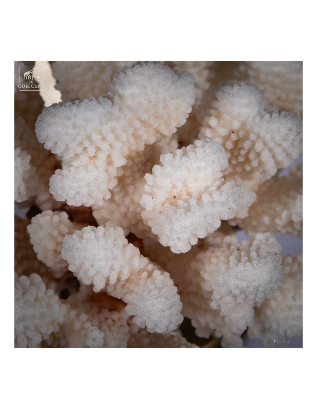 Privé de ses polypes, il ne reste que son squelette minéralisé, d’un blanc éclatant, qui dévoile la densité et la complexité de sa structure.