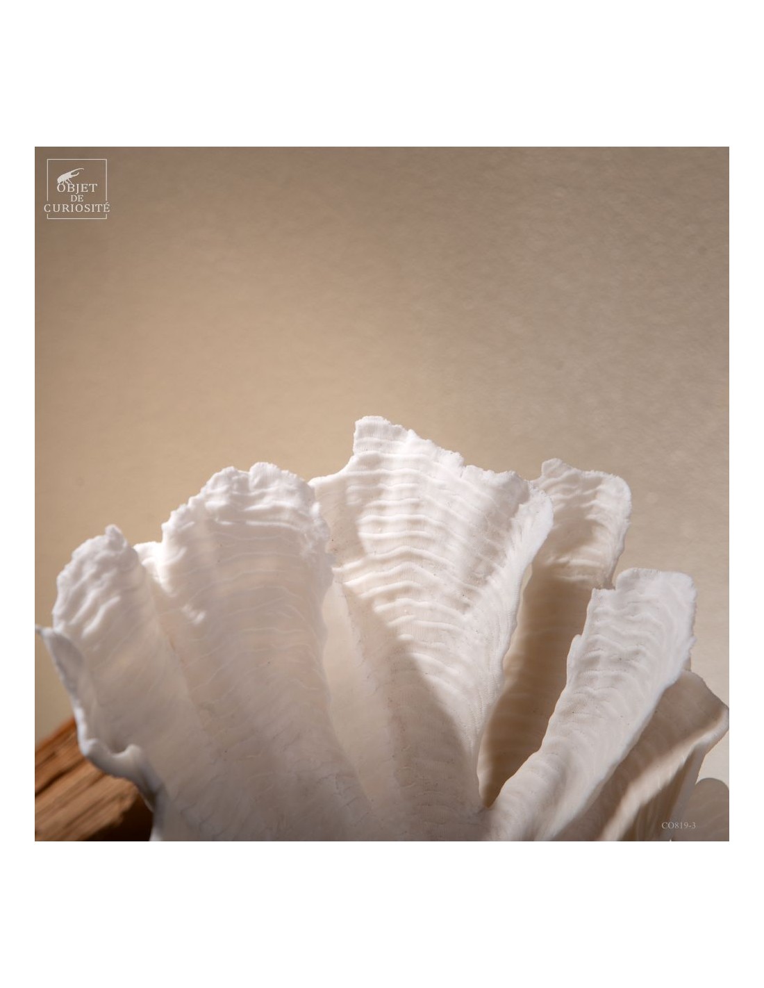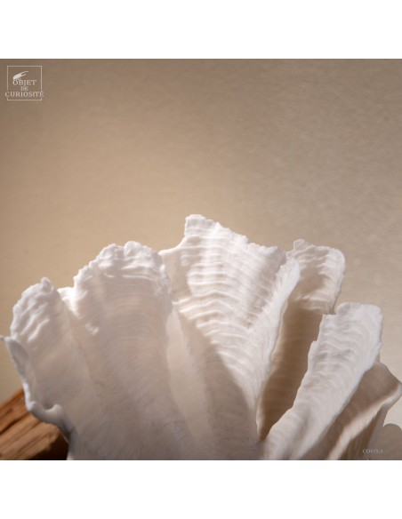PACHYSERIS RUGOSA est un corail originaire des Îles Salomon. Sa surface rugueuse et ses lames ondulées composent des reliefs sinueux qui rappellent parfois un paysage miniature de rizières en terrasses. Ce spécimen en forme de branche met en évidence cette architecture naturelle singulière.