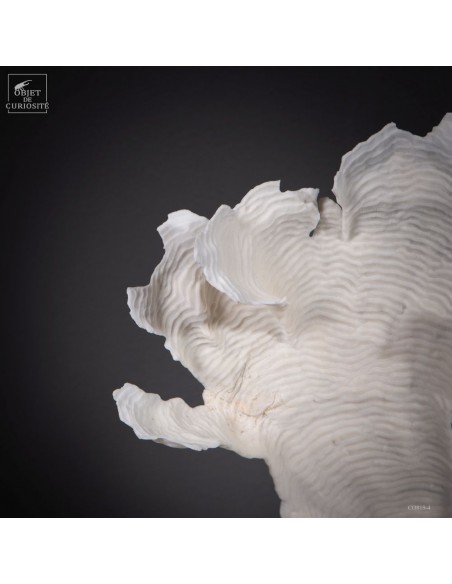 PACHYSERIS RUGOSA est un corail originaire des Îles Salomon. Sa surface rugueuse et ses lames ondulées composent des reliefs sinueux qui rappellent parfois un paysage miniature de rizières en terrasses. Ce spécimen en forme de branche met en évidence cette architecture naturelle singulière.