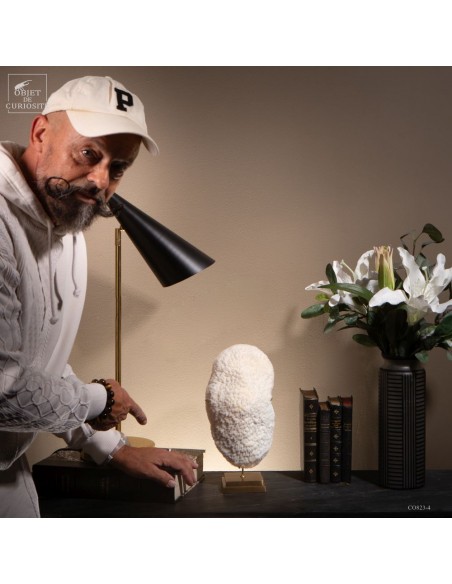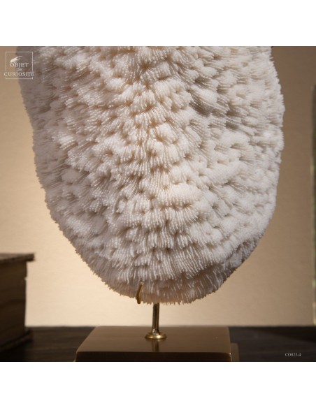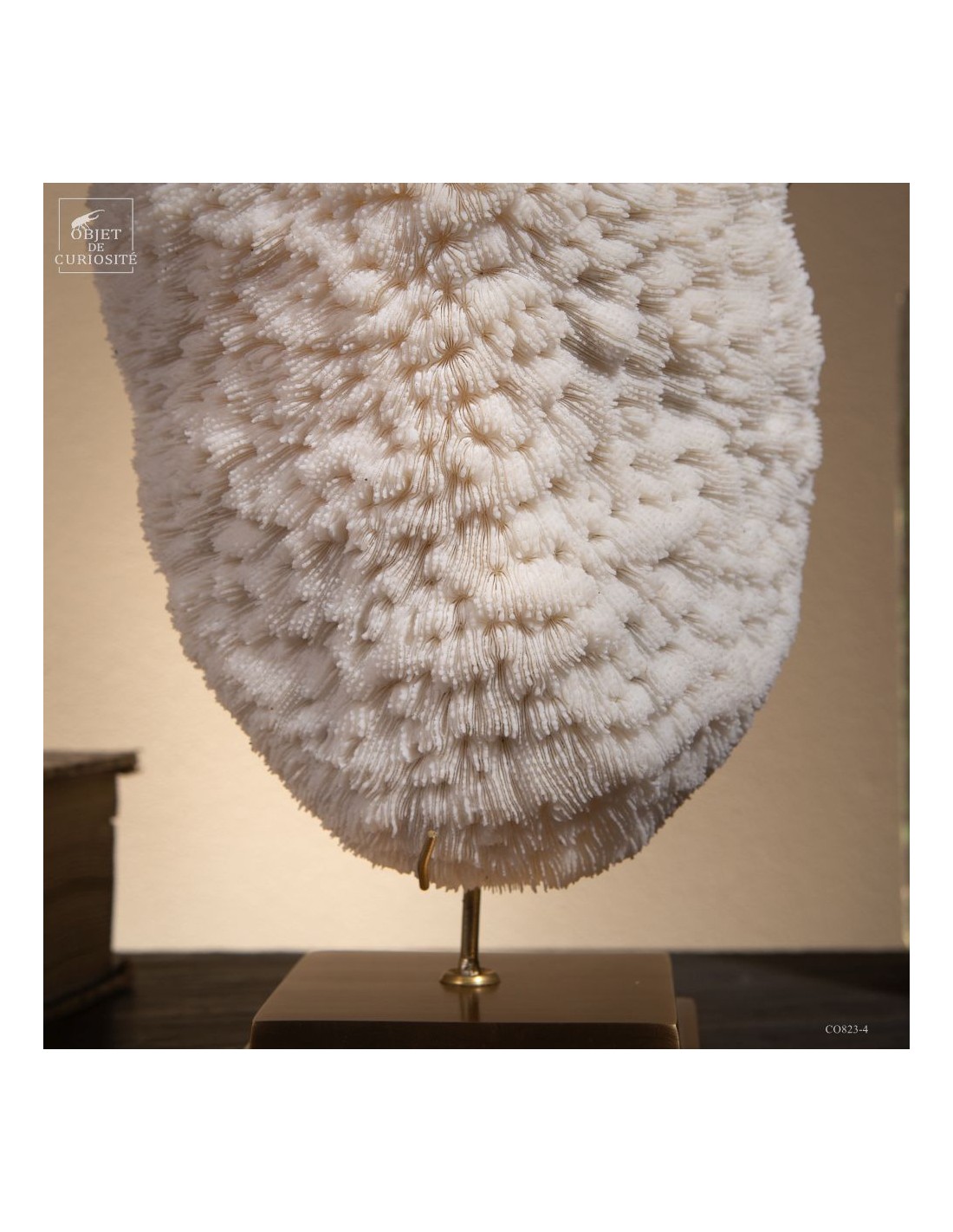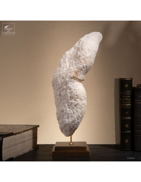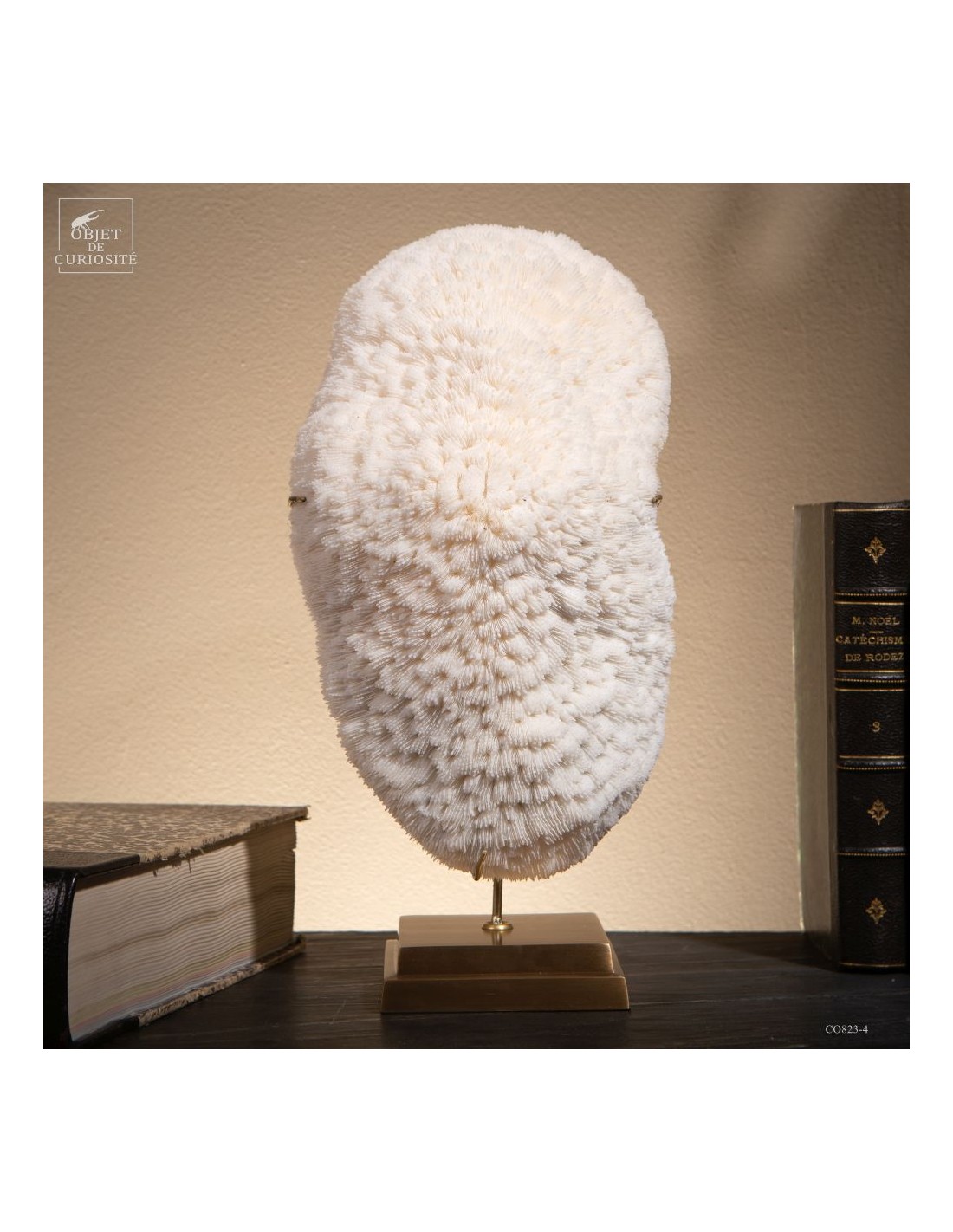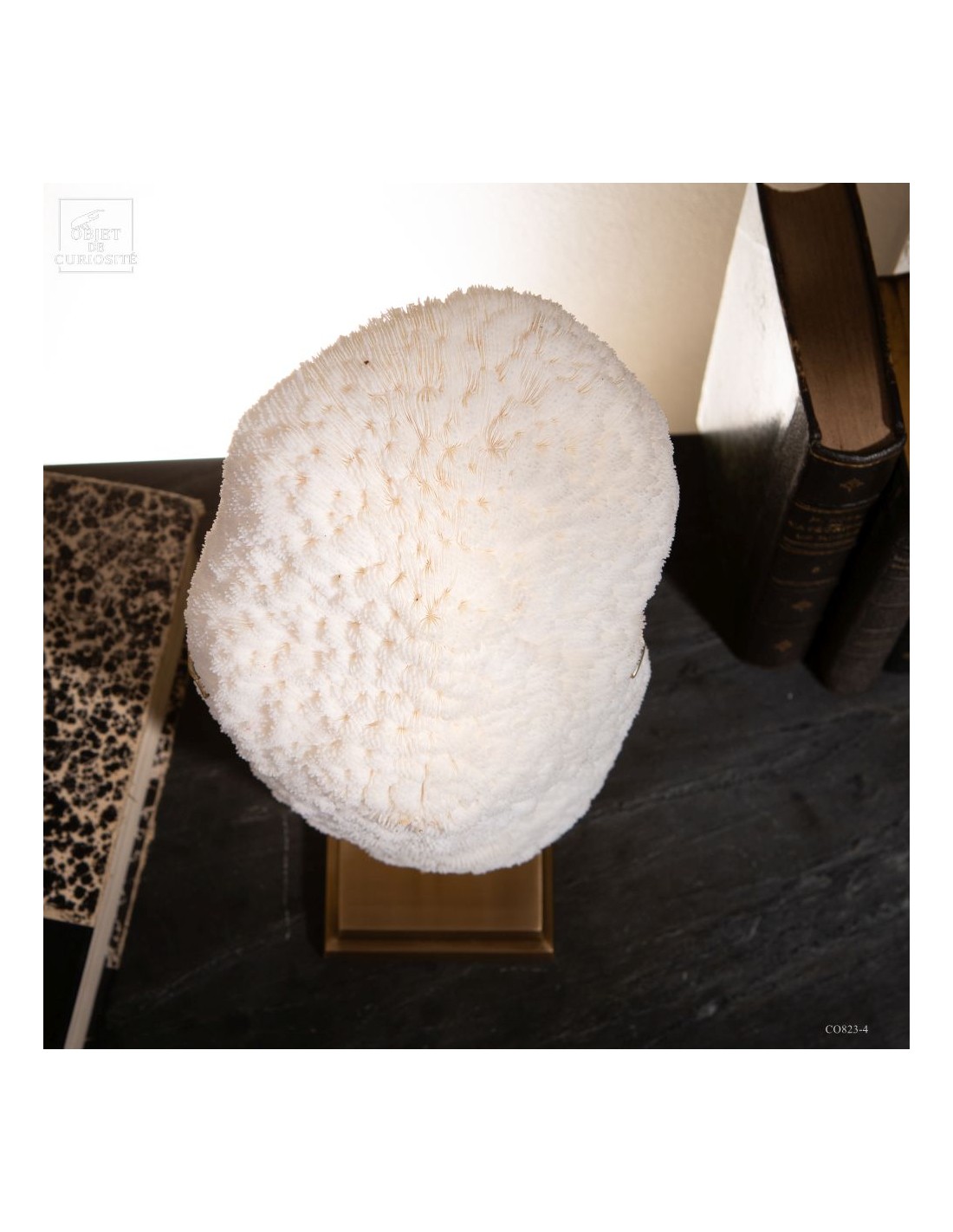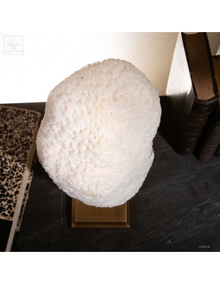 Présenté sur une base en laiton, ce corail a toute sa place dans un cabinet de curiosité.
