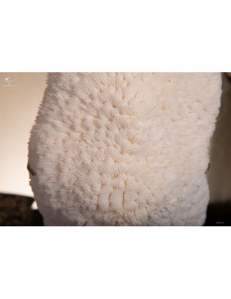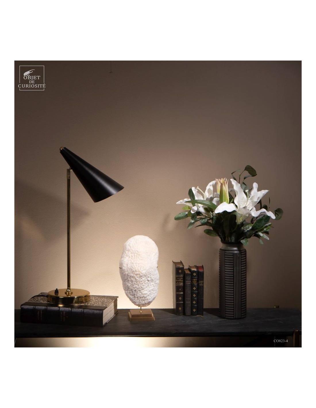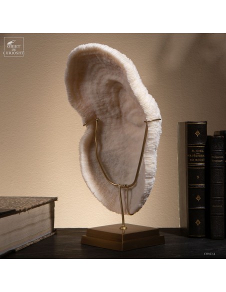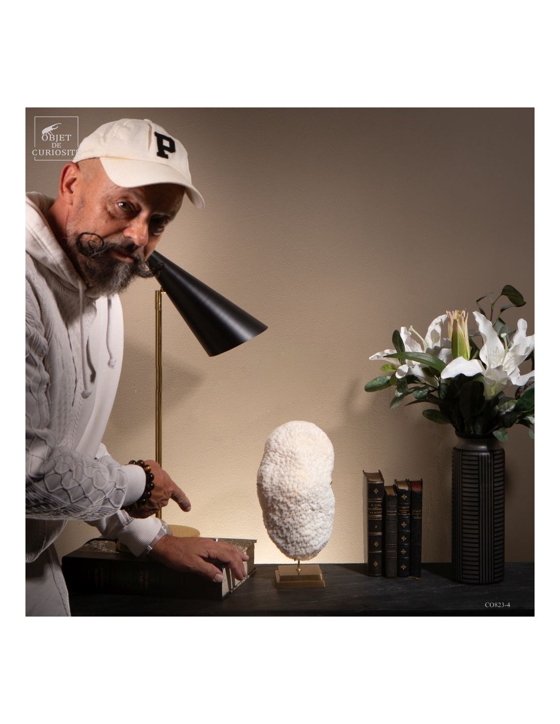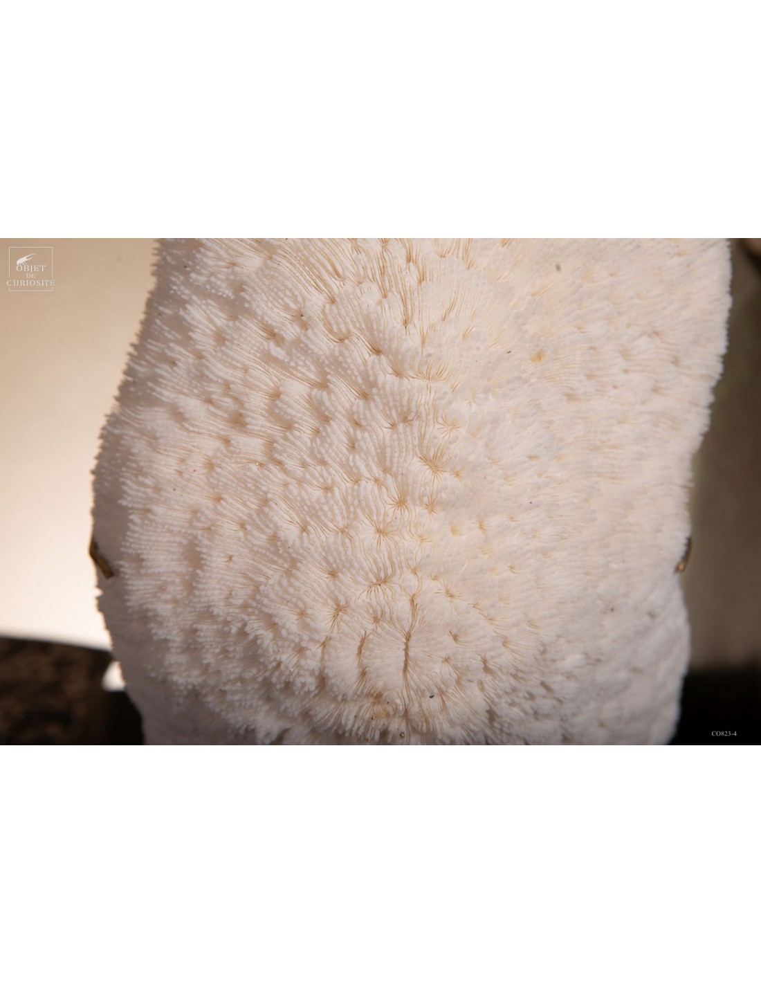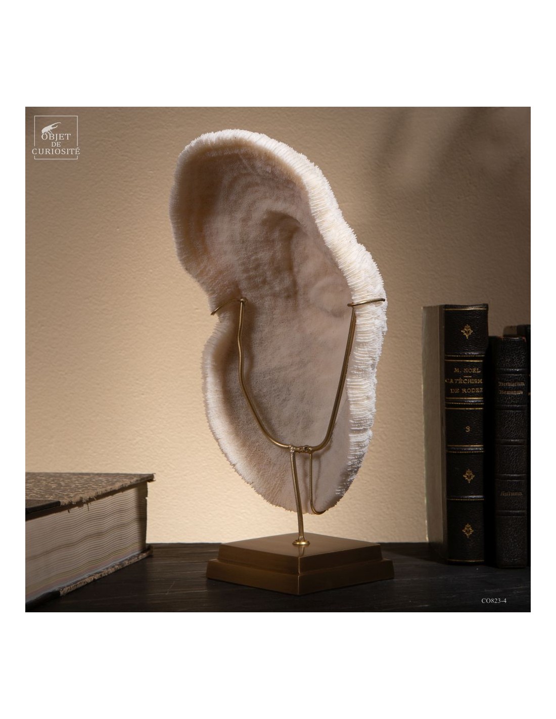 Présenté sur une base en laiton, ce corail a toute sa place dans un cabinet de curiosité.