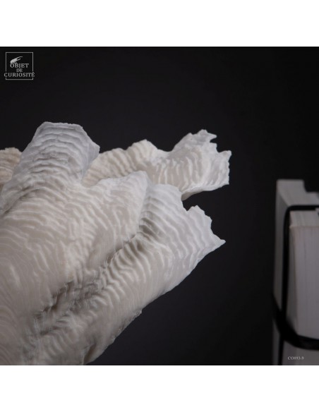 PACHYSERIS RUGOSA est un corail originaire des Îles Salomon. Sa surface rugueuse et ses lames ondulées composent des reliefs sinueux qui rappellent parfois un paysage miniature de rizières en terrasses. Ce spécimen en forme de branche met en évidence cette architecture naturelle singulière.