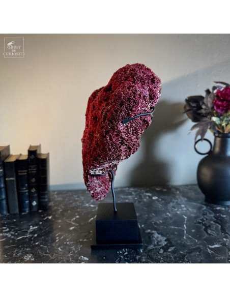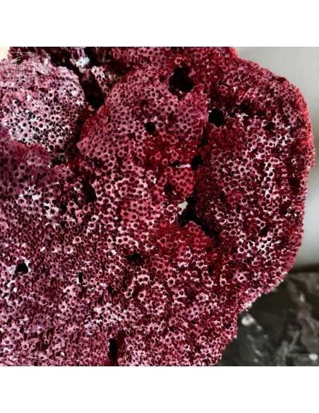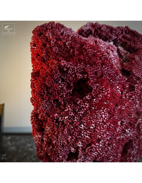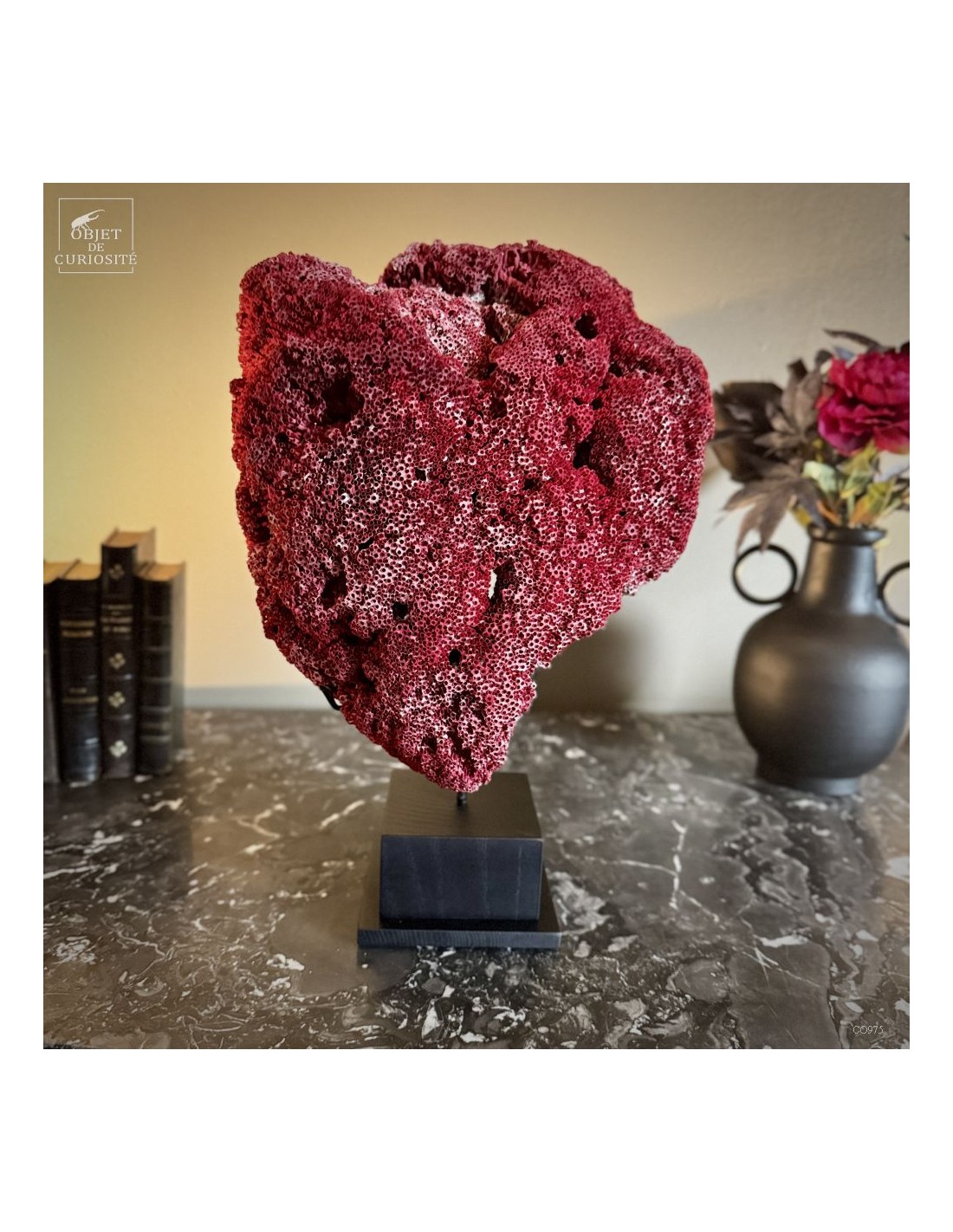 Ce corail rouge appartient à l’espèce TUBIPORA MUSICA, connue sous le nom de corail orgue. Le nom TUBIPORA, issu du latin tubus (« tube »), fait référence à la structure tubulaire du squelette calcaire, disposé en faisceaux verticaux qui rappellent les tuyaux d’un orgue.