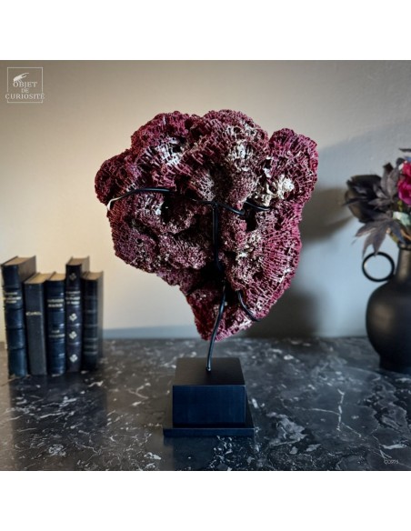 Présenté sur une base noire, ce corail de collection est une curiosité marine emblématique des cabinets de curiosités, illustrant la diversité et la précision du monde marin.